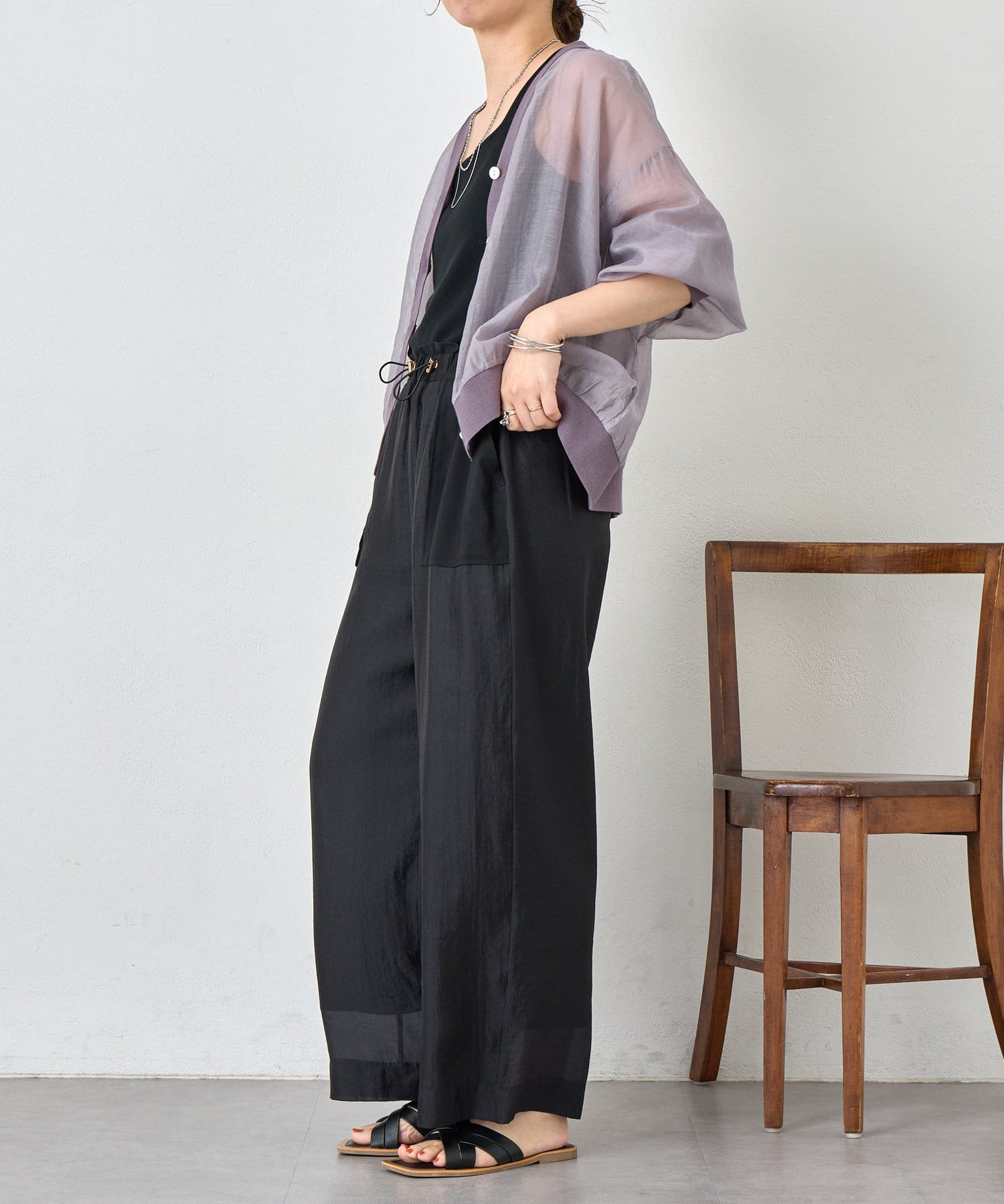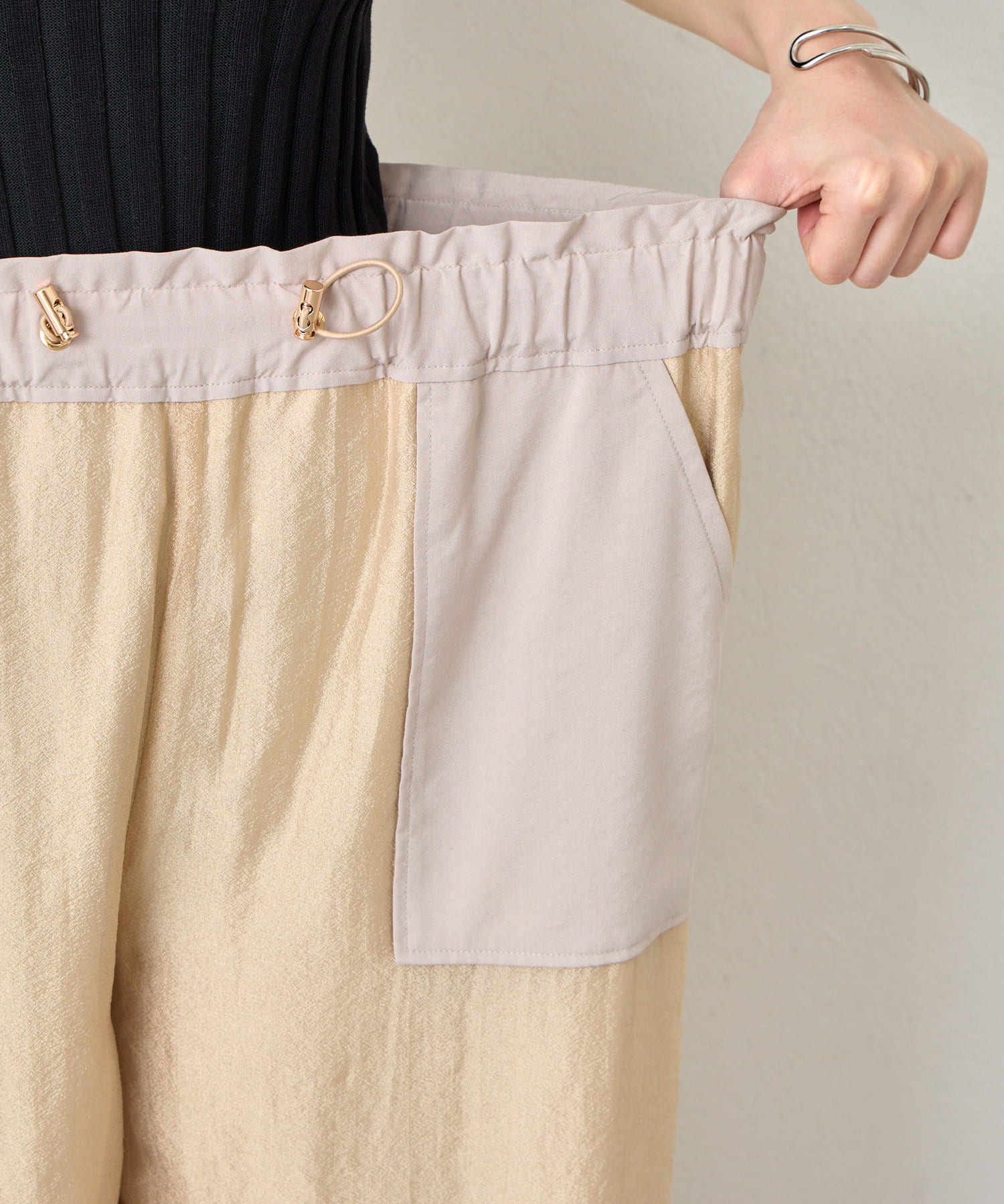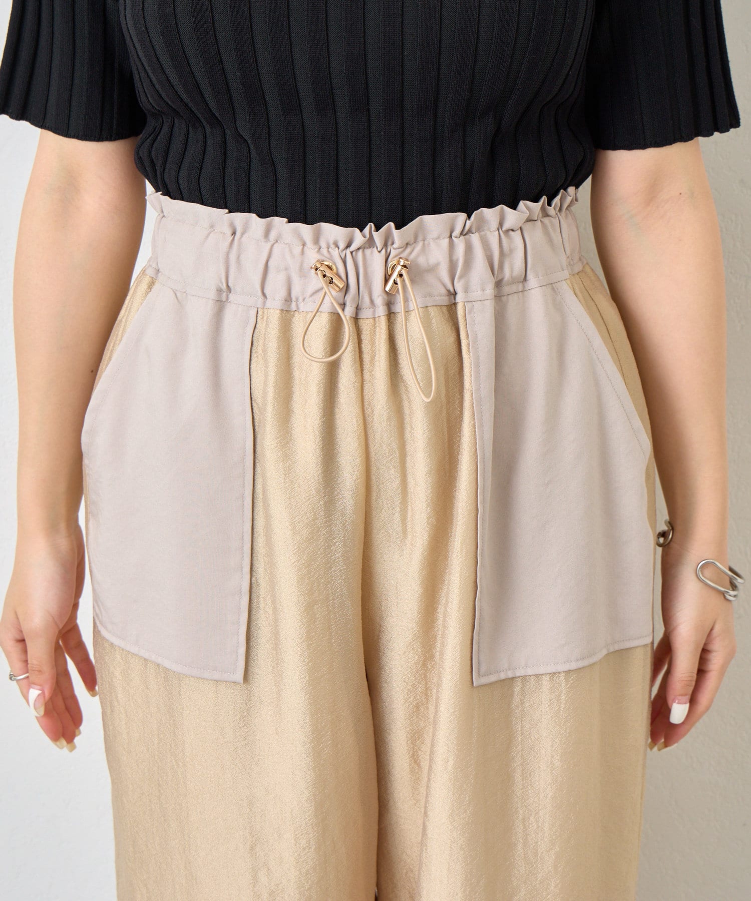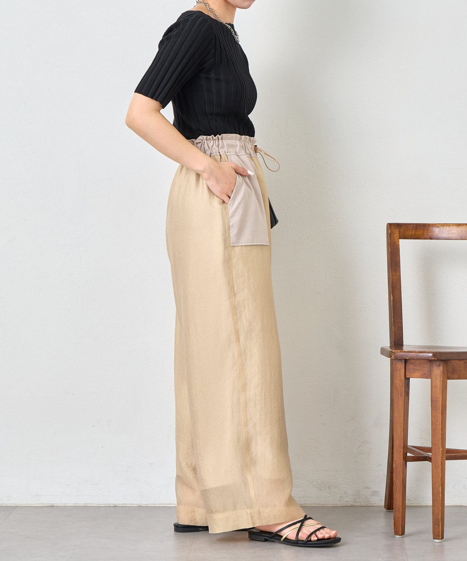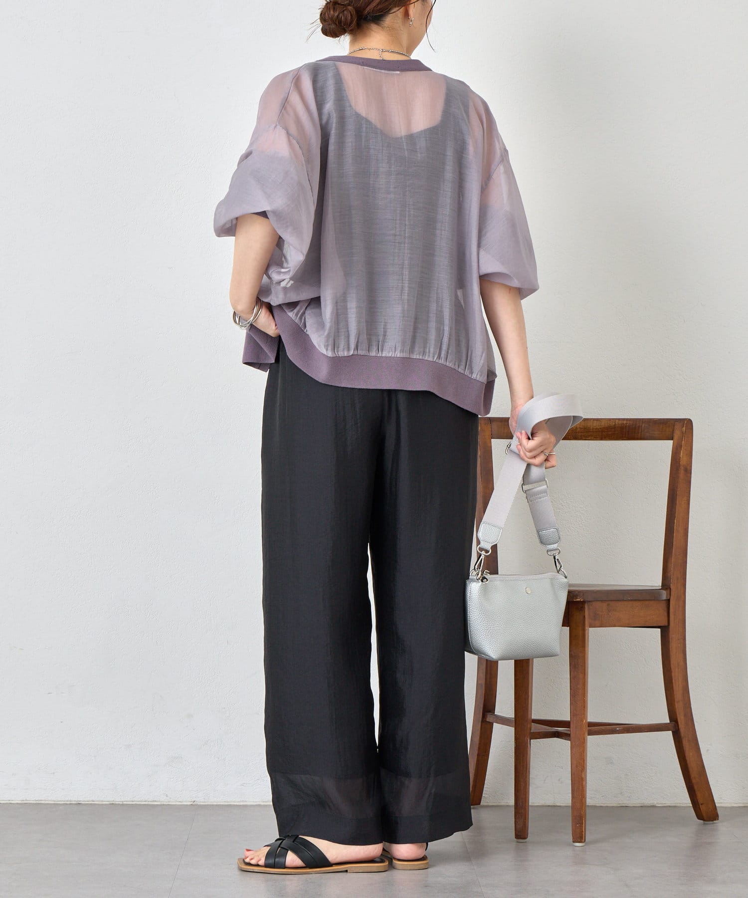 ・光沢感のある生地とゆったりとしたシルエットで、上品なこなれ感のあるスタイリングを叶えるワイドパンツ。