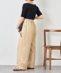 ・ウエストはゴム仕様で、ドローストリングで調節が可能。リラックスした履き心地ながらも、きちんと感をキープします。