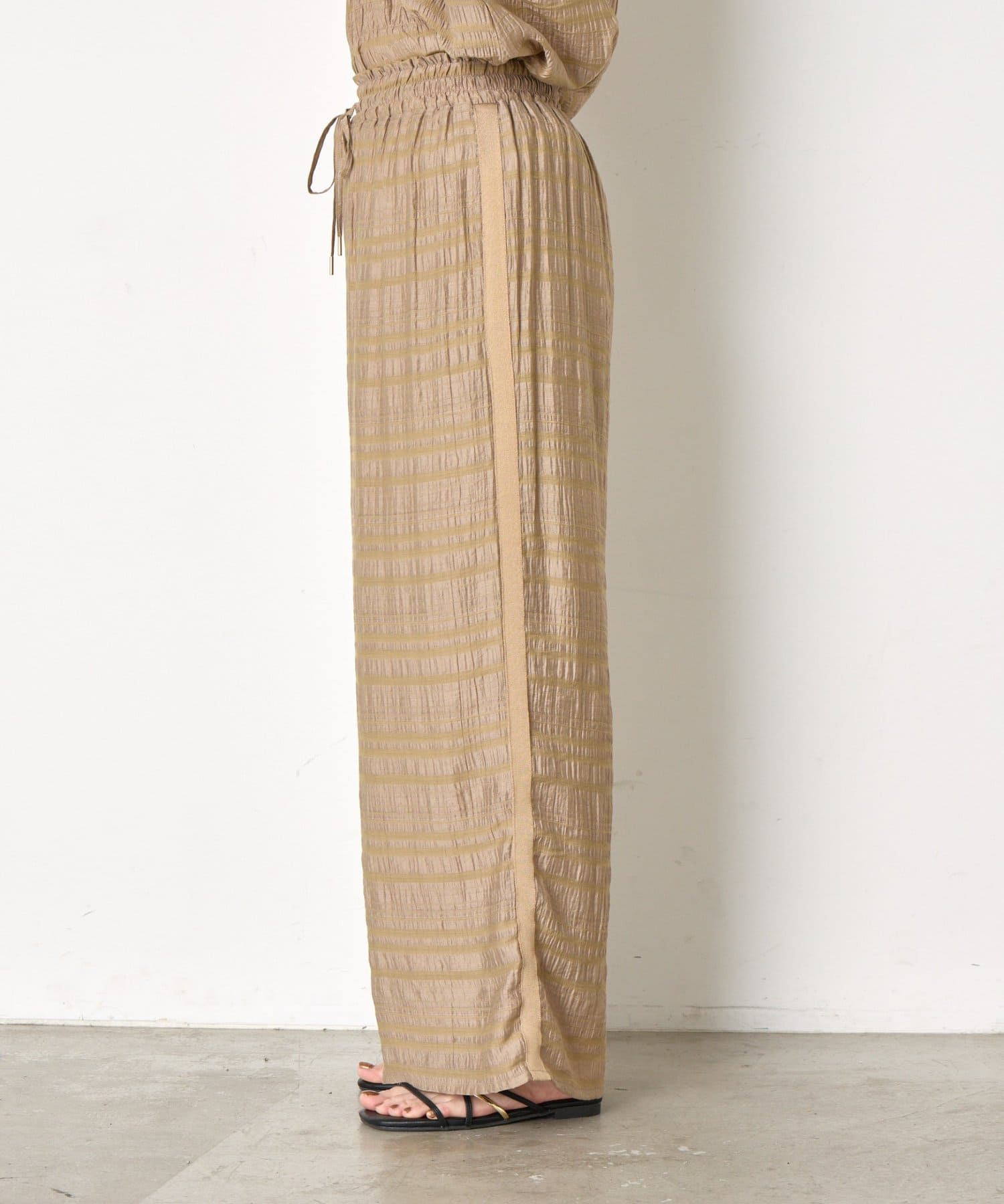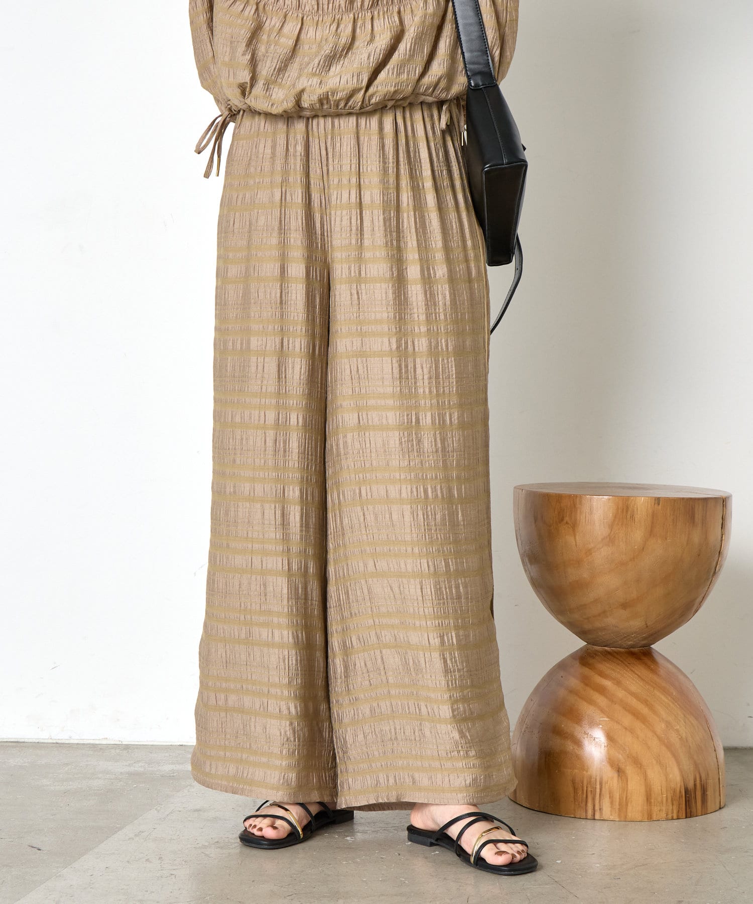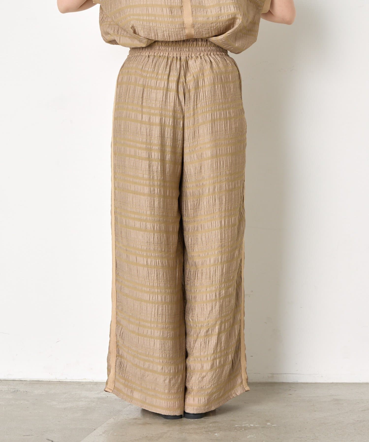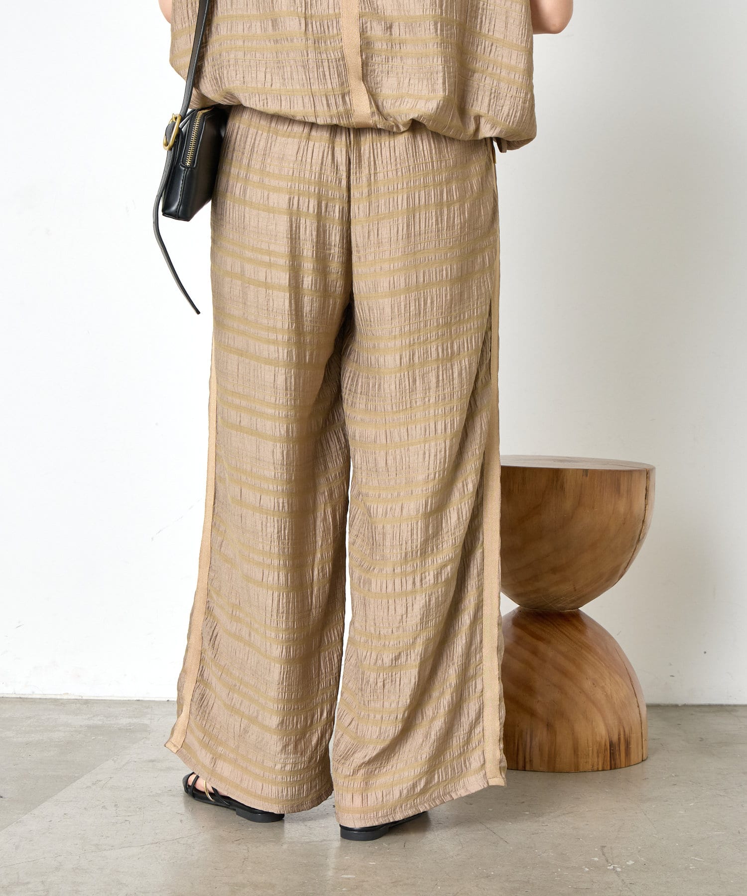 【しわにならない/セットアップ可能】シャーリングボーダーパンツ
