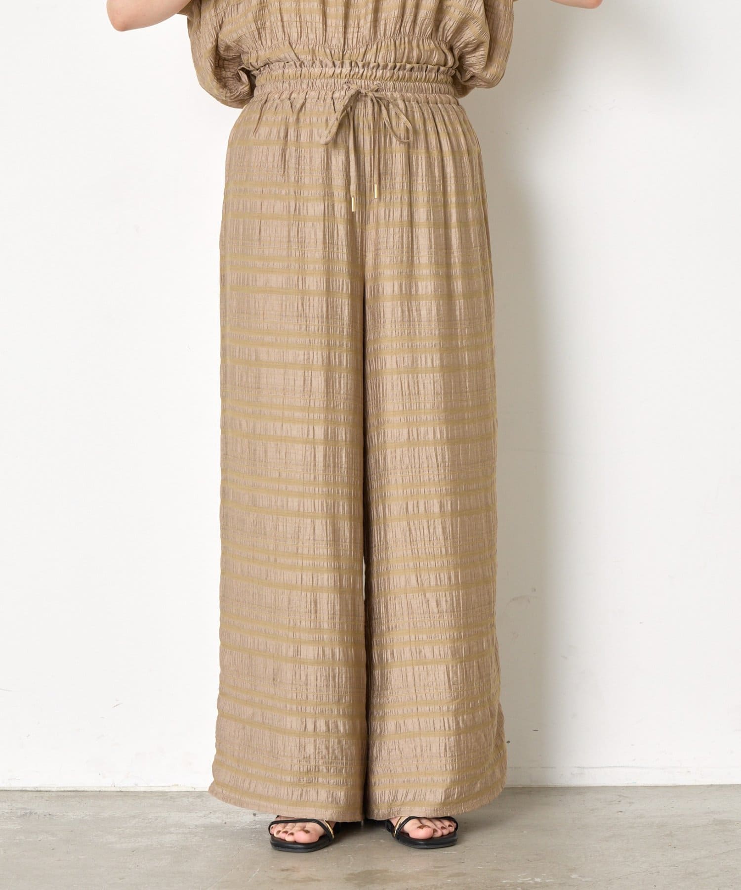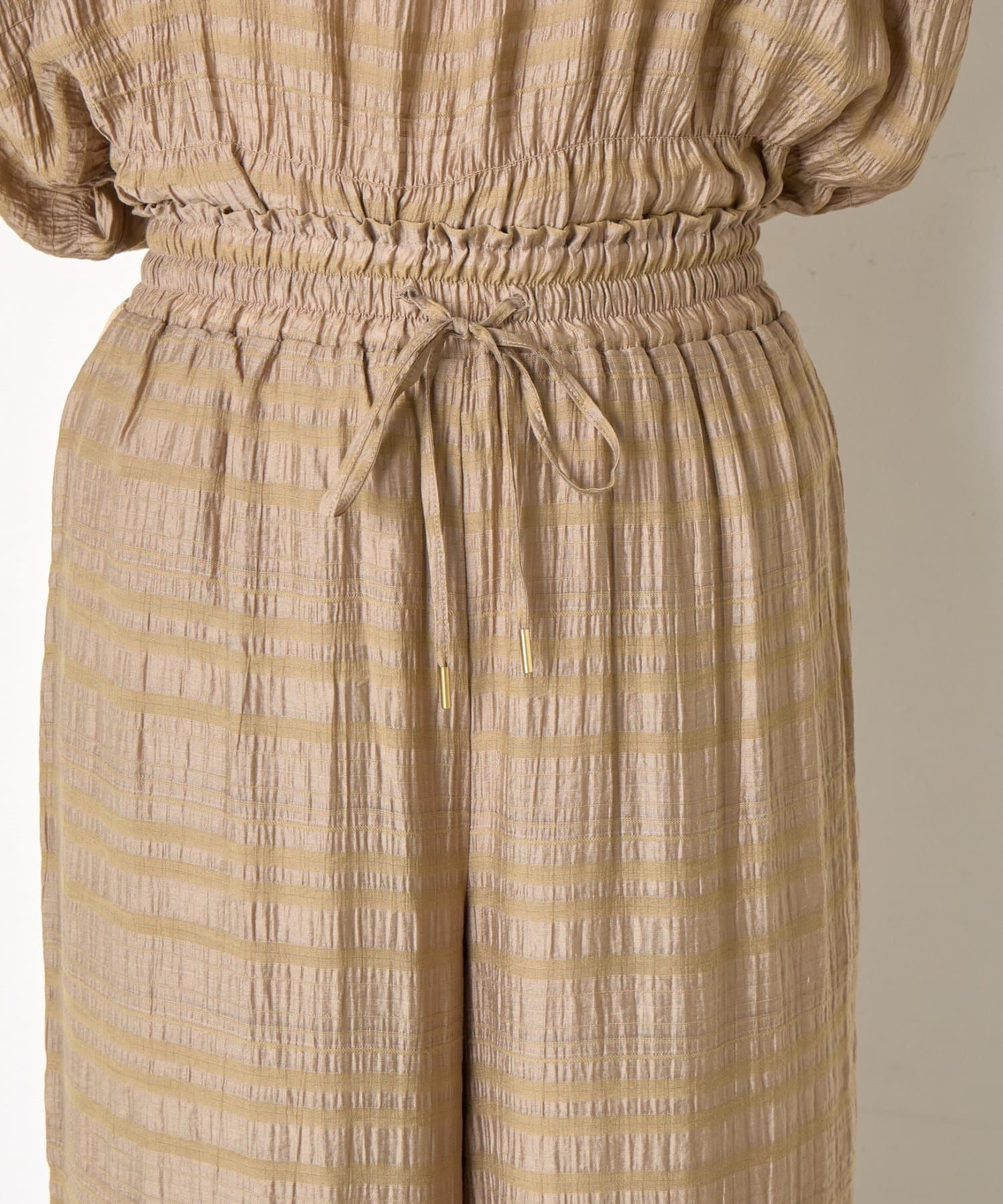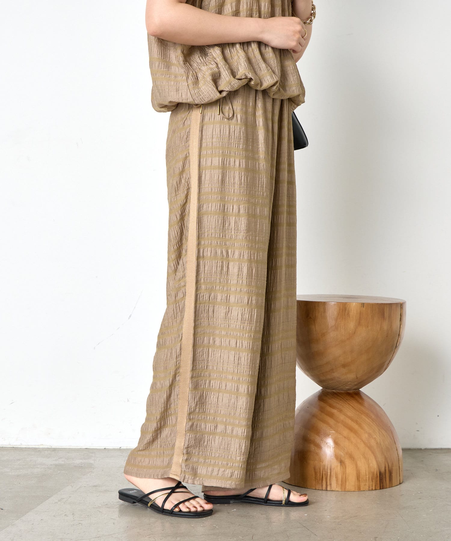 【しわにならない/セットアップ可能】シャーリングボーダーパンツ