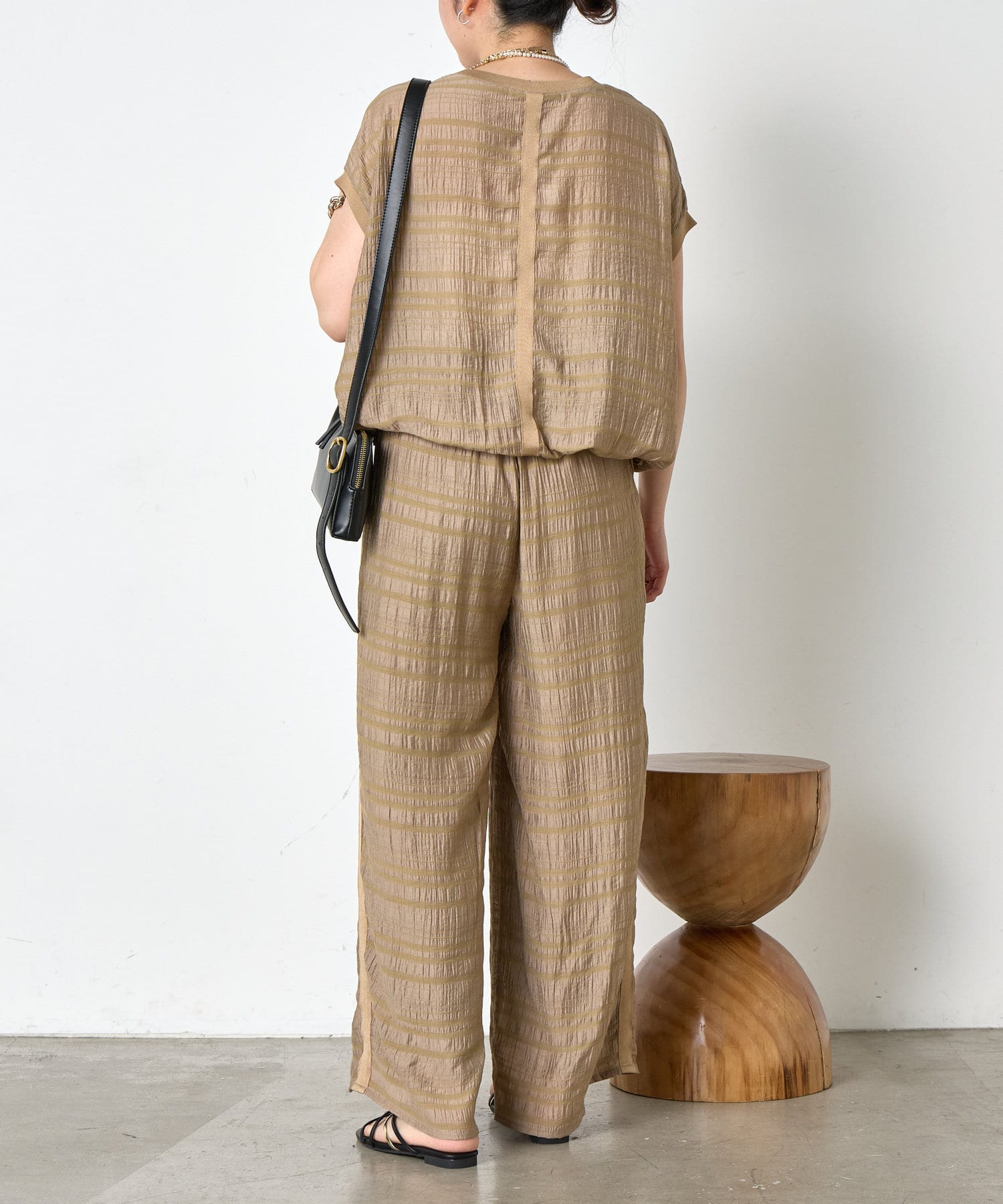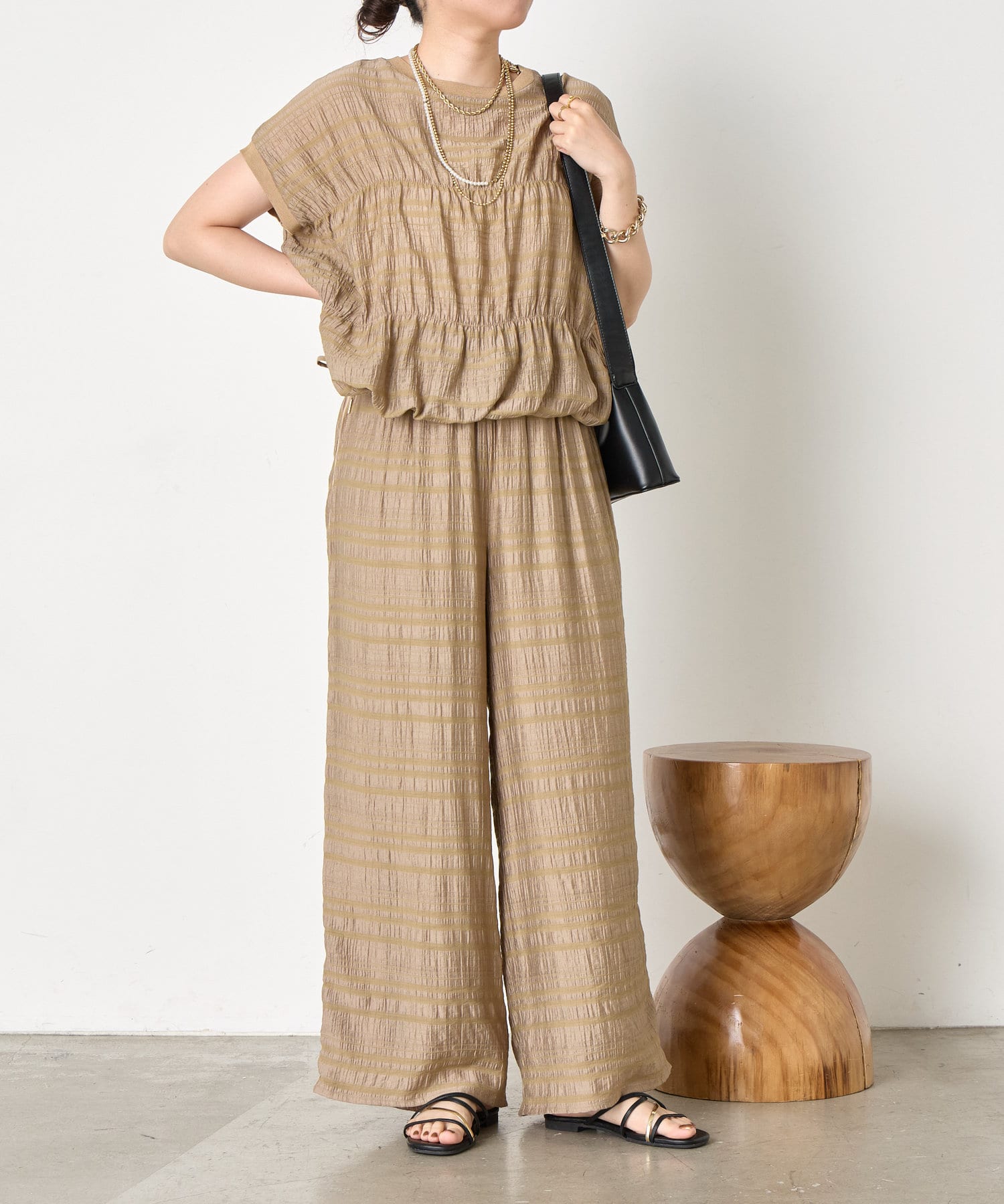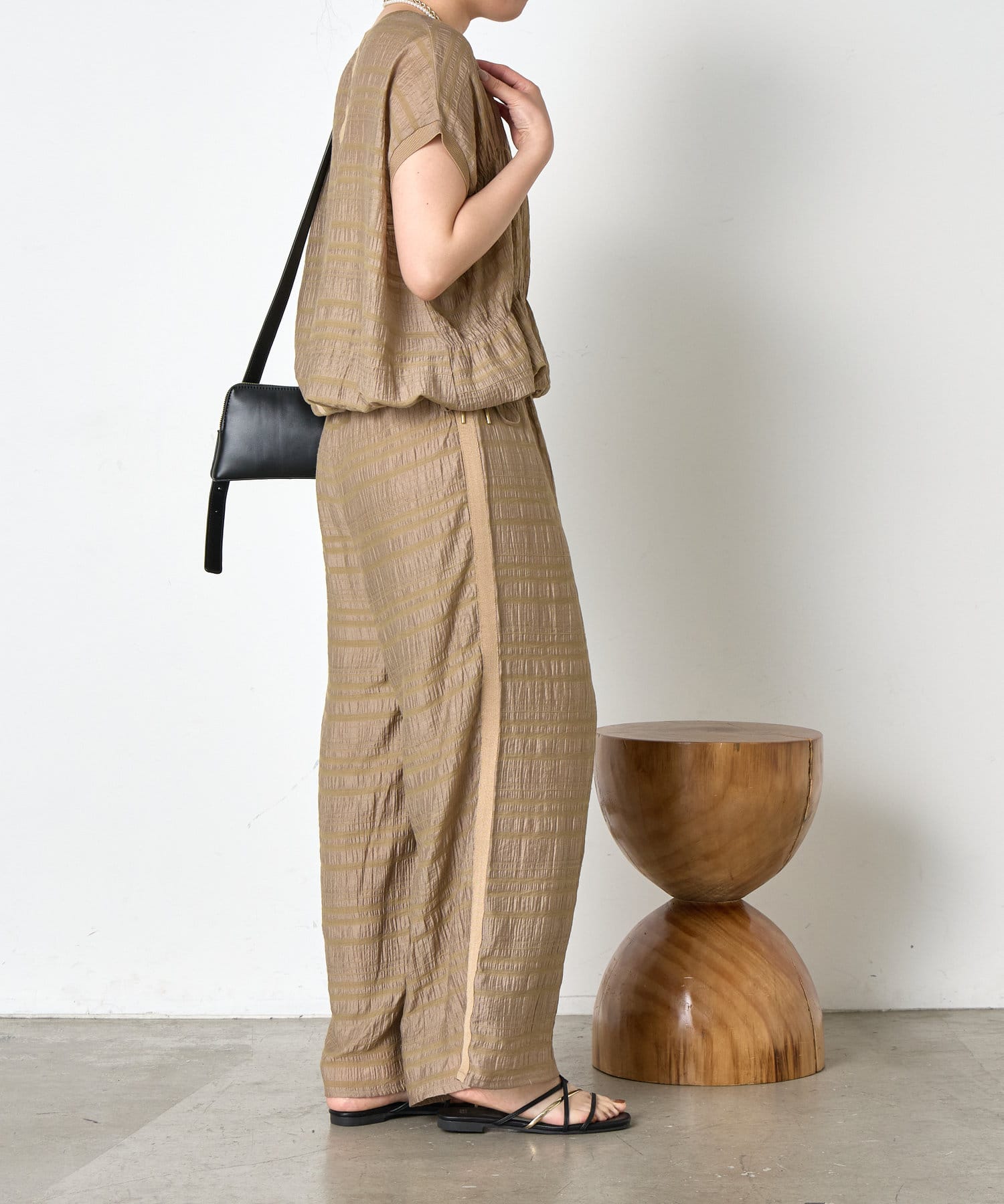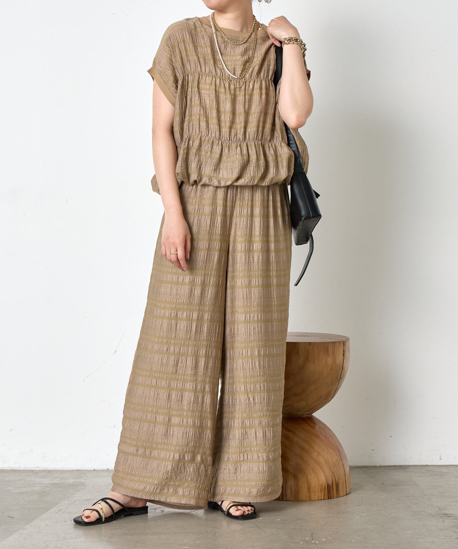 【しわにならない/セットアップ可能】シャーリングボーダーパンツ