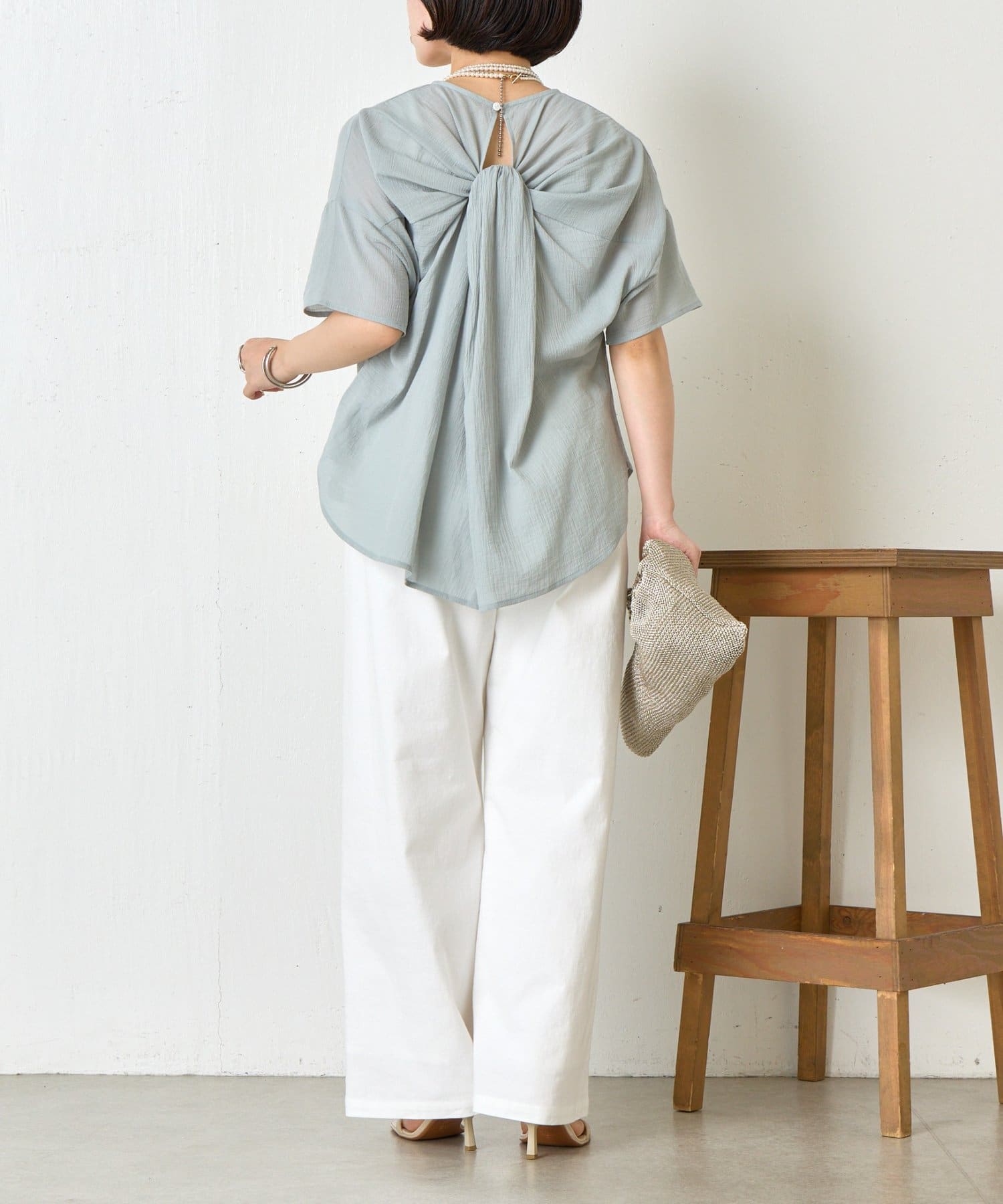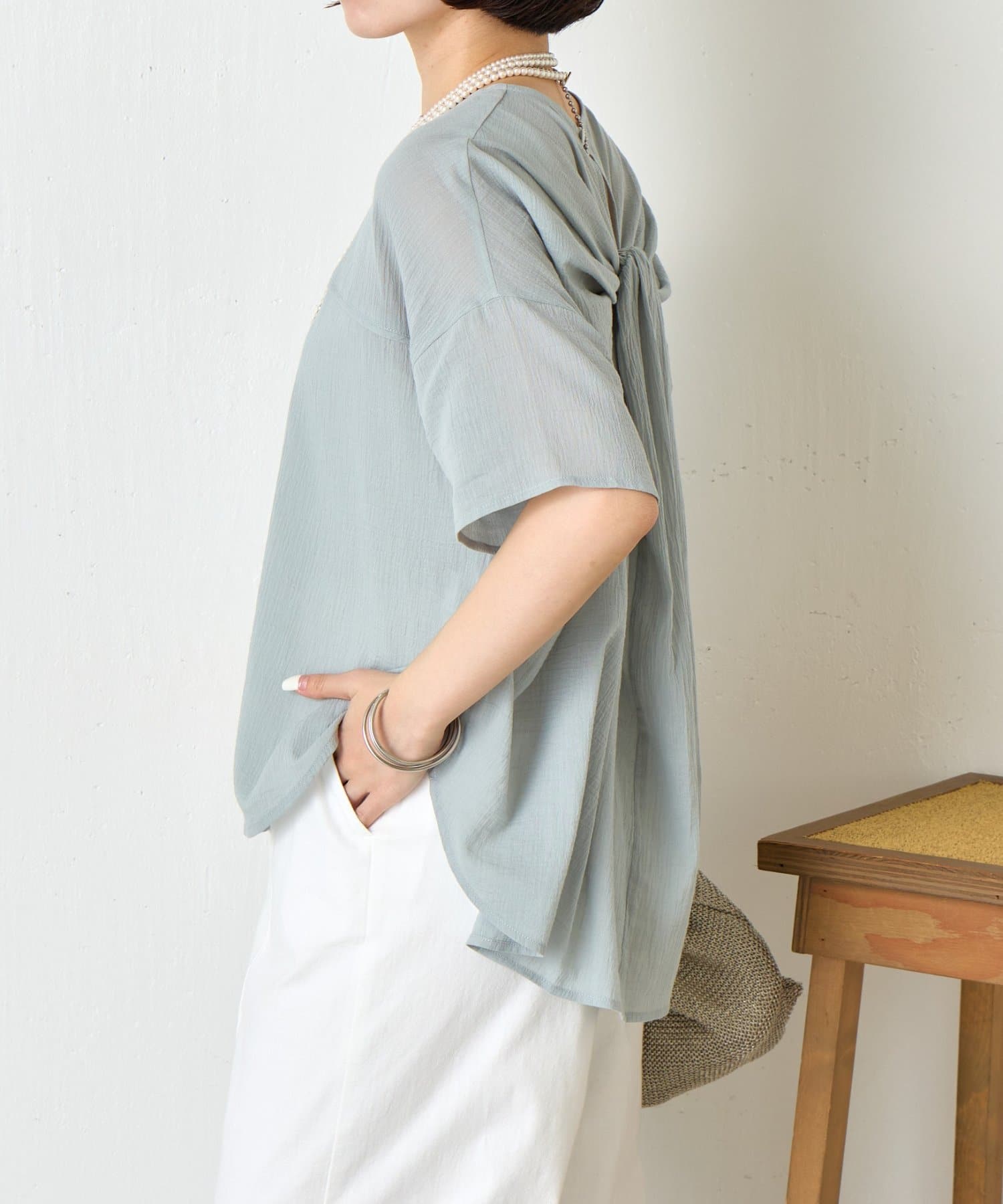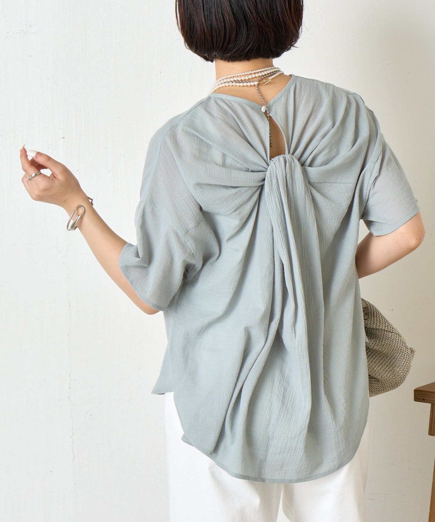バックツイスト楊柳ブラウス