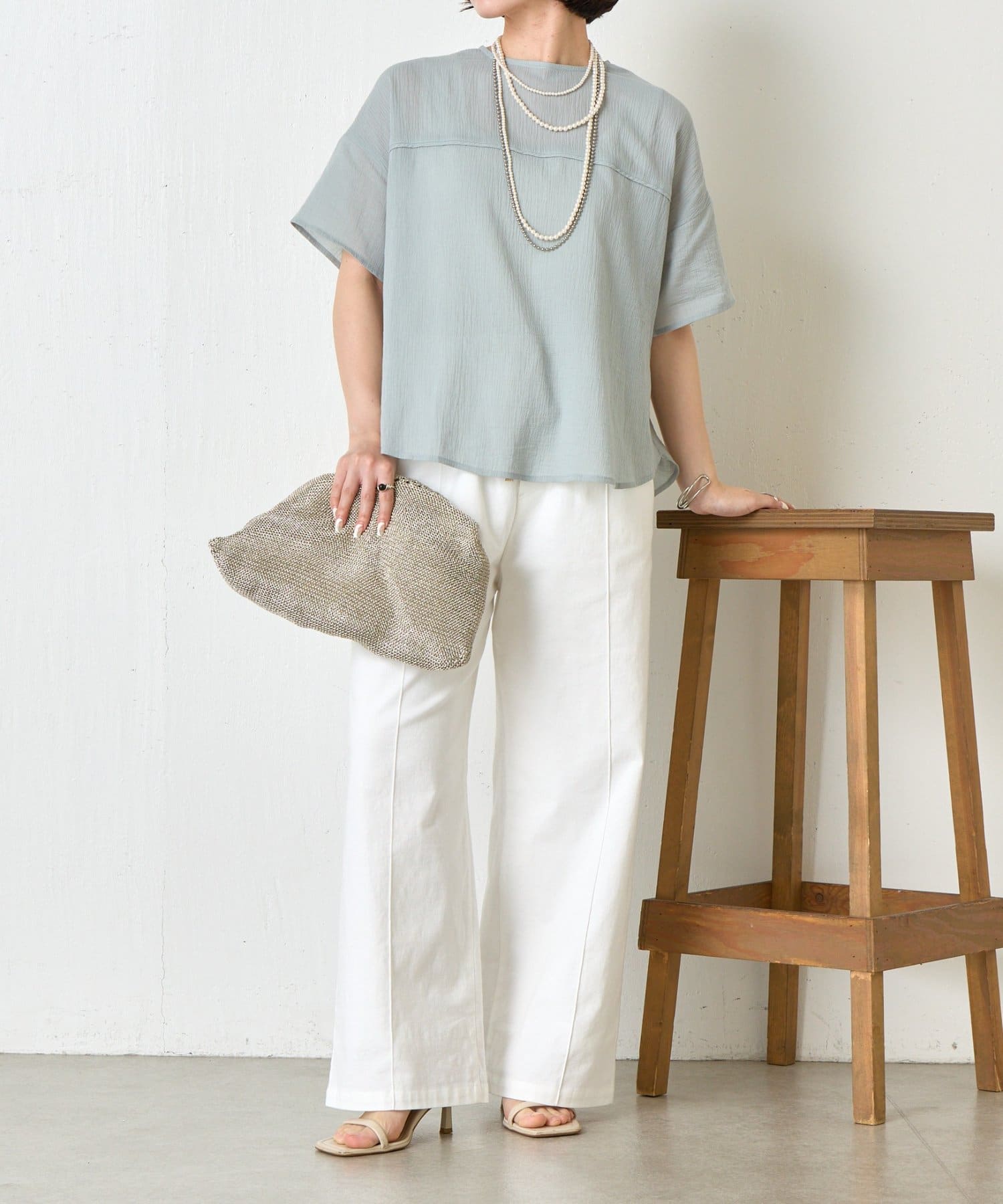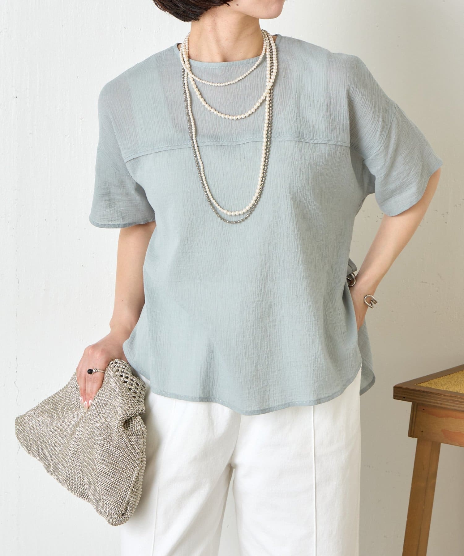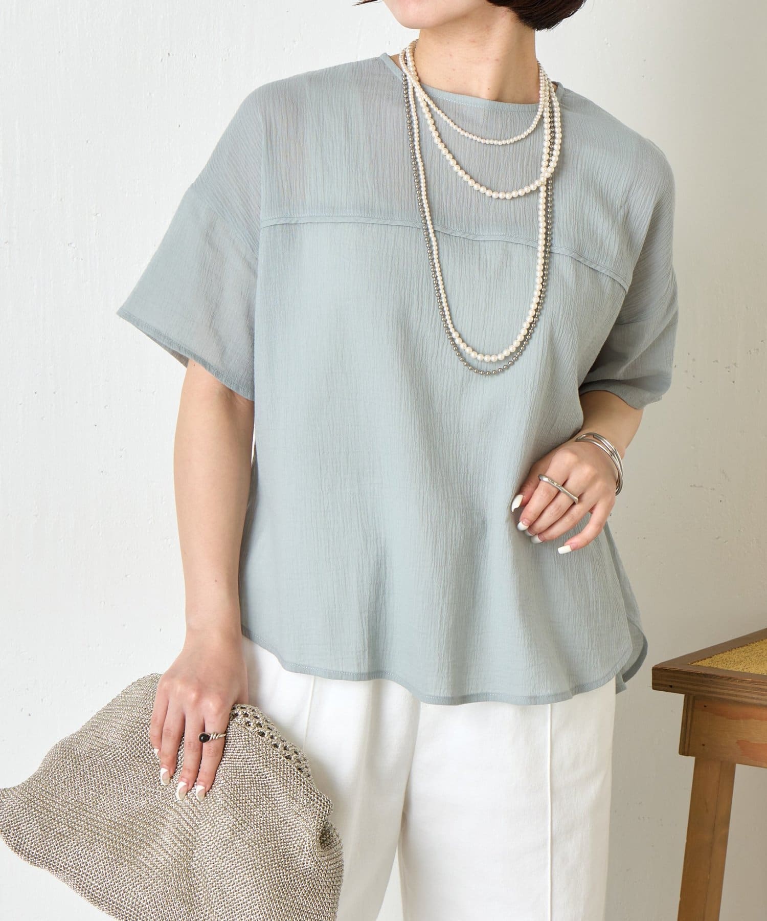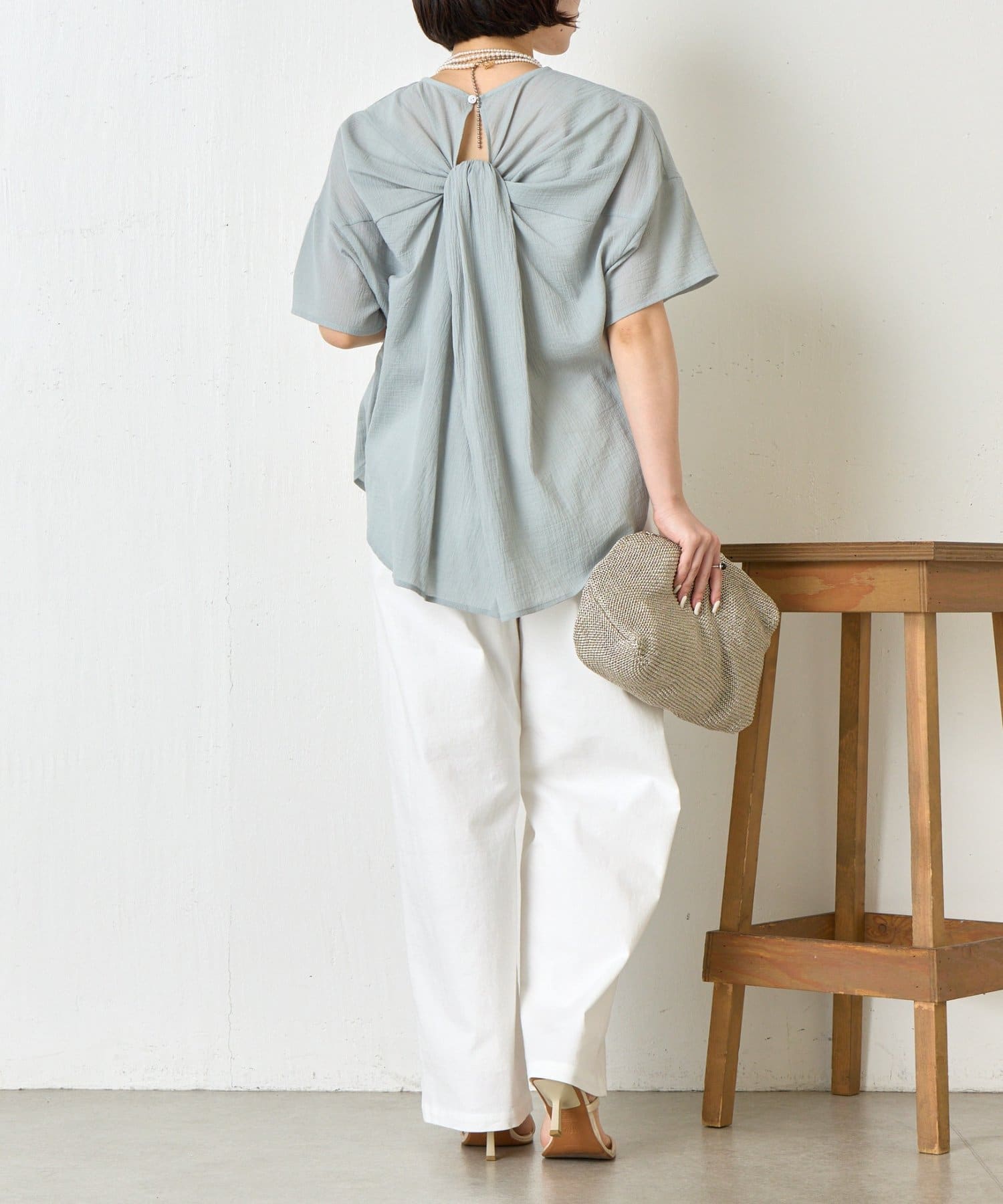 バックツイスト楊柳ブラウス