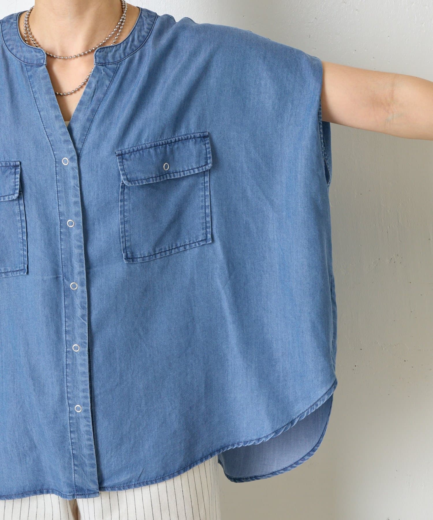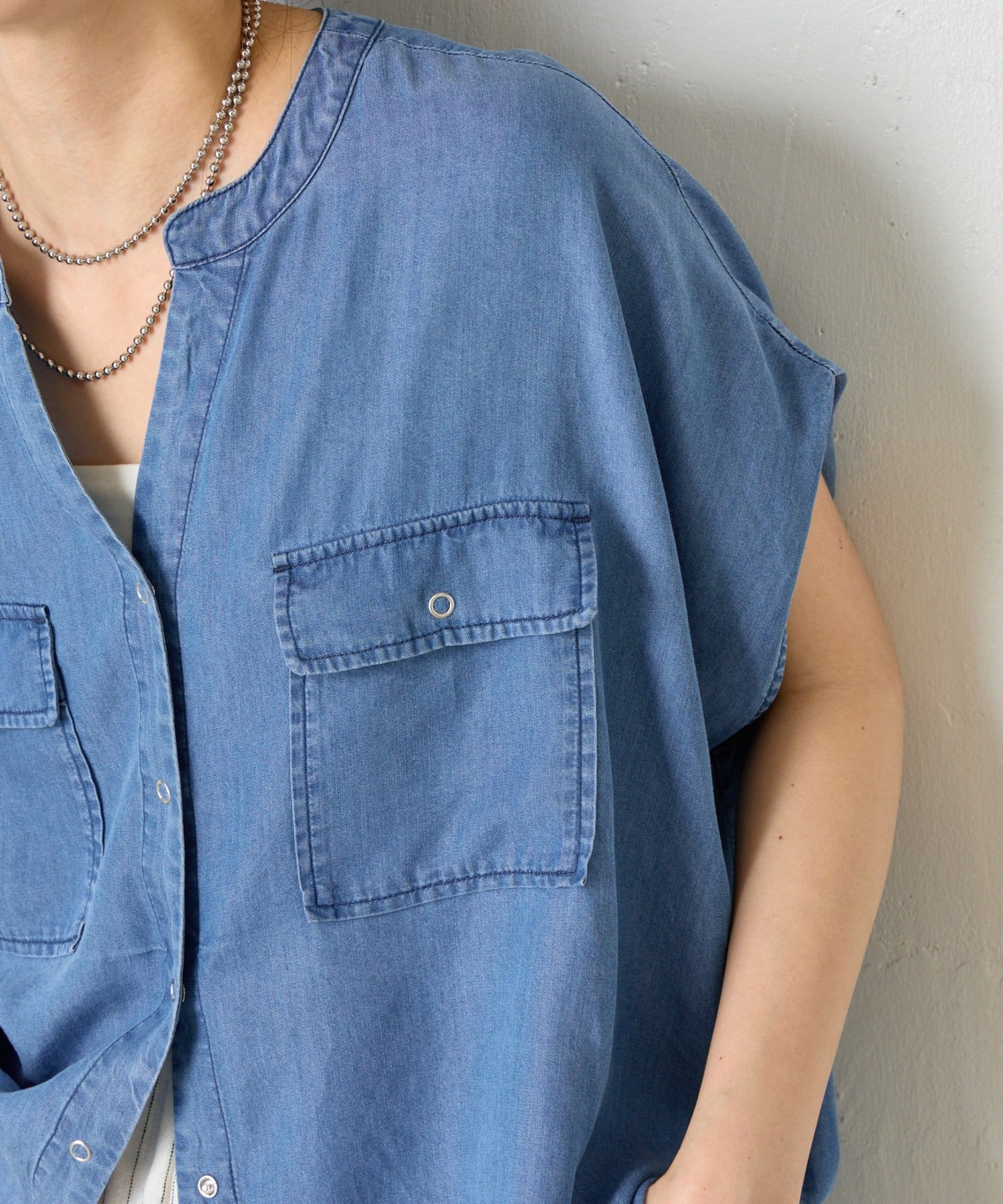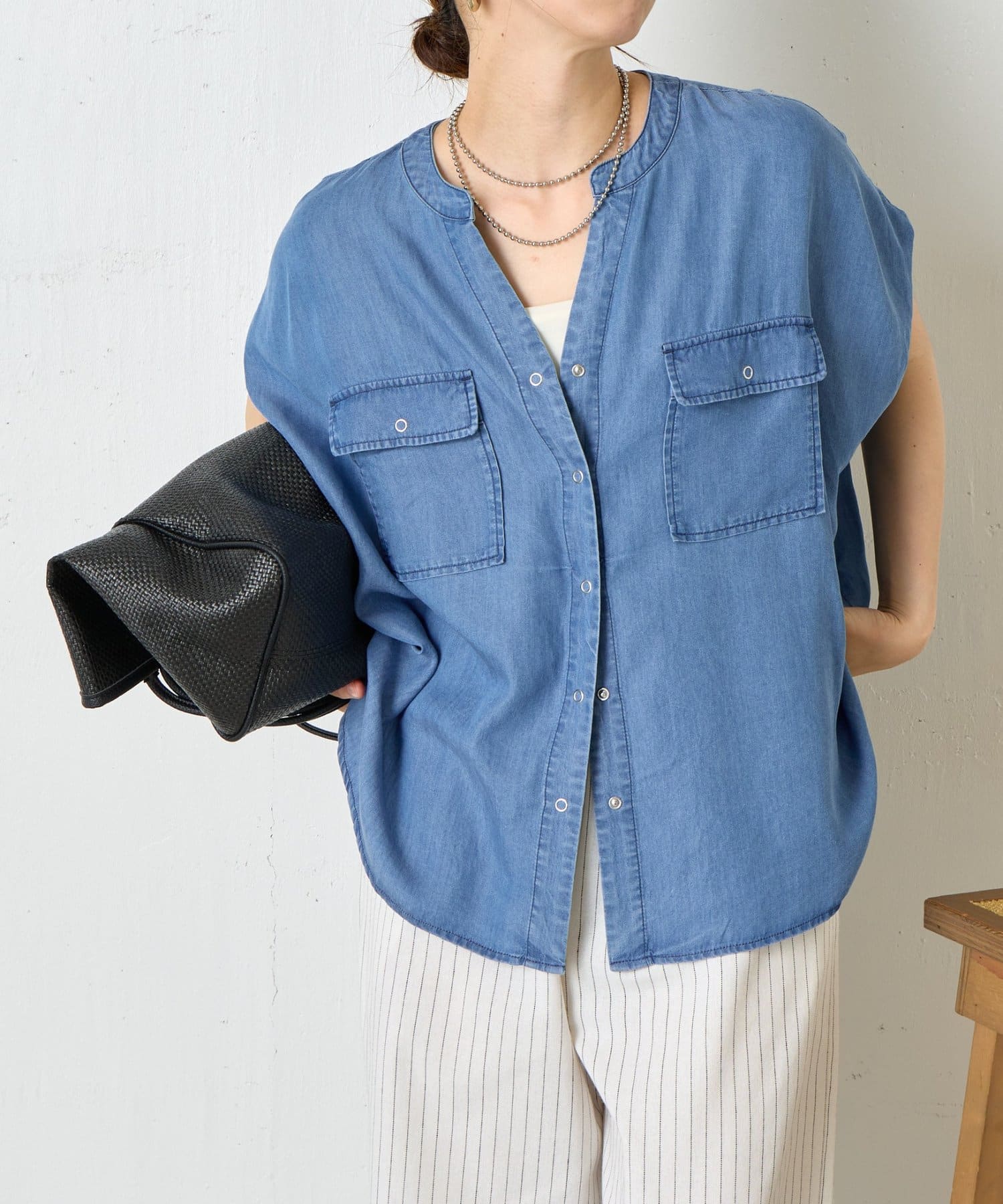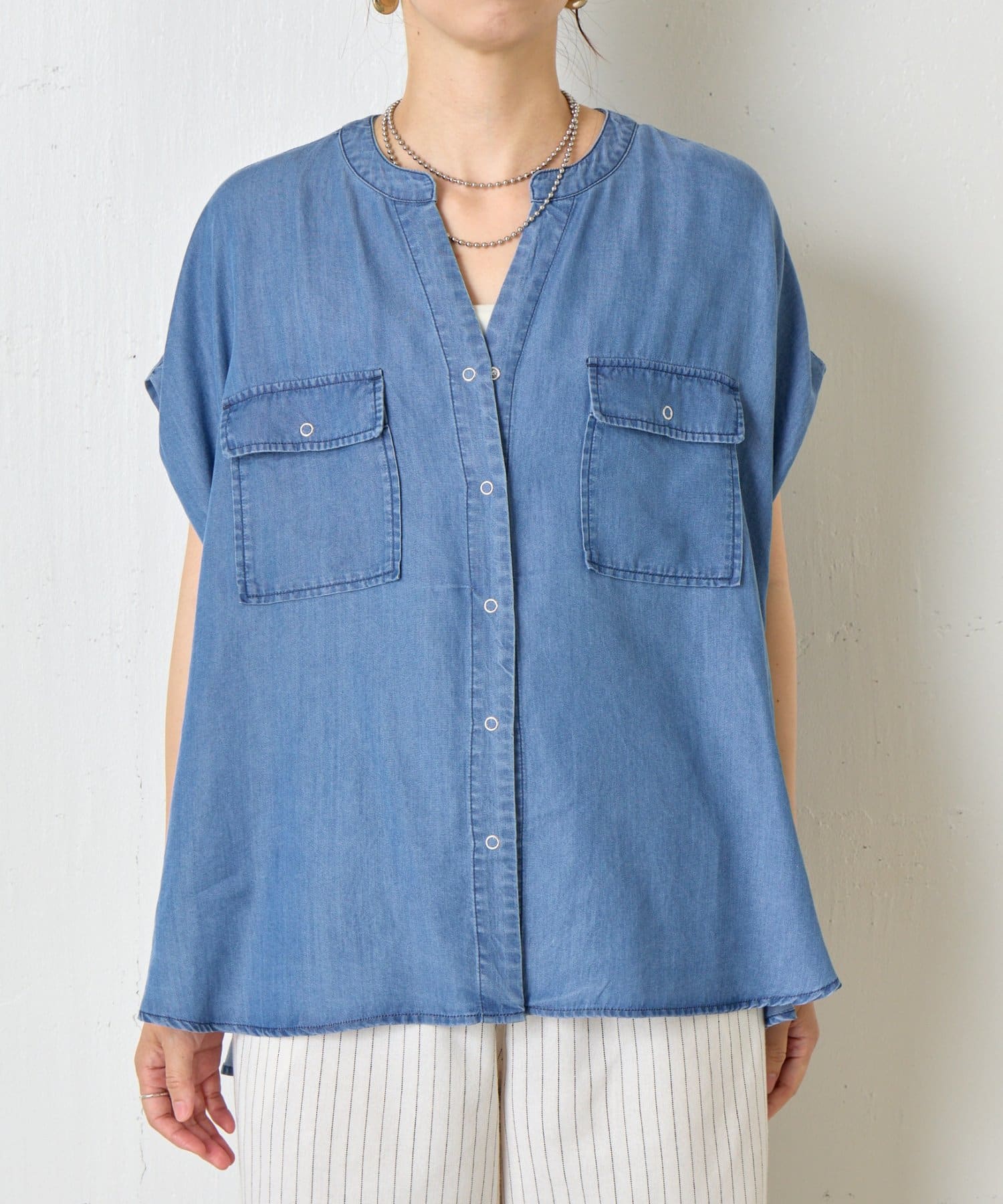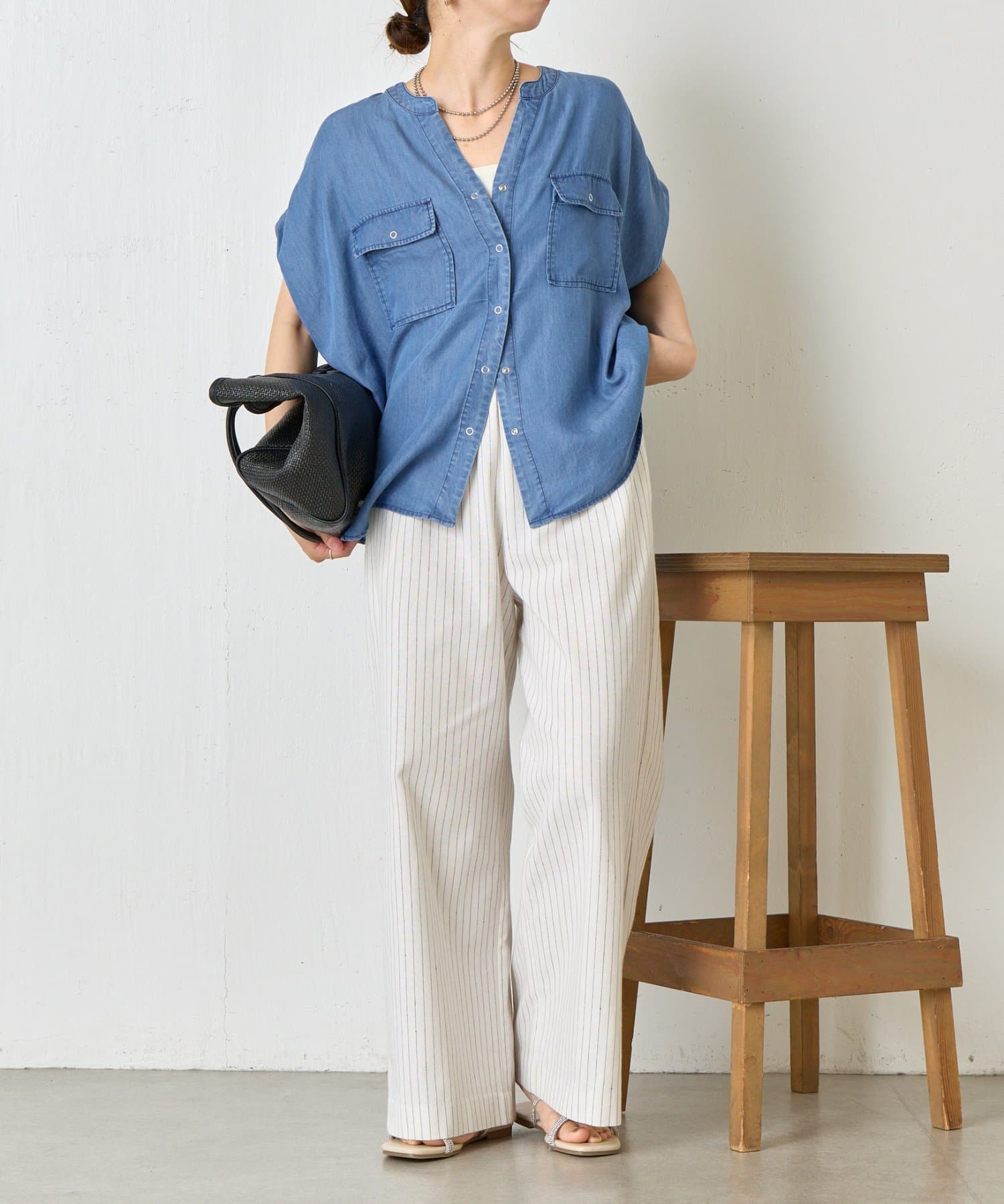 【大人カジュアルに決まる】ショートスリーブテンセルデニムシャツ