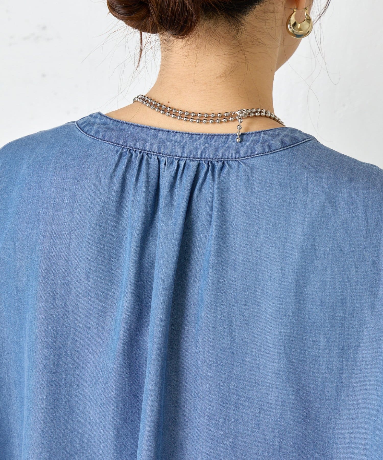 ・前後差のある着丈とサイドスリット入りの動きのあるデザインで、着こなしに抜け感が生まれるデニムシャツ。