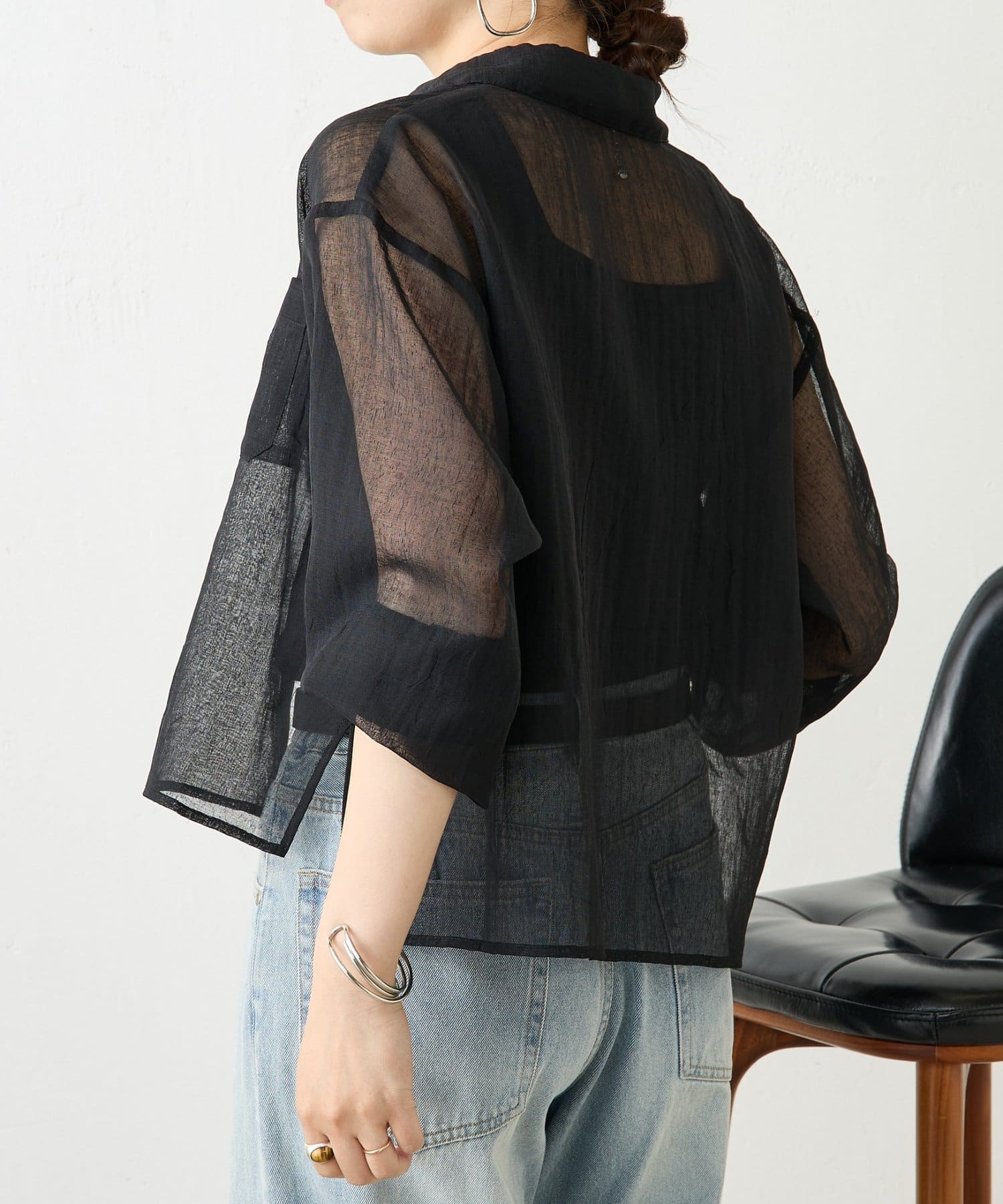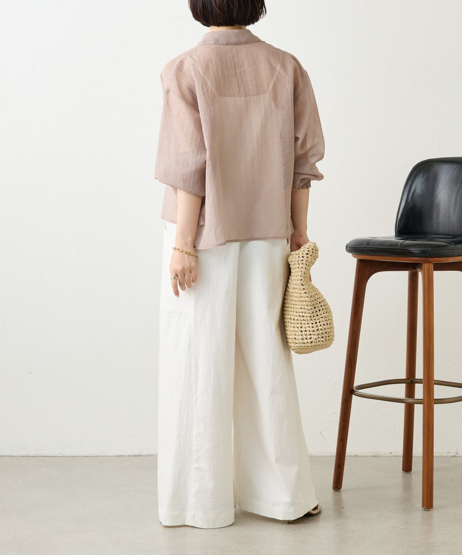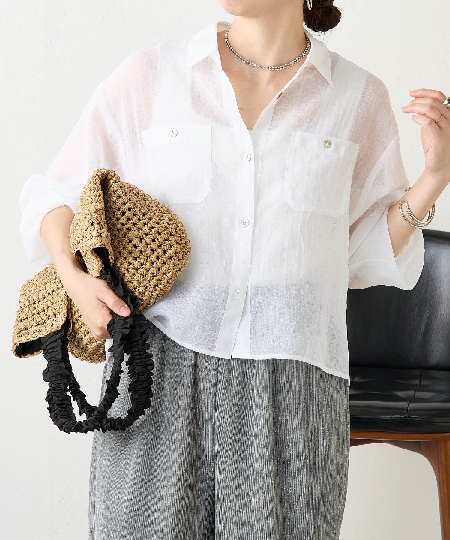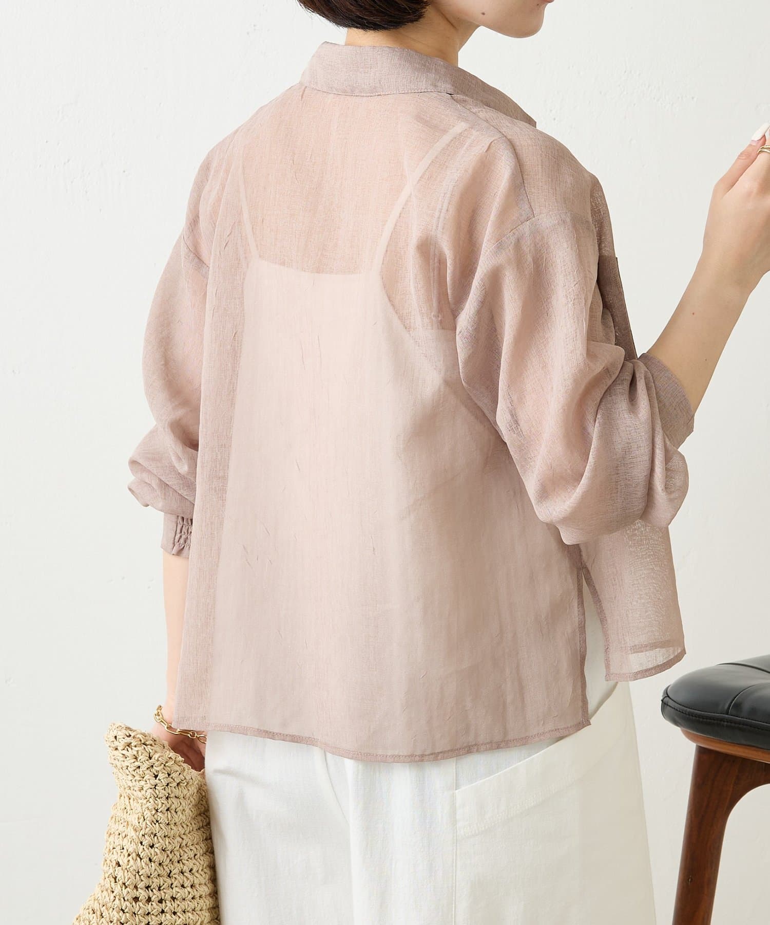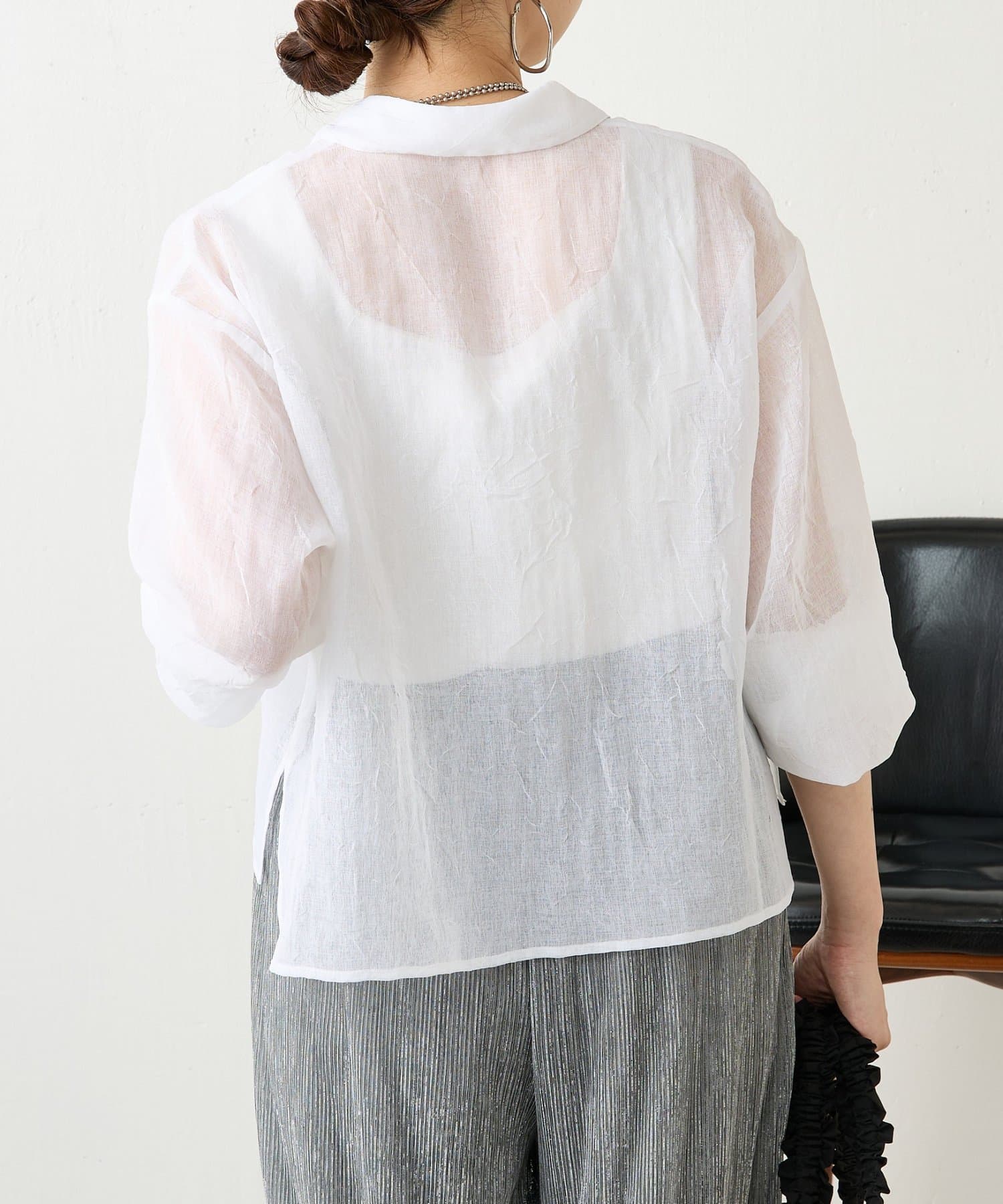 ・程よく透け感のある軽やかな素材が、涼しげで上品な印象を与えるシアーシャツ。