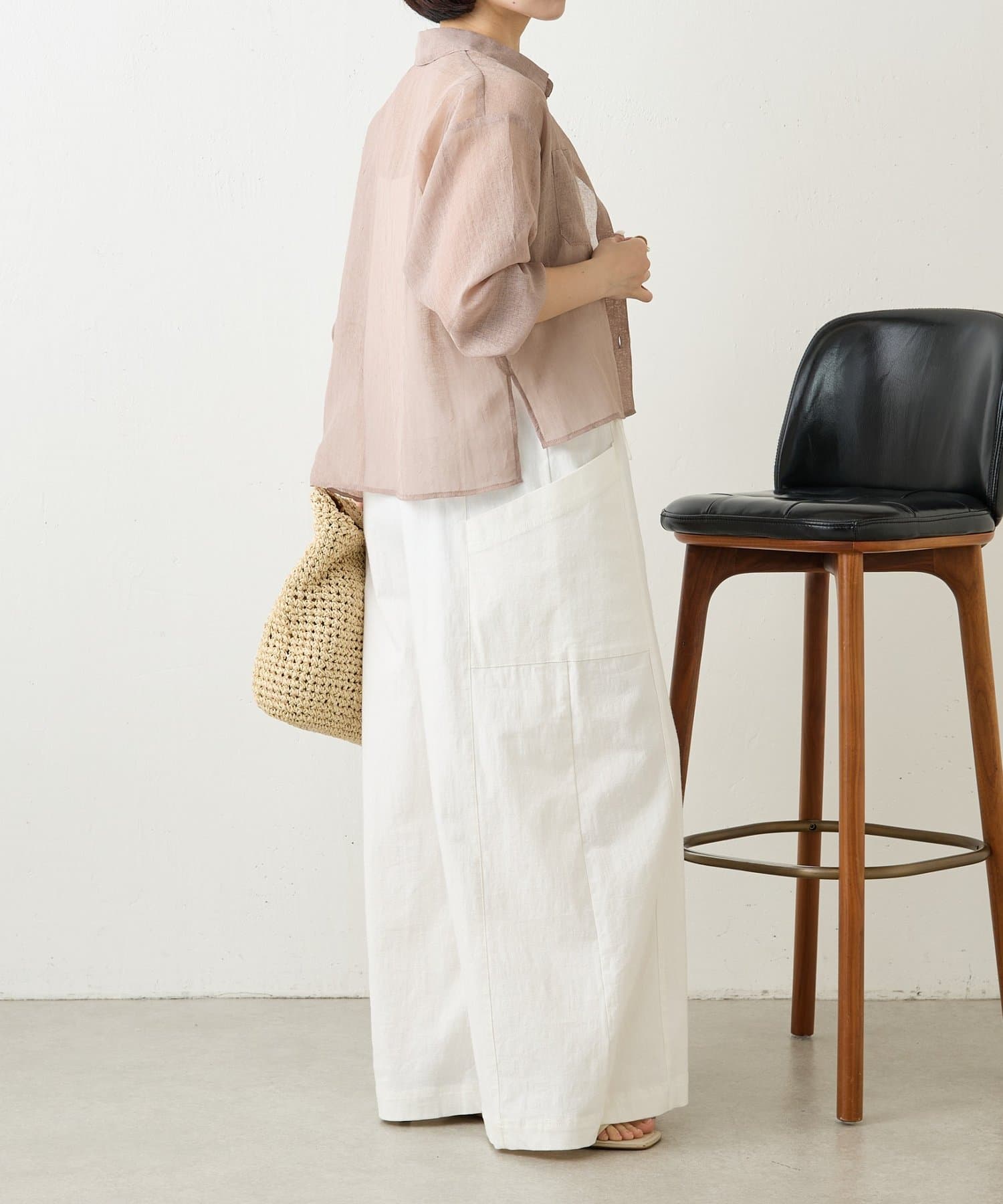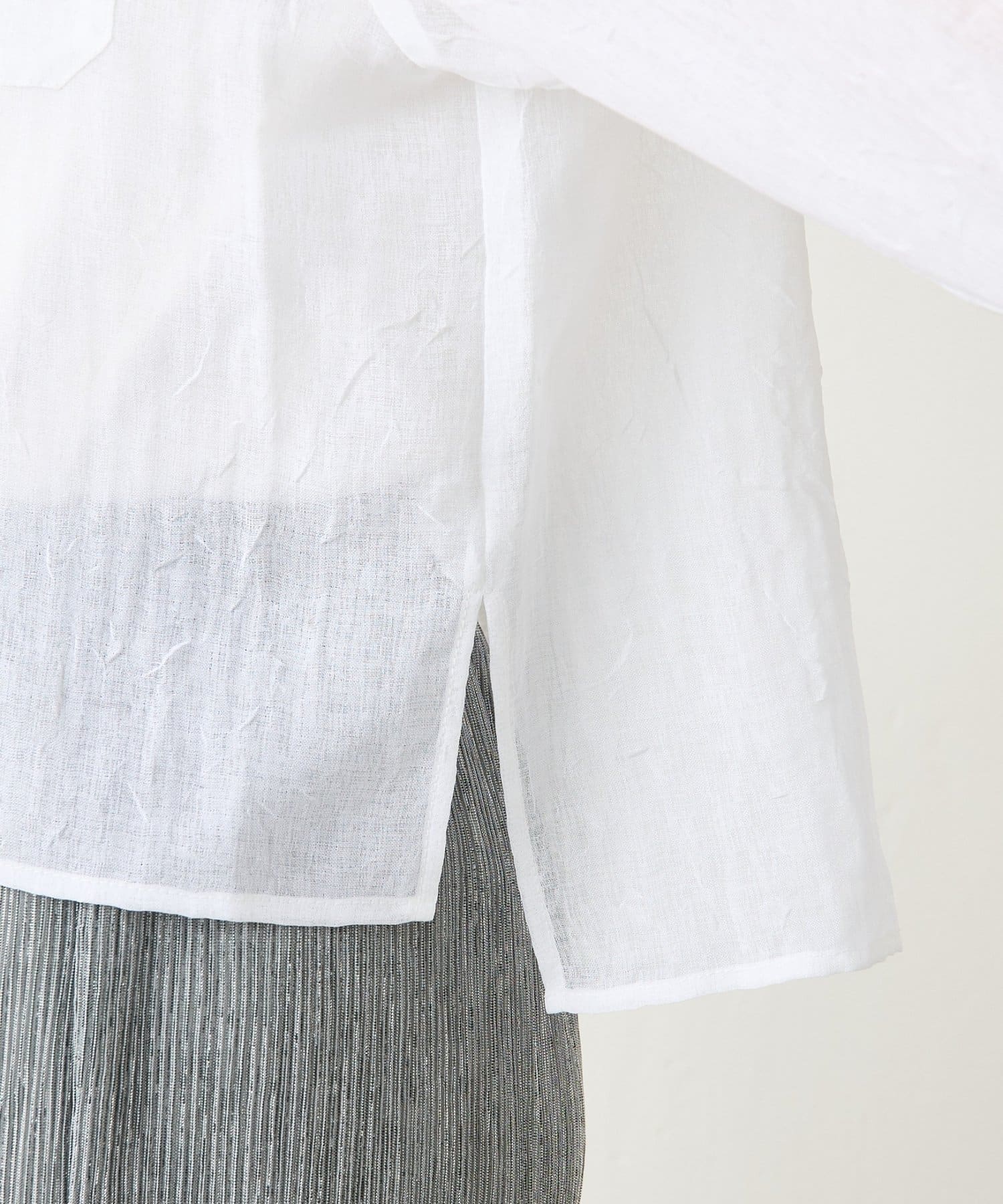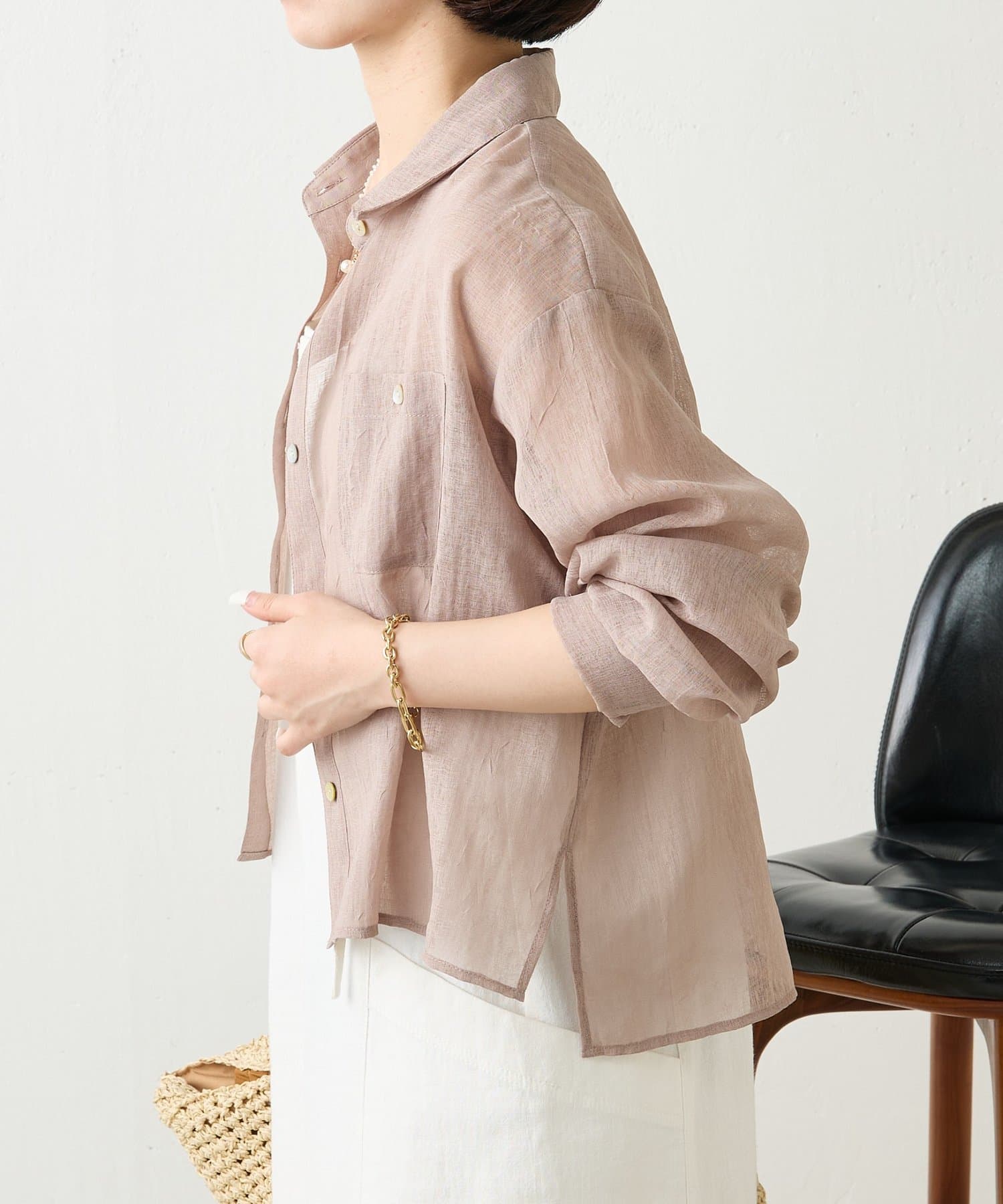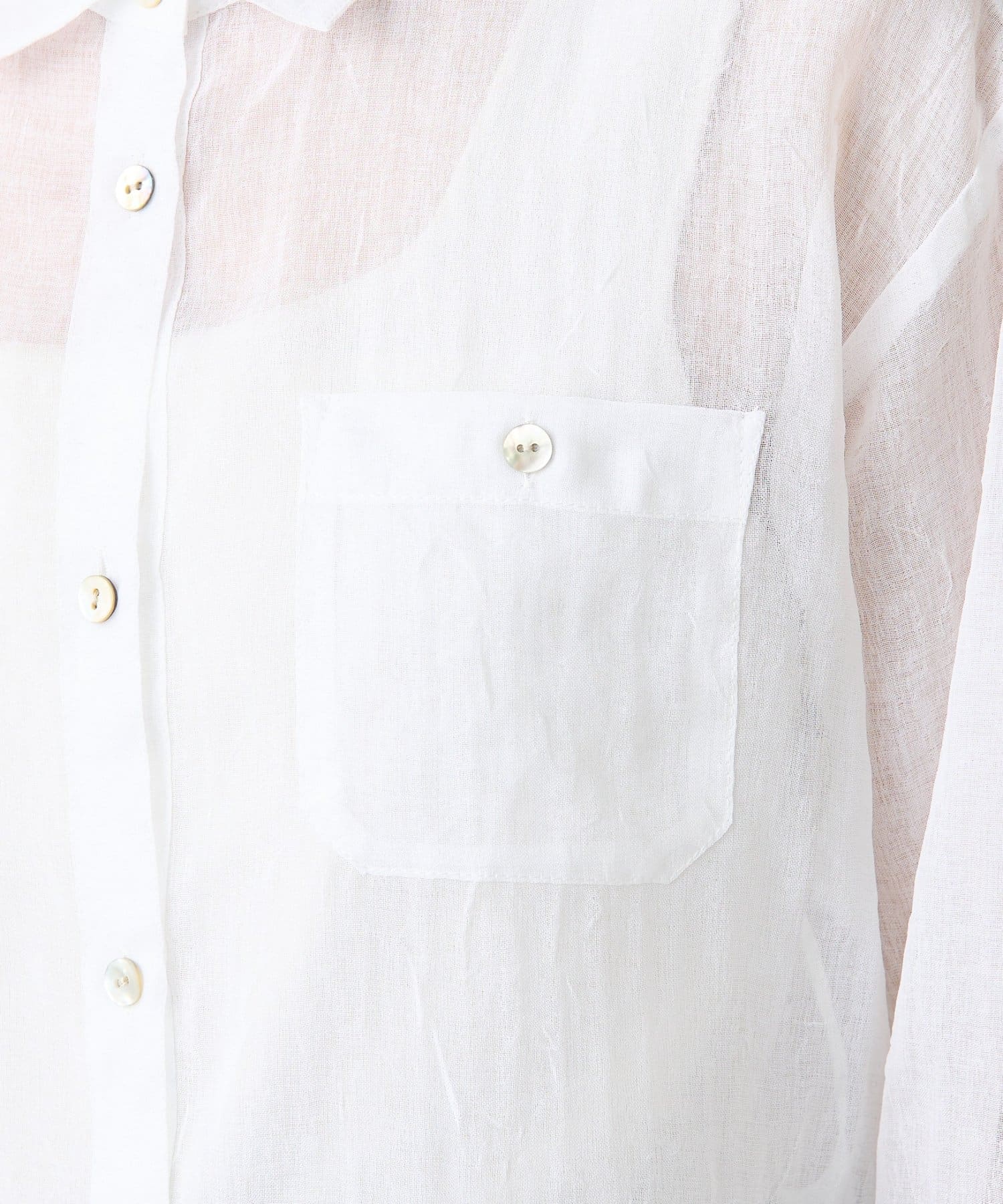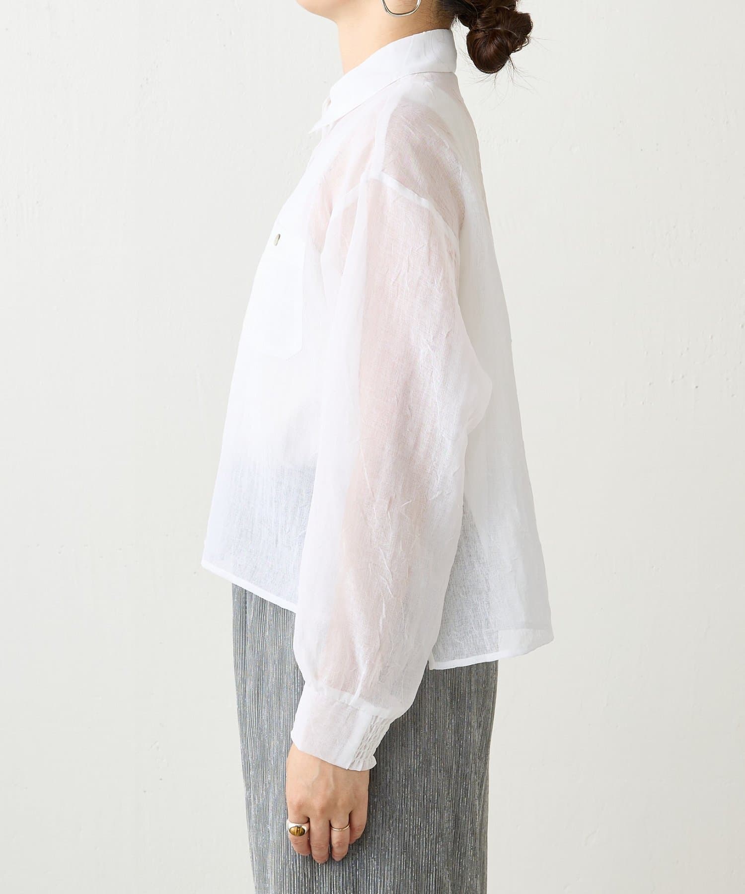 ・程よく透け感のある軽やかな素材が、涼しげで上品な印象を与えるシアーシャツ。