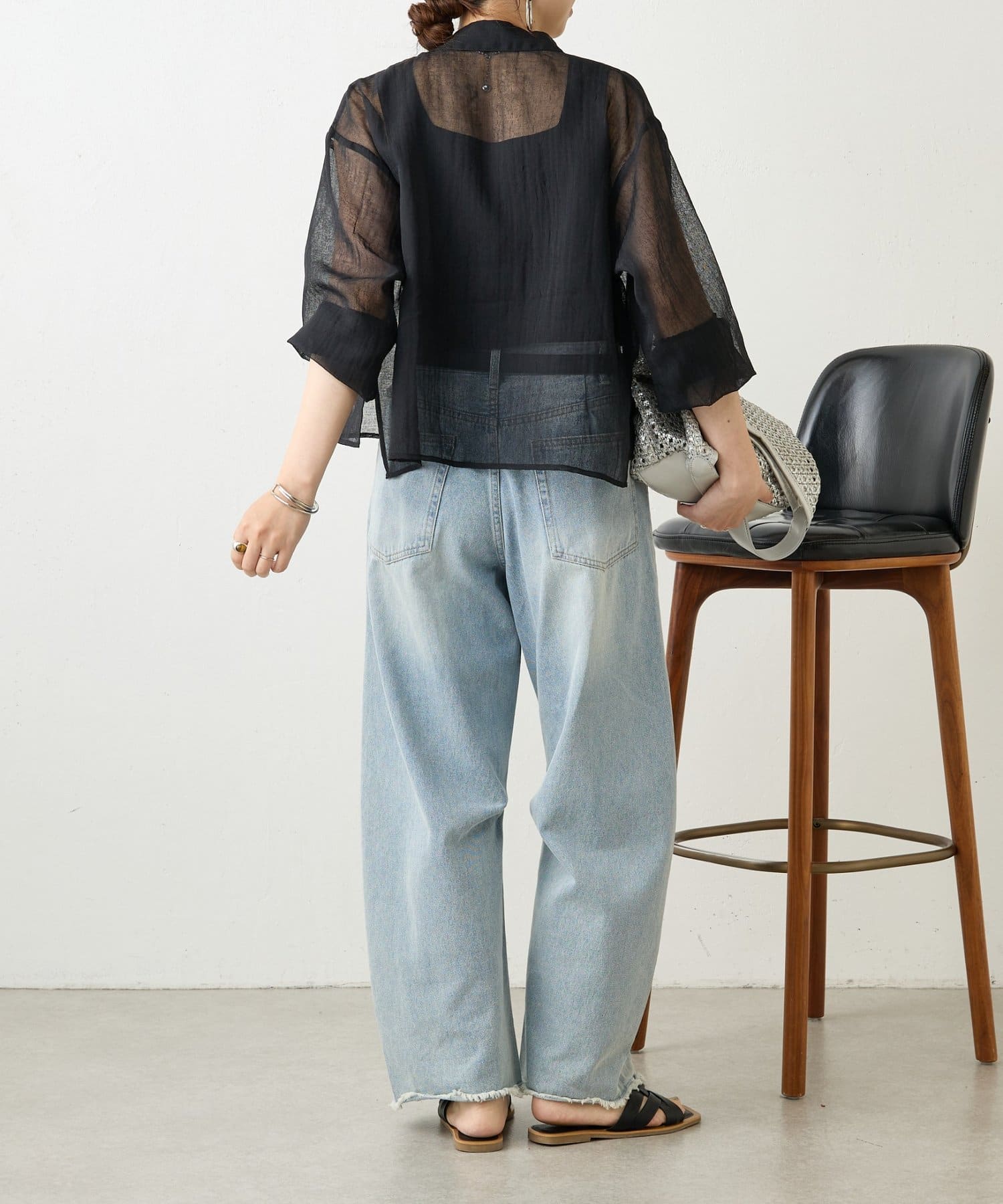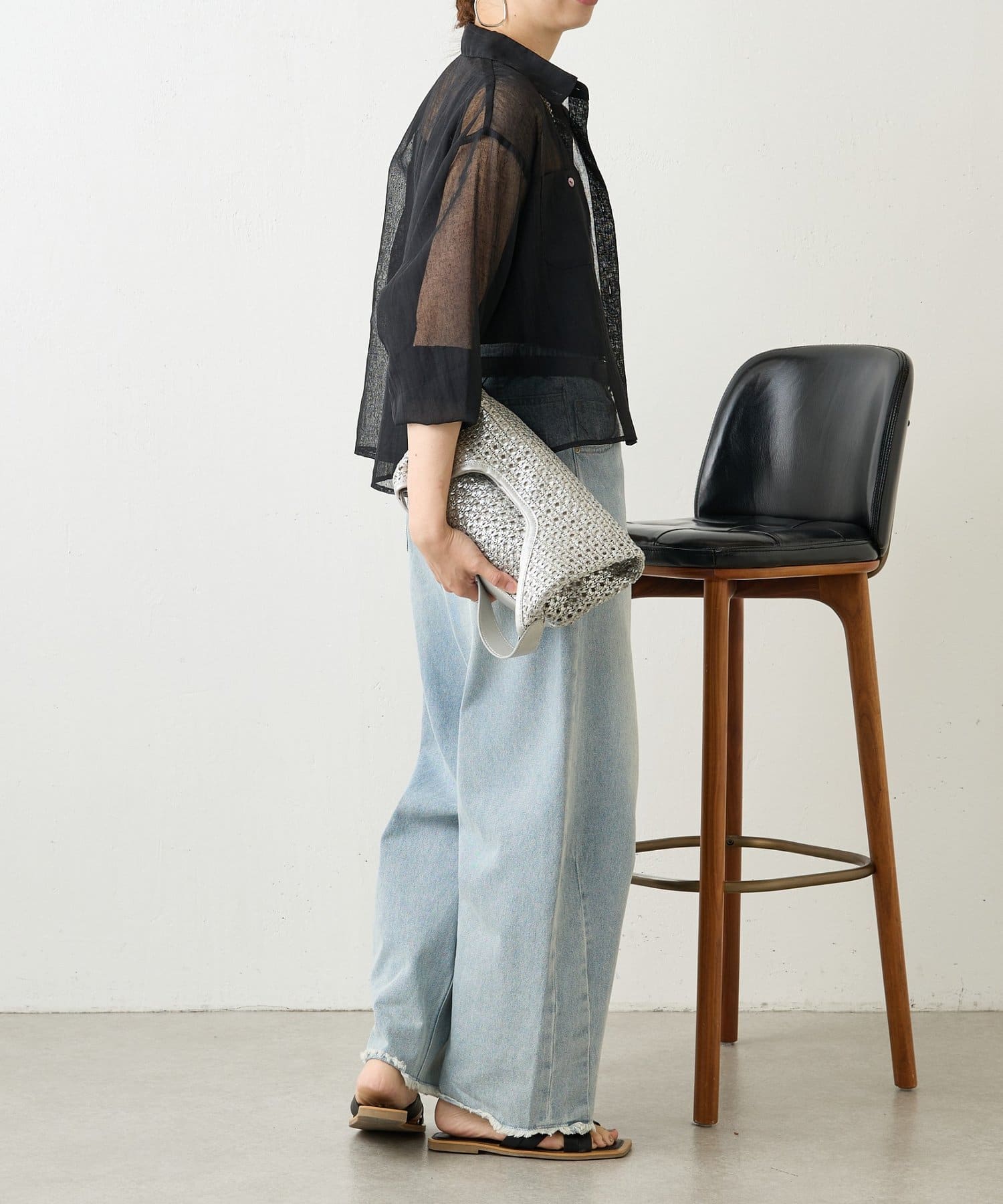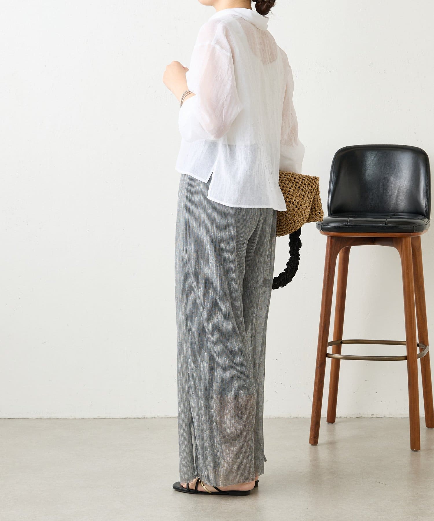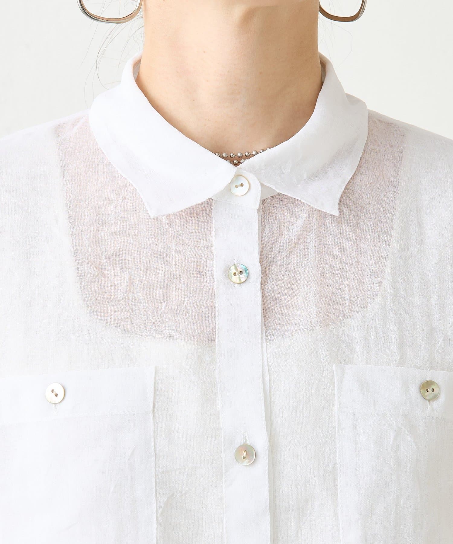 ・程よく透け感のある軽やかな素材が、涼しげで上品な印象を与えるシアーシャツ。