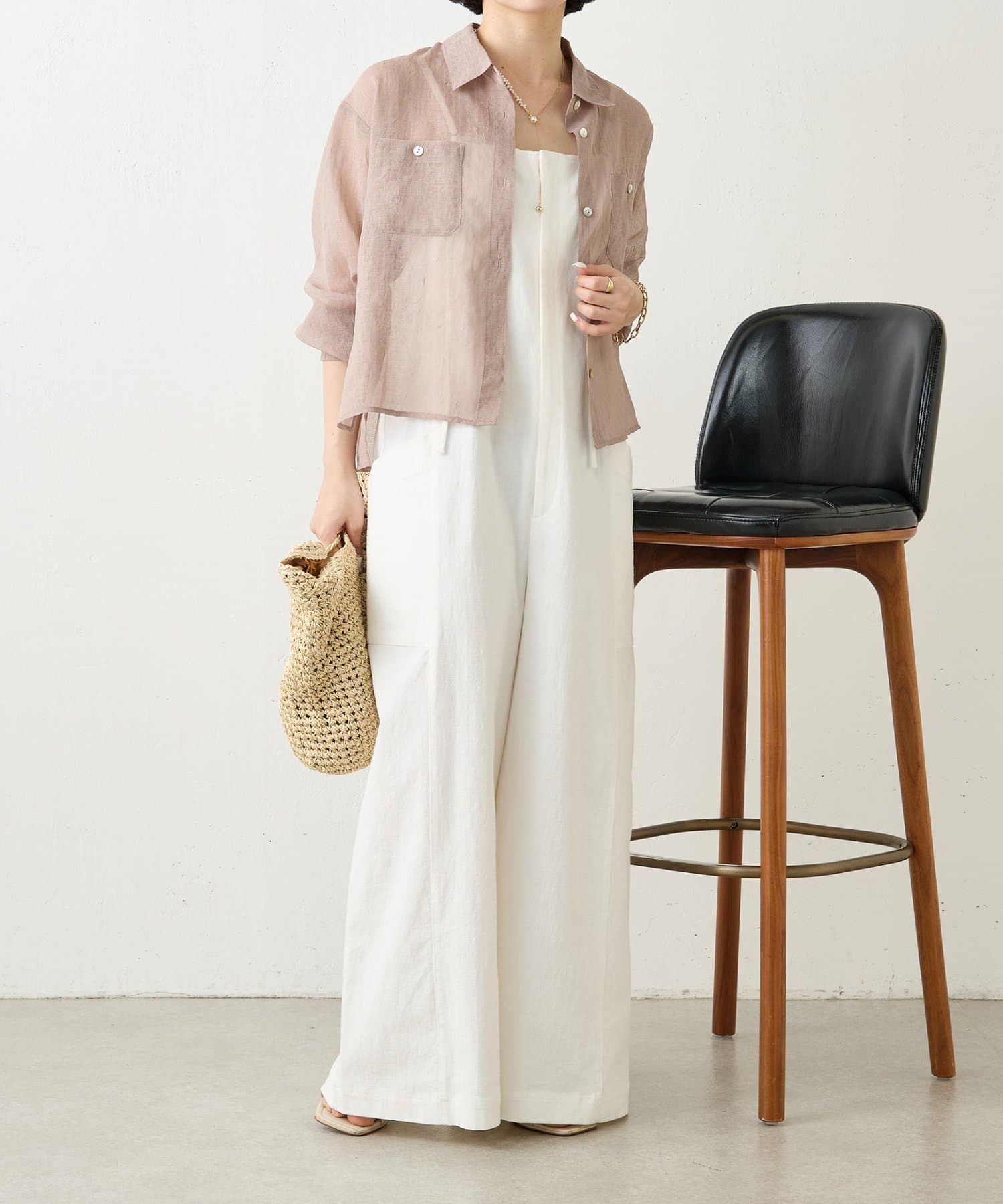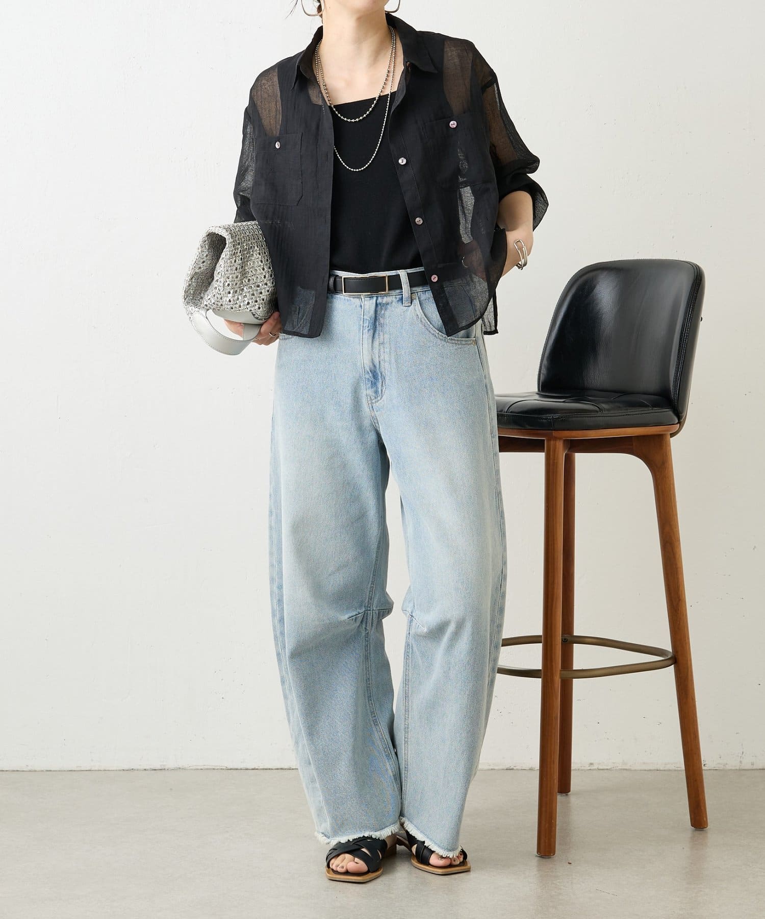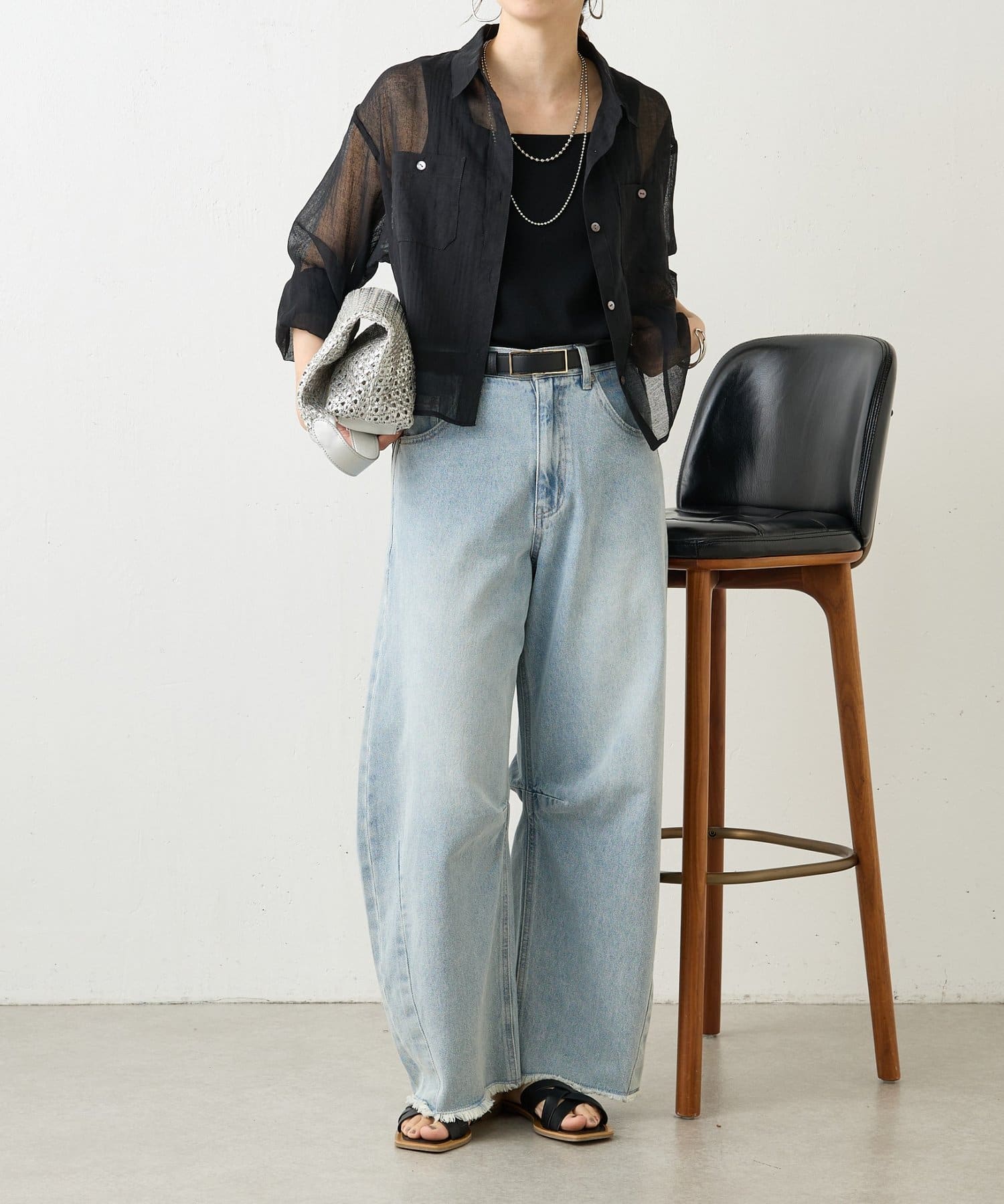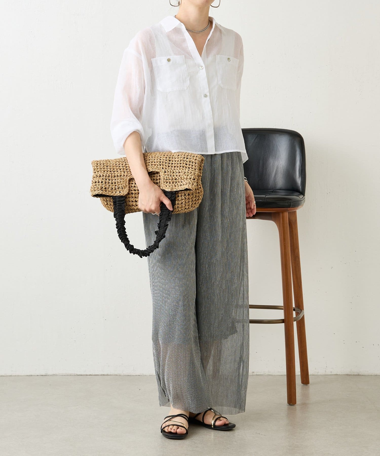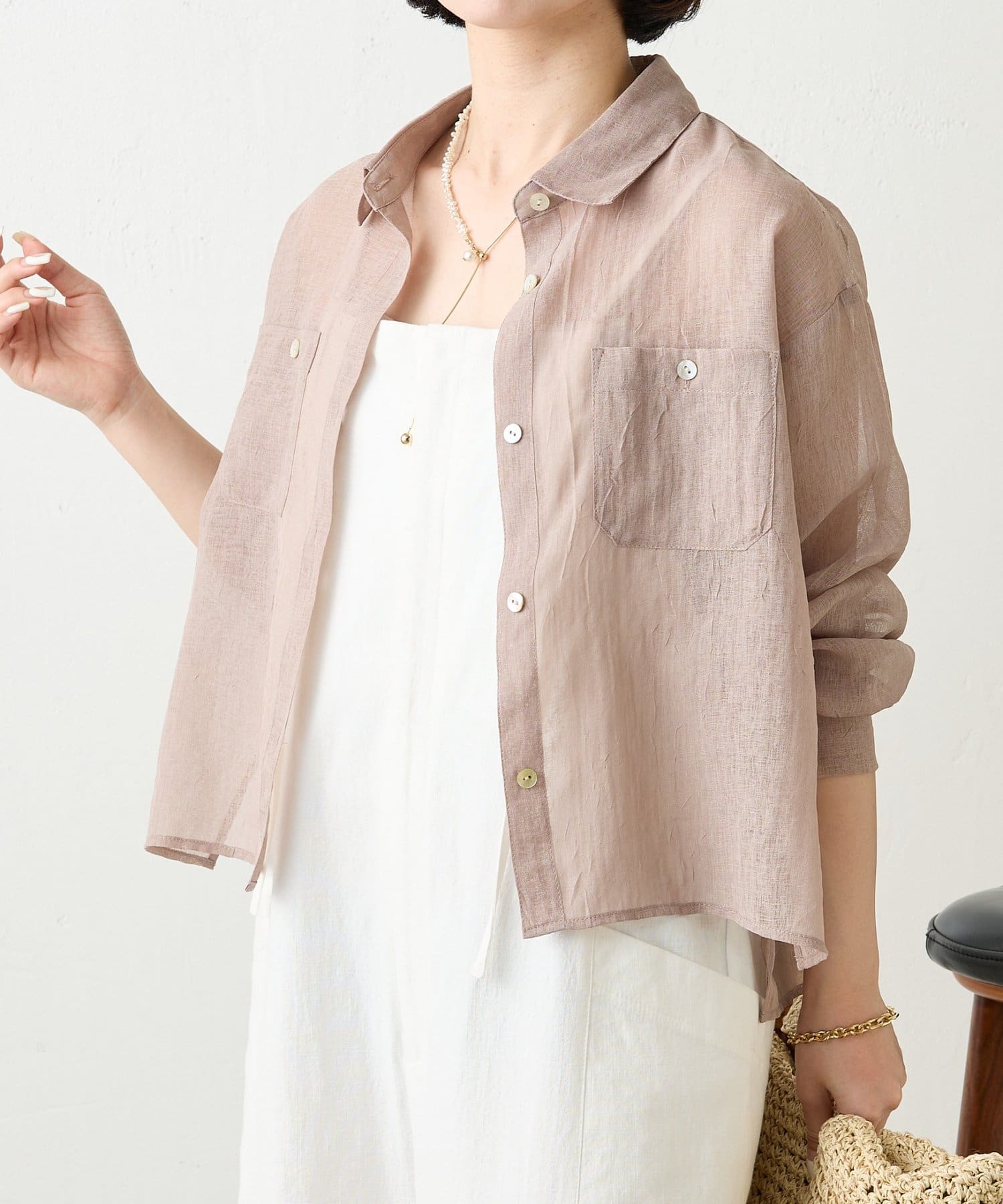 ・程よく透け感のある軽やかな素材が、涼しげで上品な印象を与えるシアーシャツ。