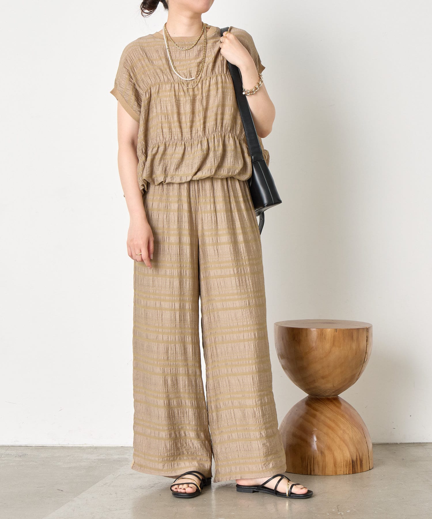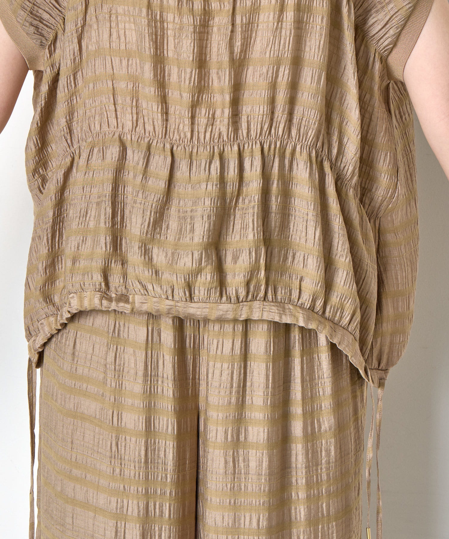 【セットアップ可能】シャーリングボーダーブラウス