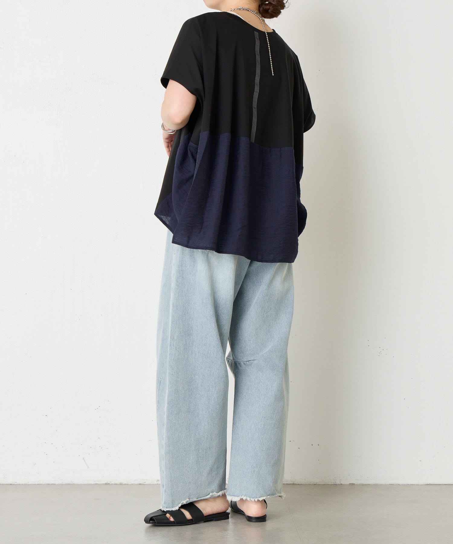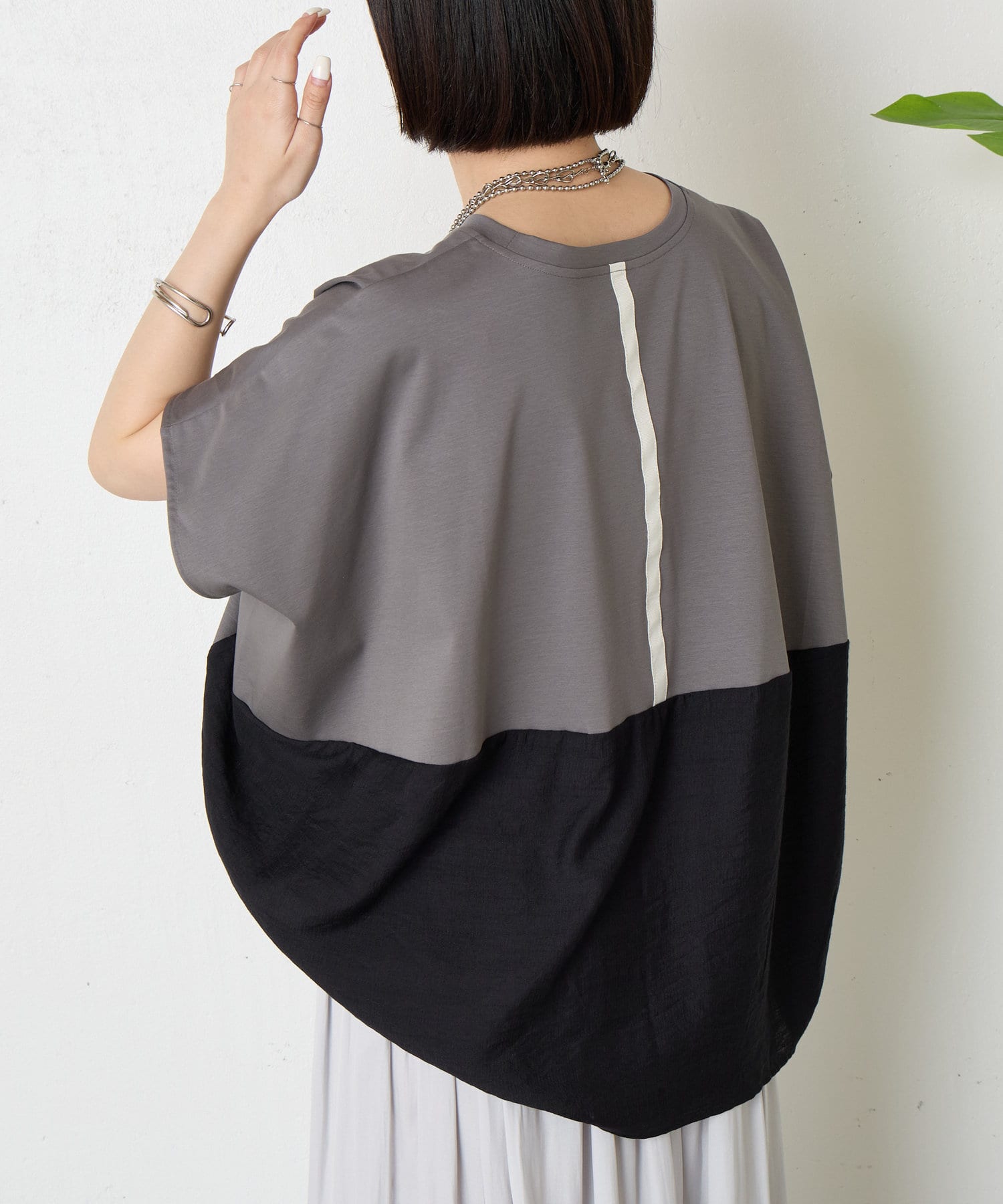 ・バックデザインが光る、大人のためのバイカラーデザイントップス。