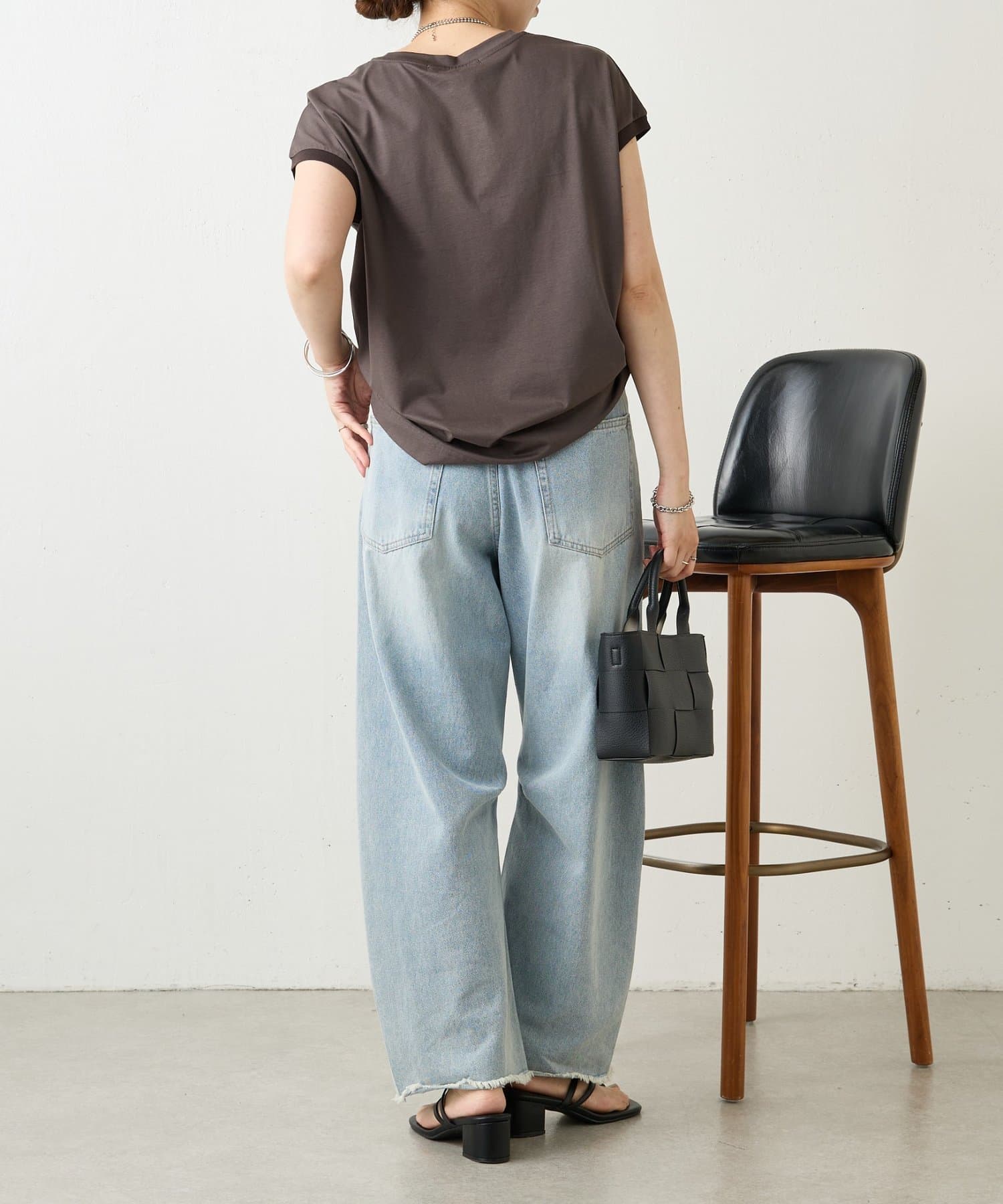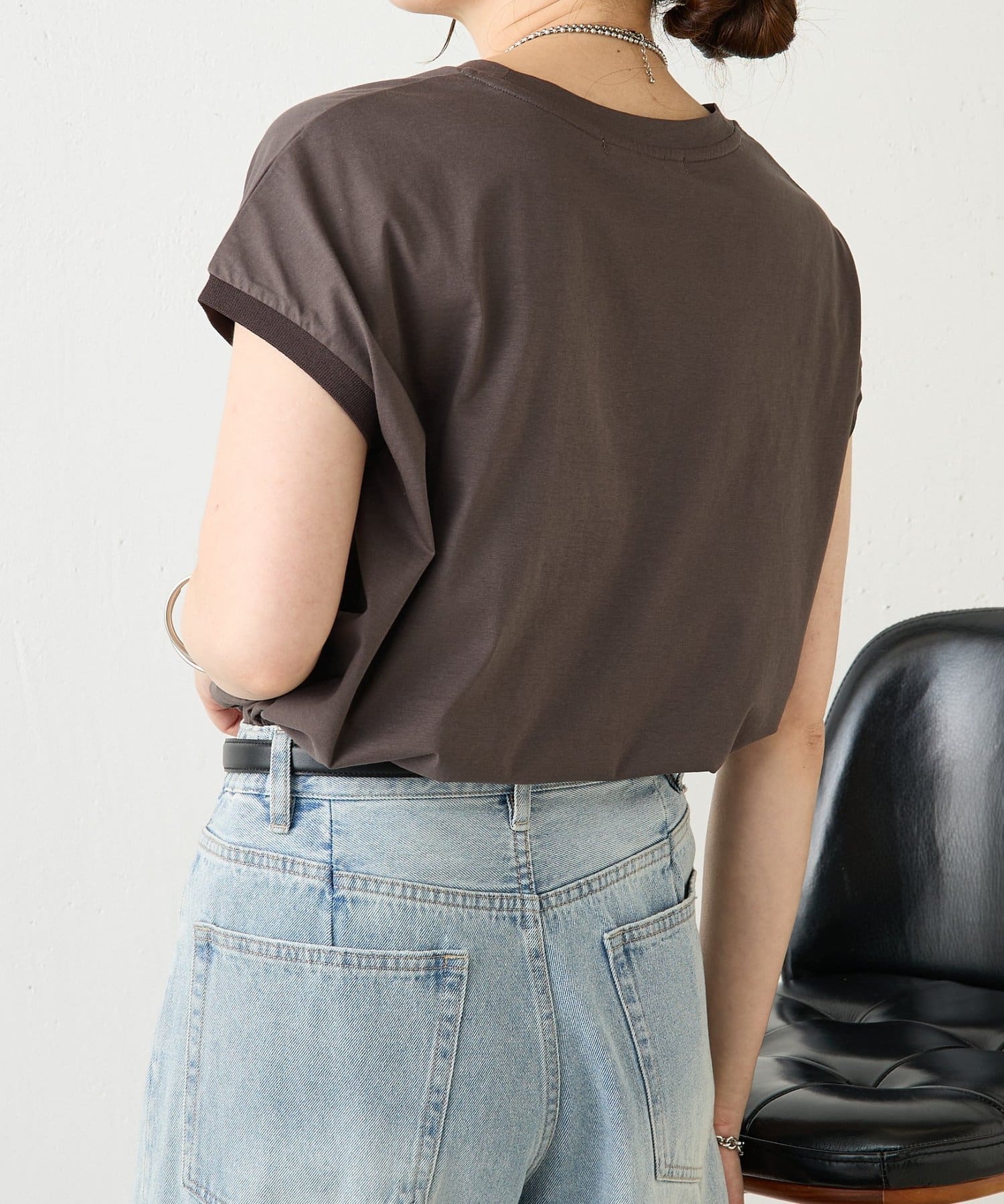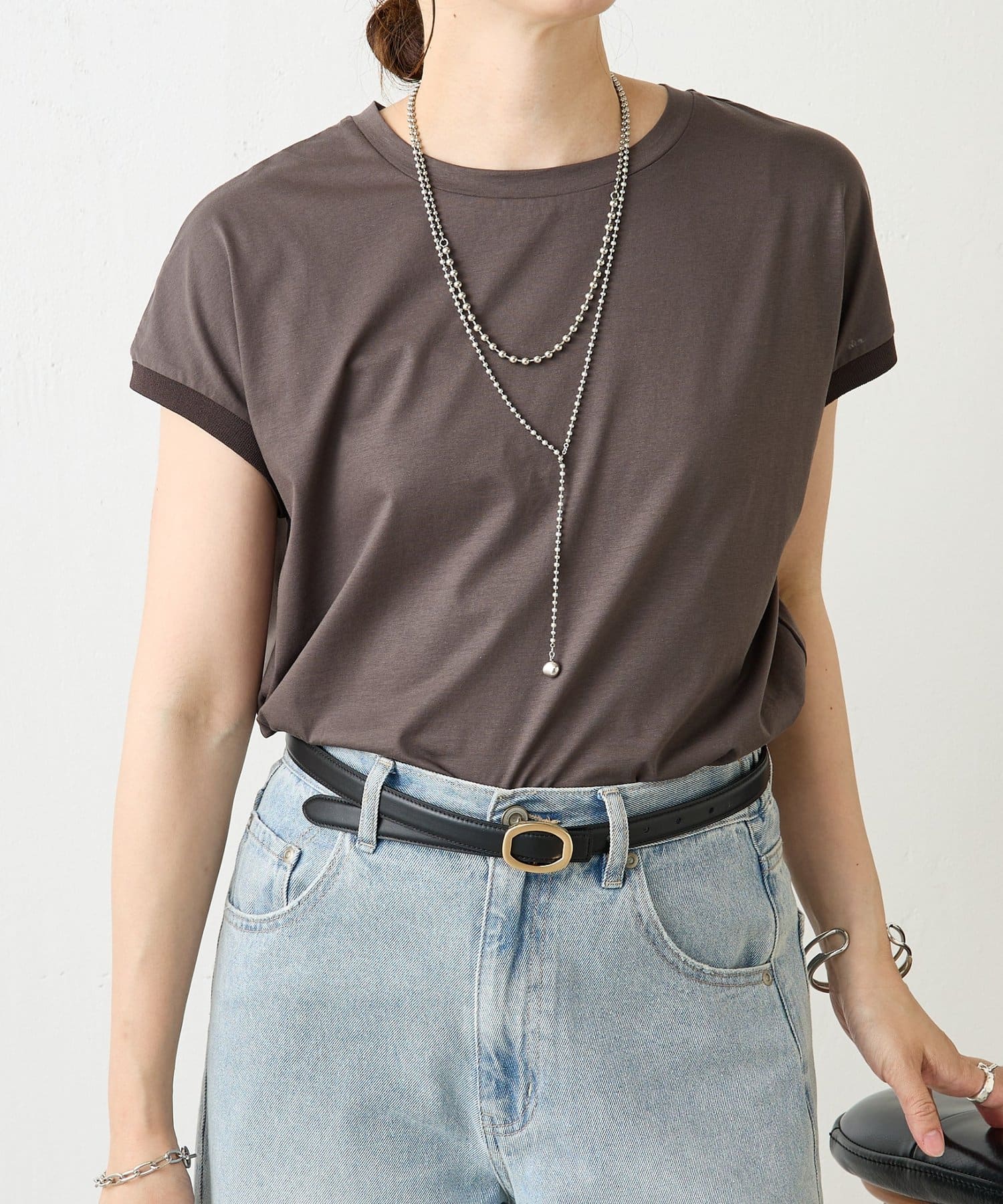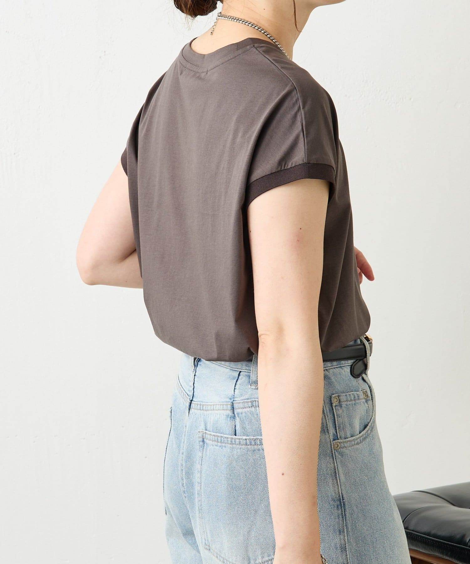 ・柔らかな肌ざわりのコットン素材に、程よく二の腕をカバーする袖丈が嬉しいポイント。