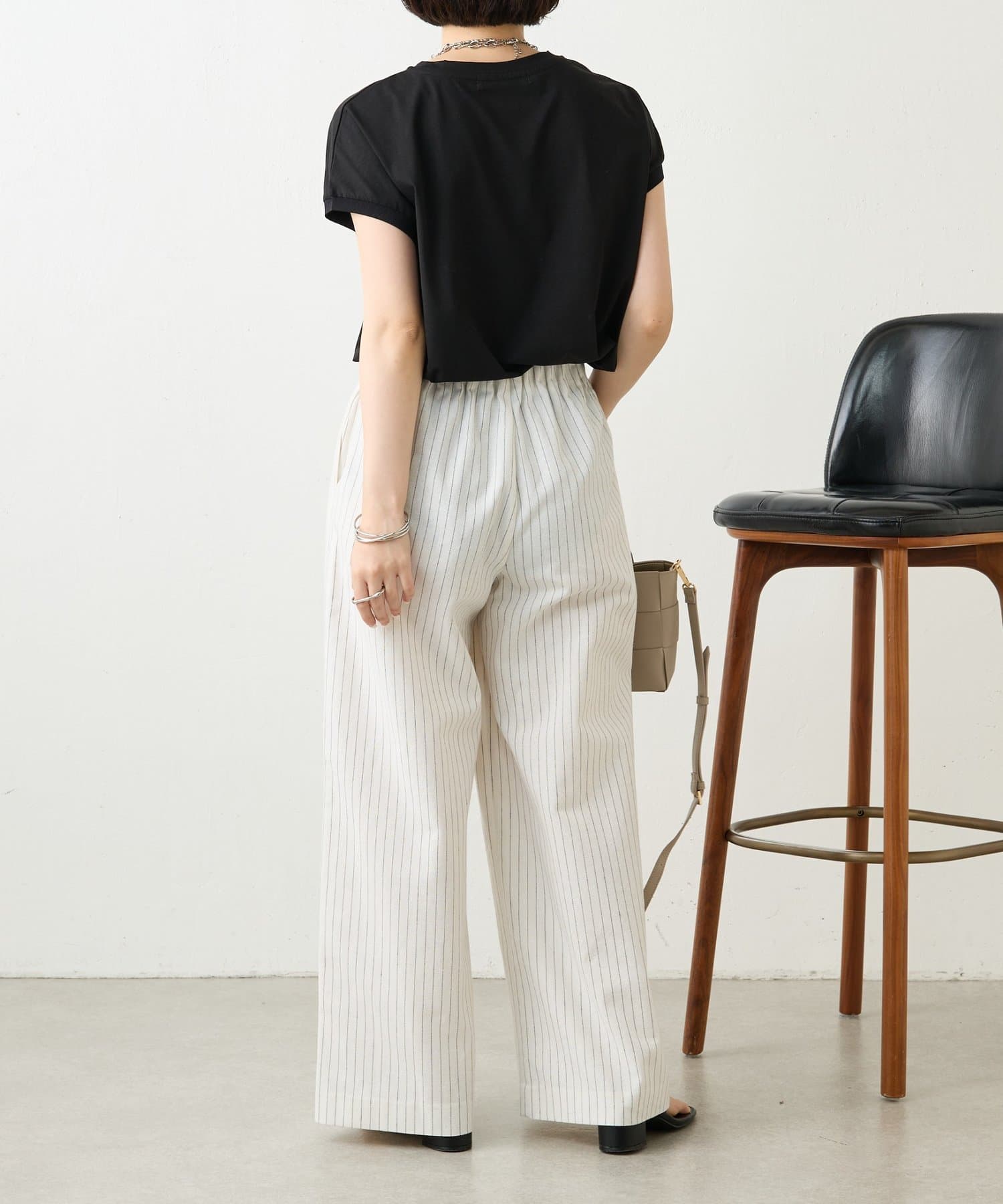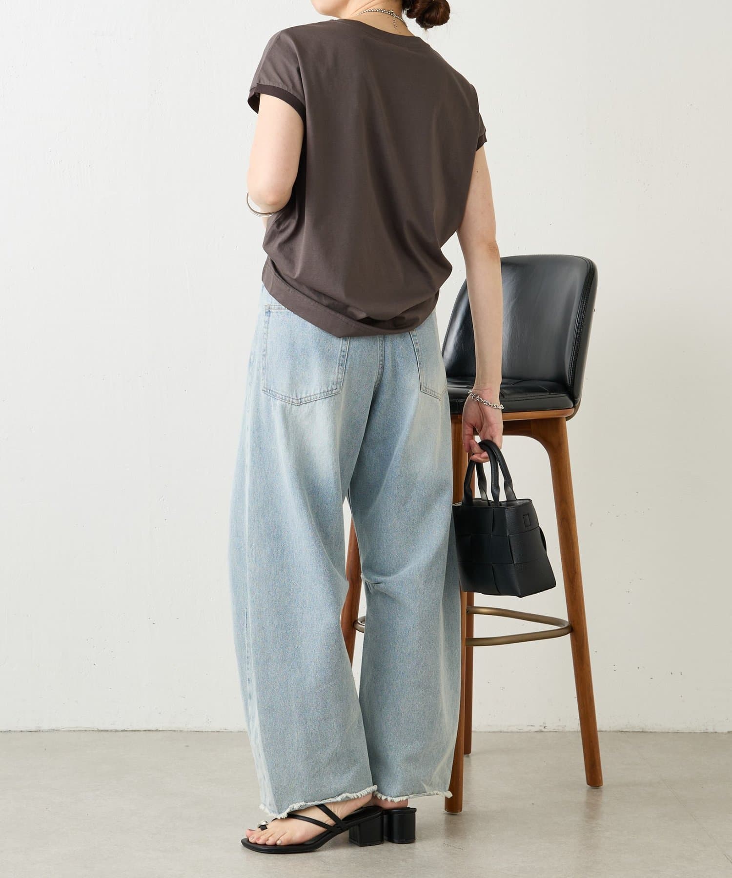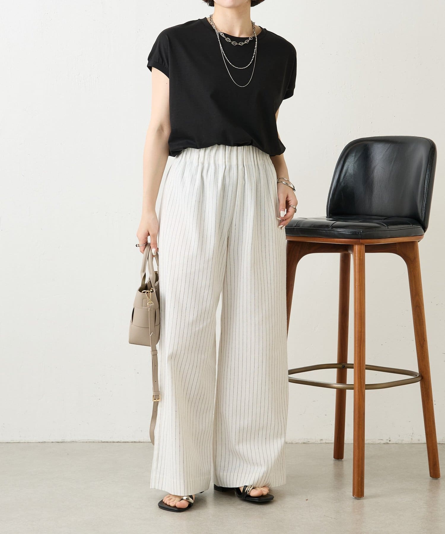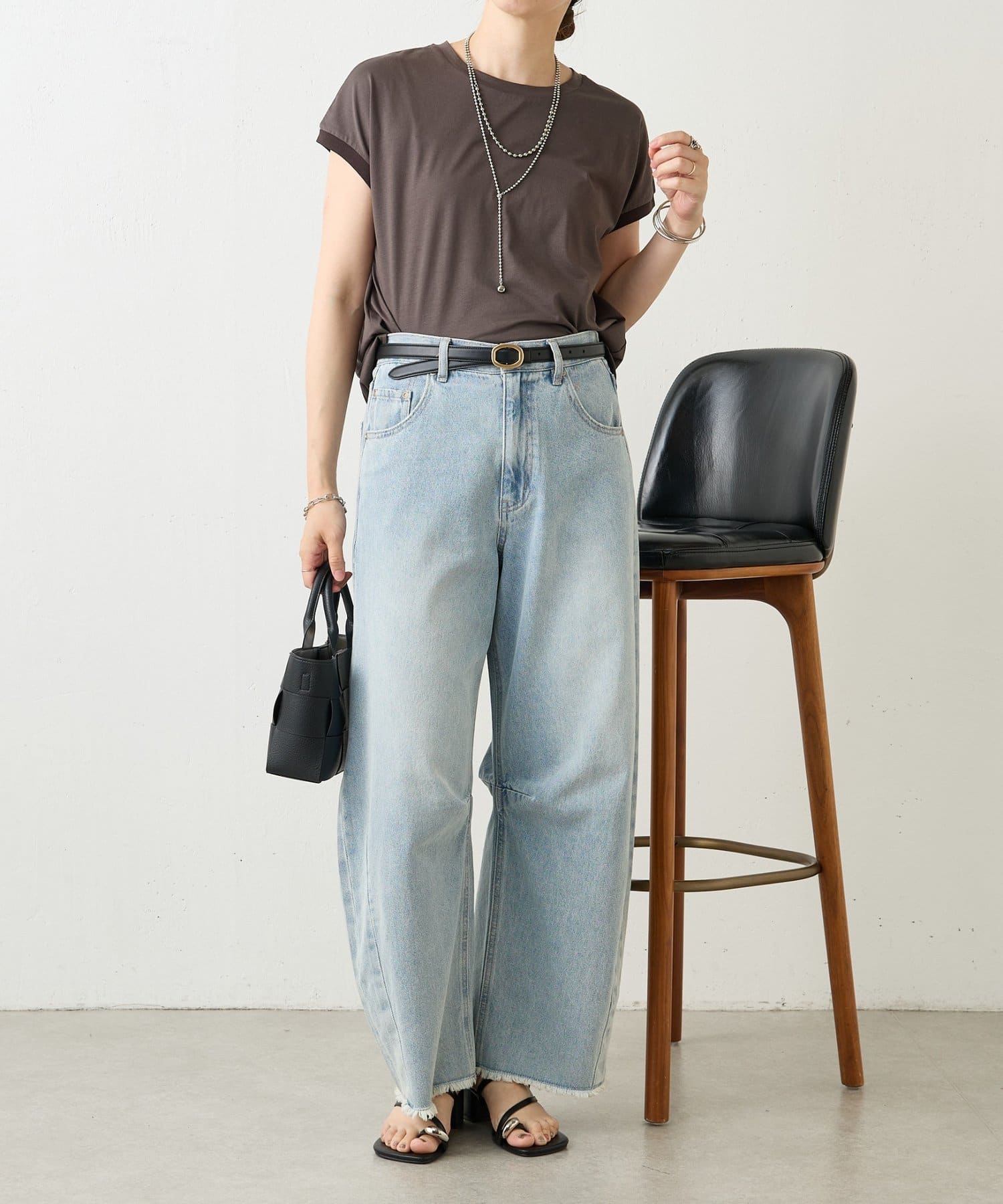 ・柔らかな肌ざわりのコットン素材に、程よく二の腕をカバーする袖丈が嬉しいポイント。