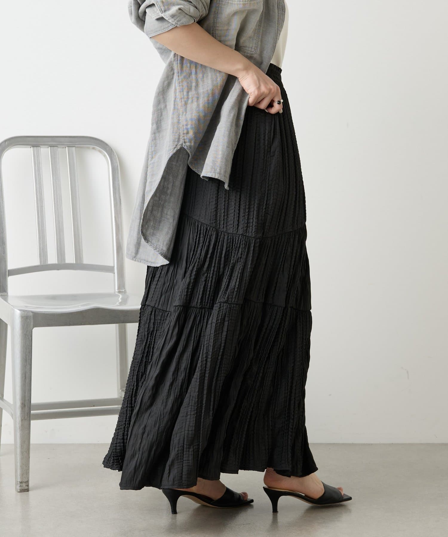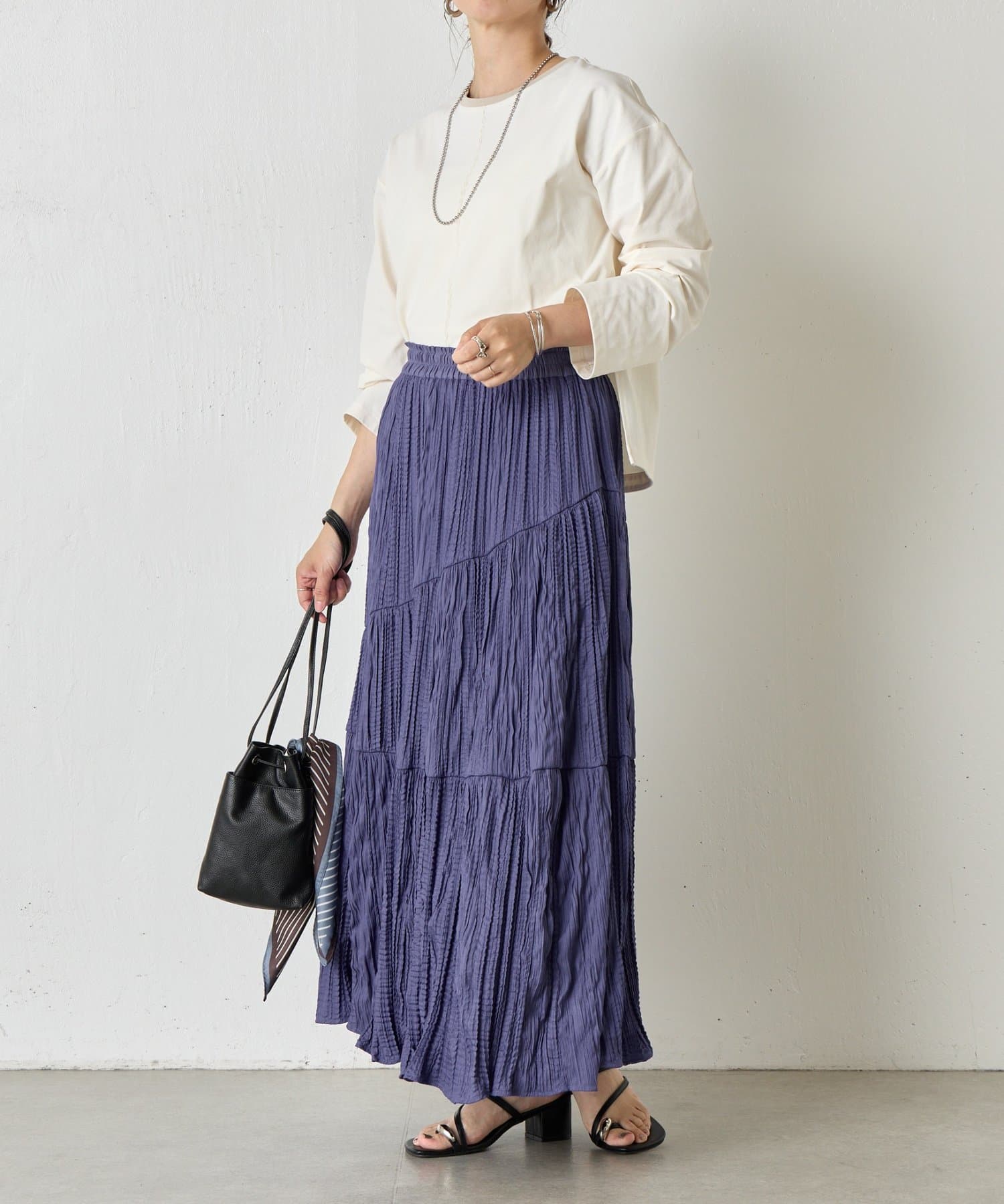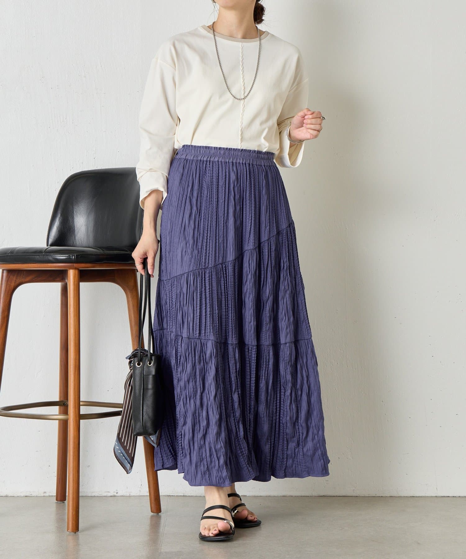 ・クリンクル加工を施し、表面感と立体感をプラスした夏の気分を高めてくれるスカート。