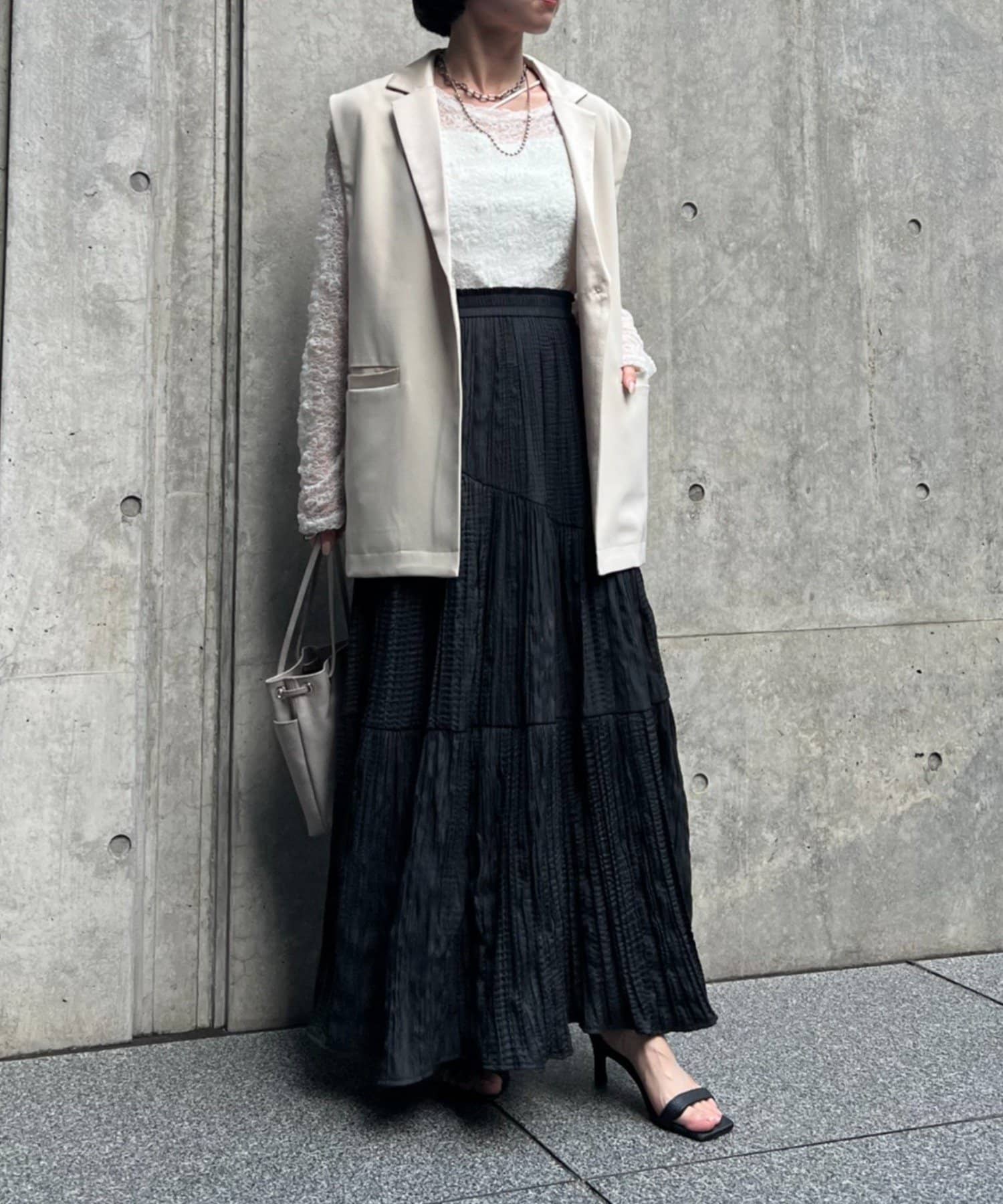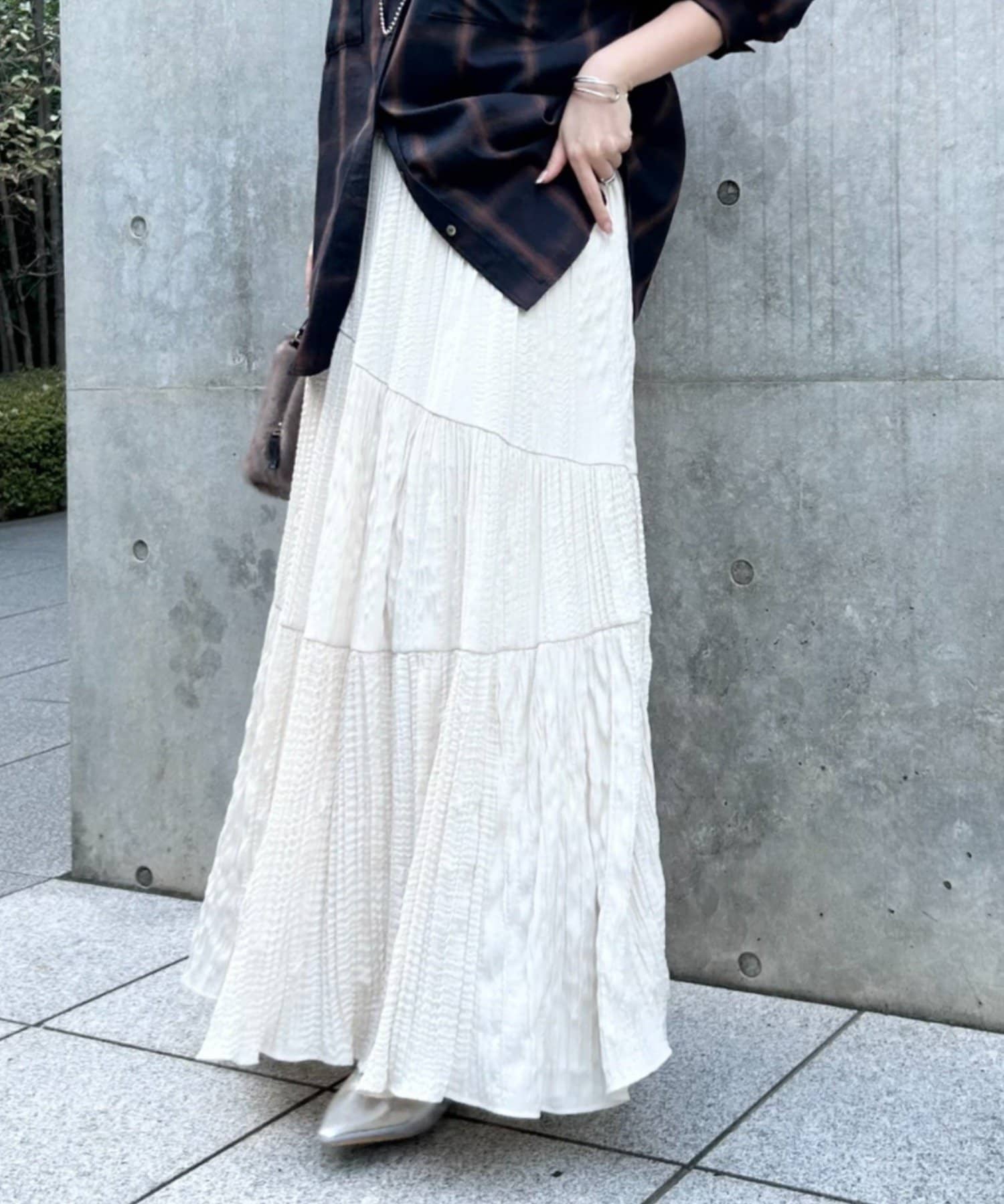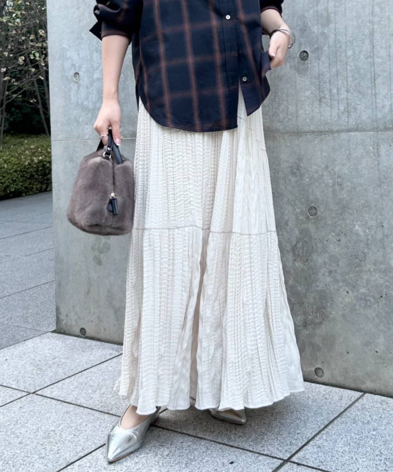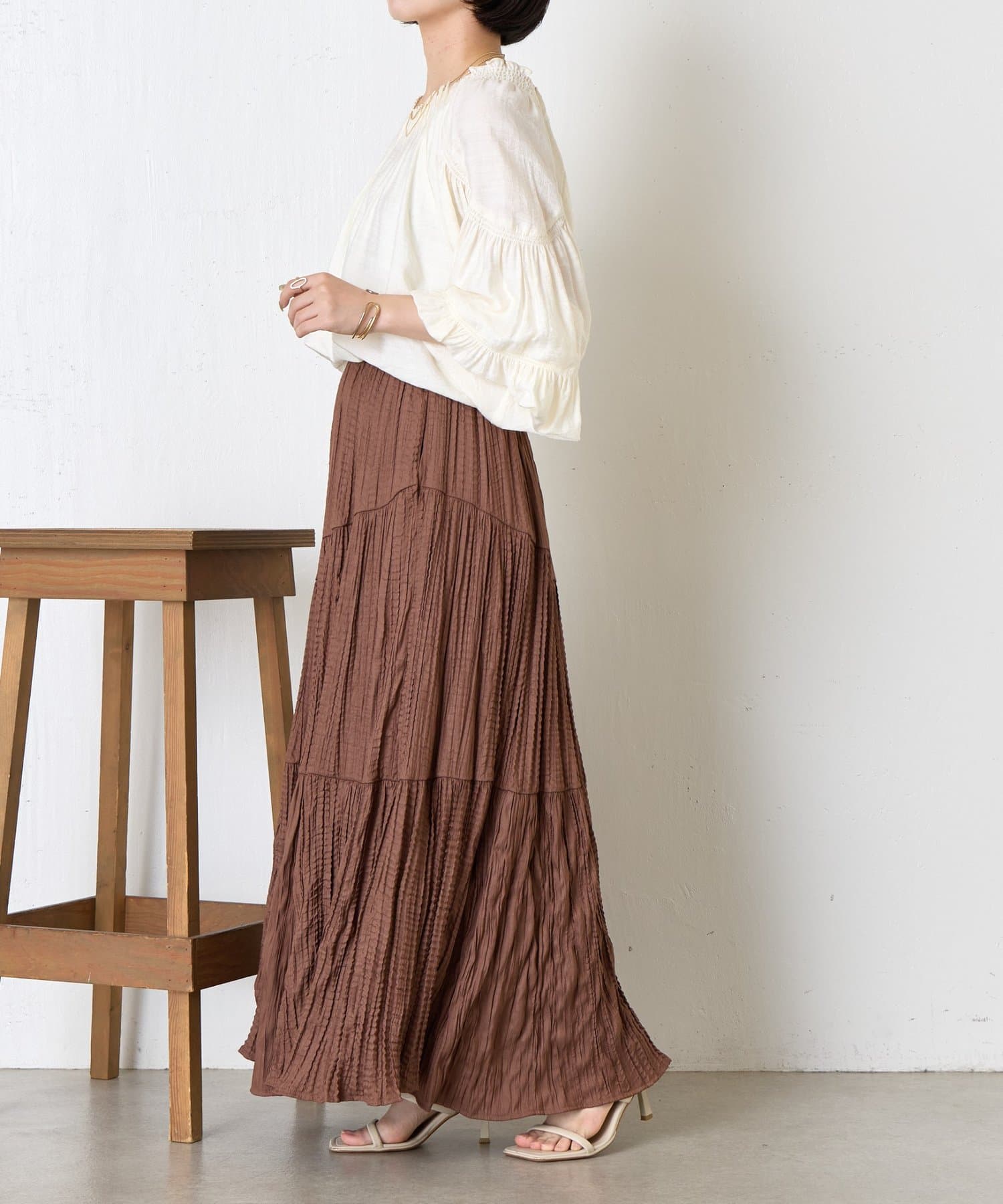 ・クリンクル加工を施し、表面感と立体感をプラスした夏の気分を高めてくれるスカート。