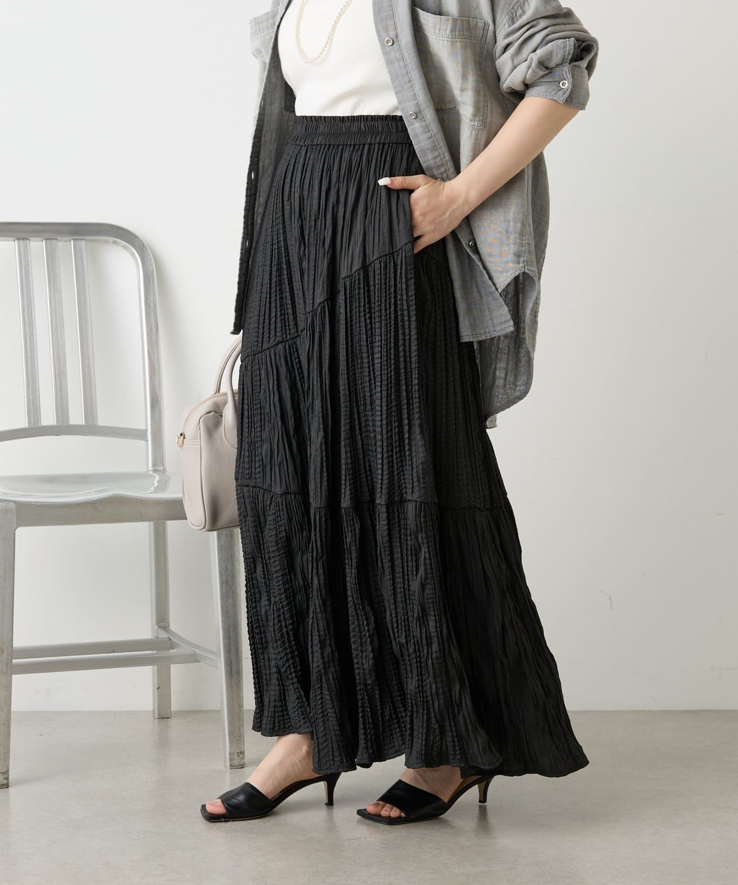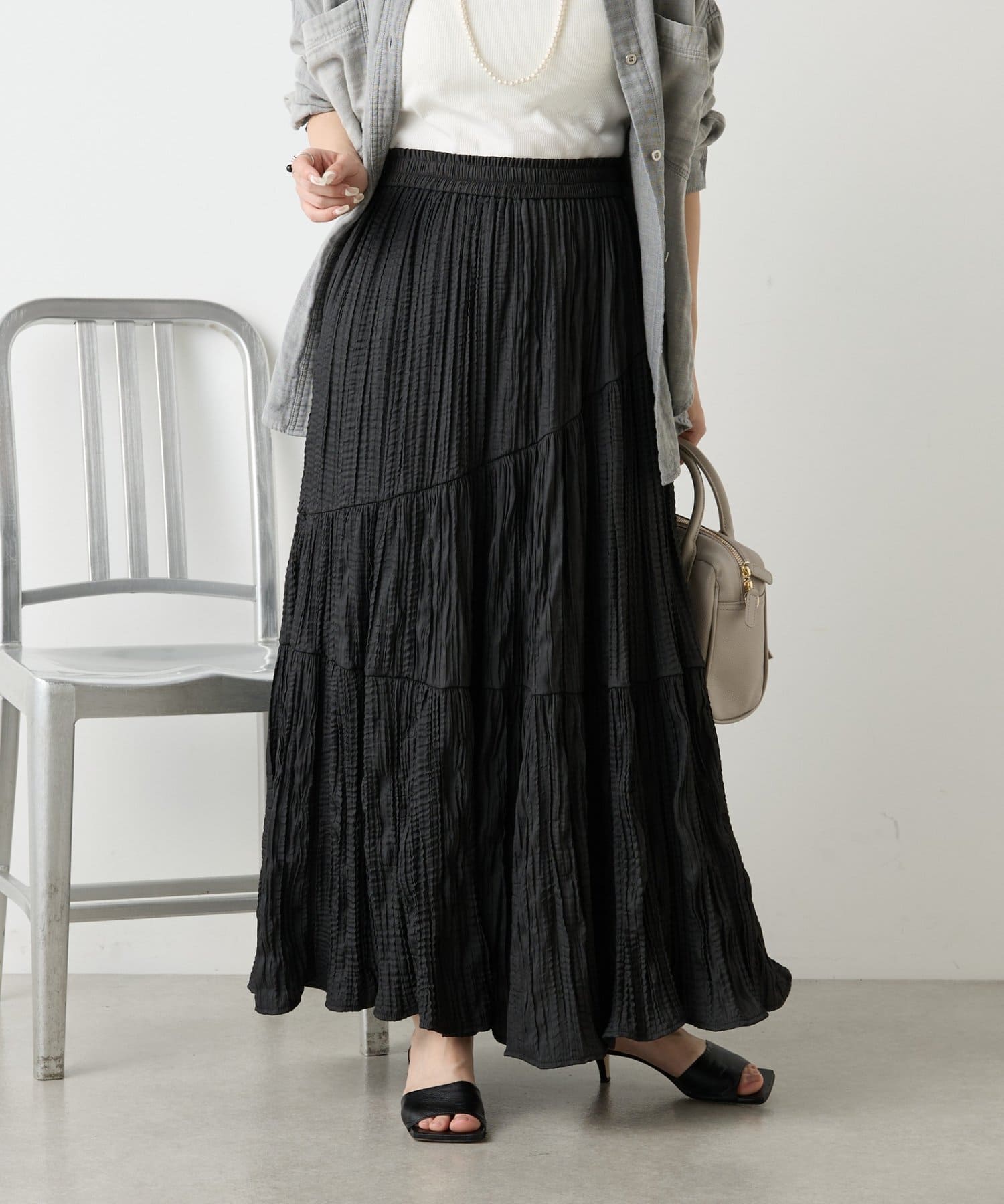 【大好評につき新色登場!】クリンクルアシメギャザースカート