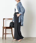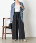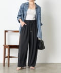 ・裏地なしで真夏まで長く活躍するような大人カジュアルなスタイリングには欠かせないきれい見え楽ちんパンツ。