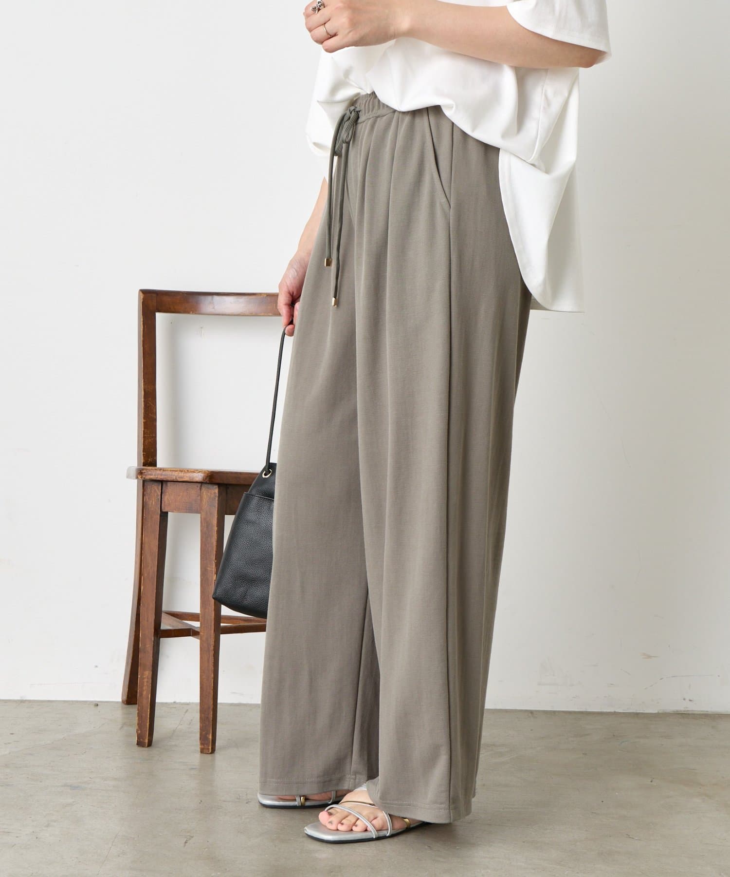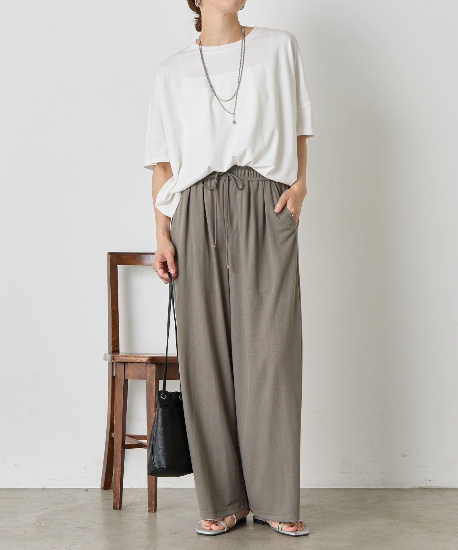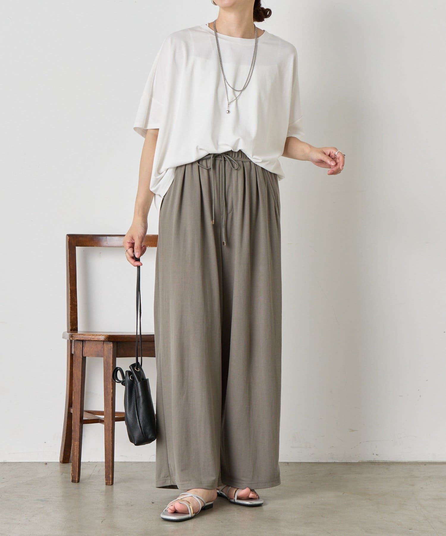 ・柔らかく、リラックス感のある素材が魅力のイージーパンツ。