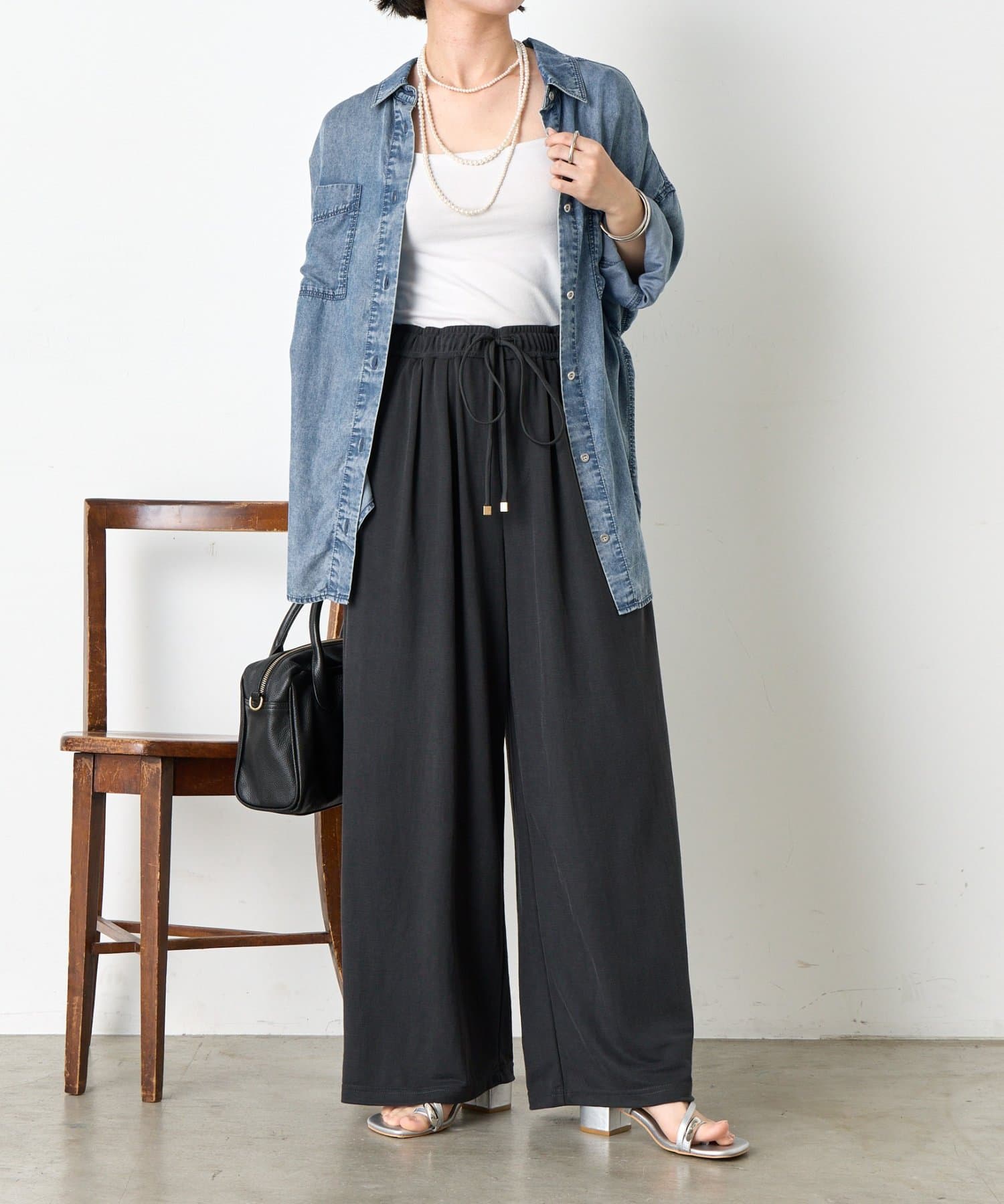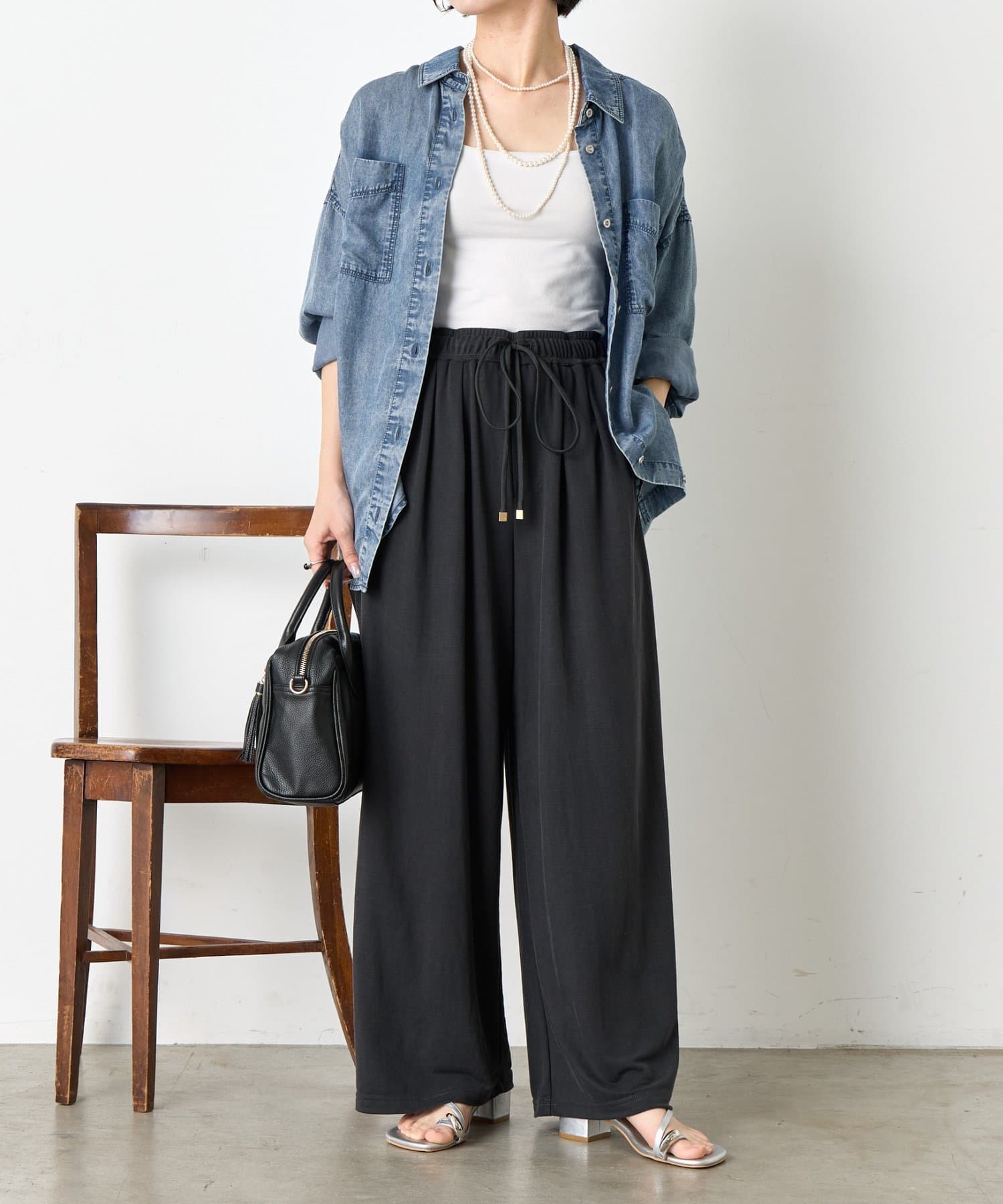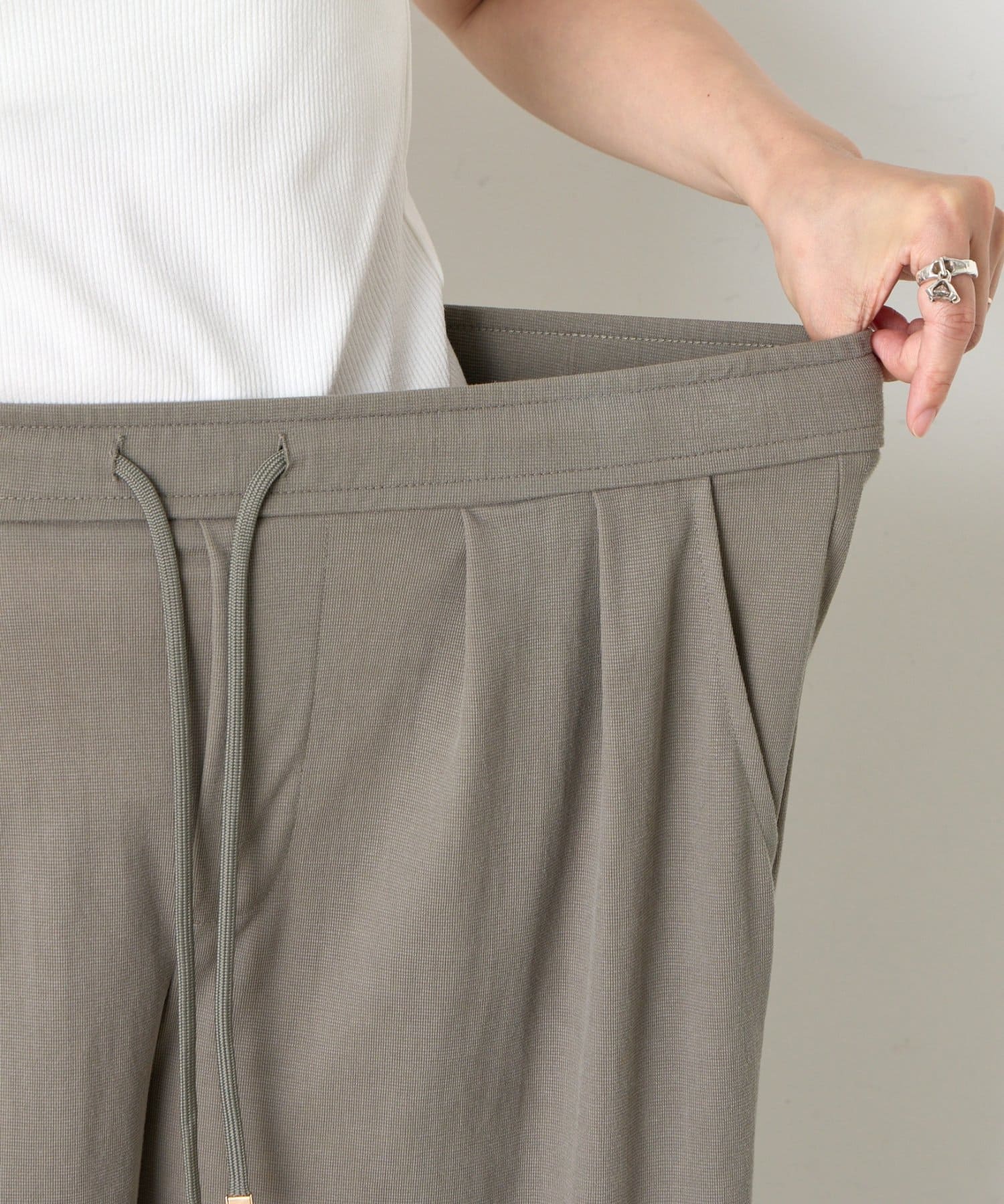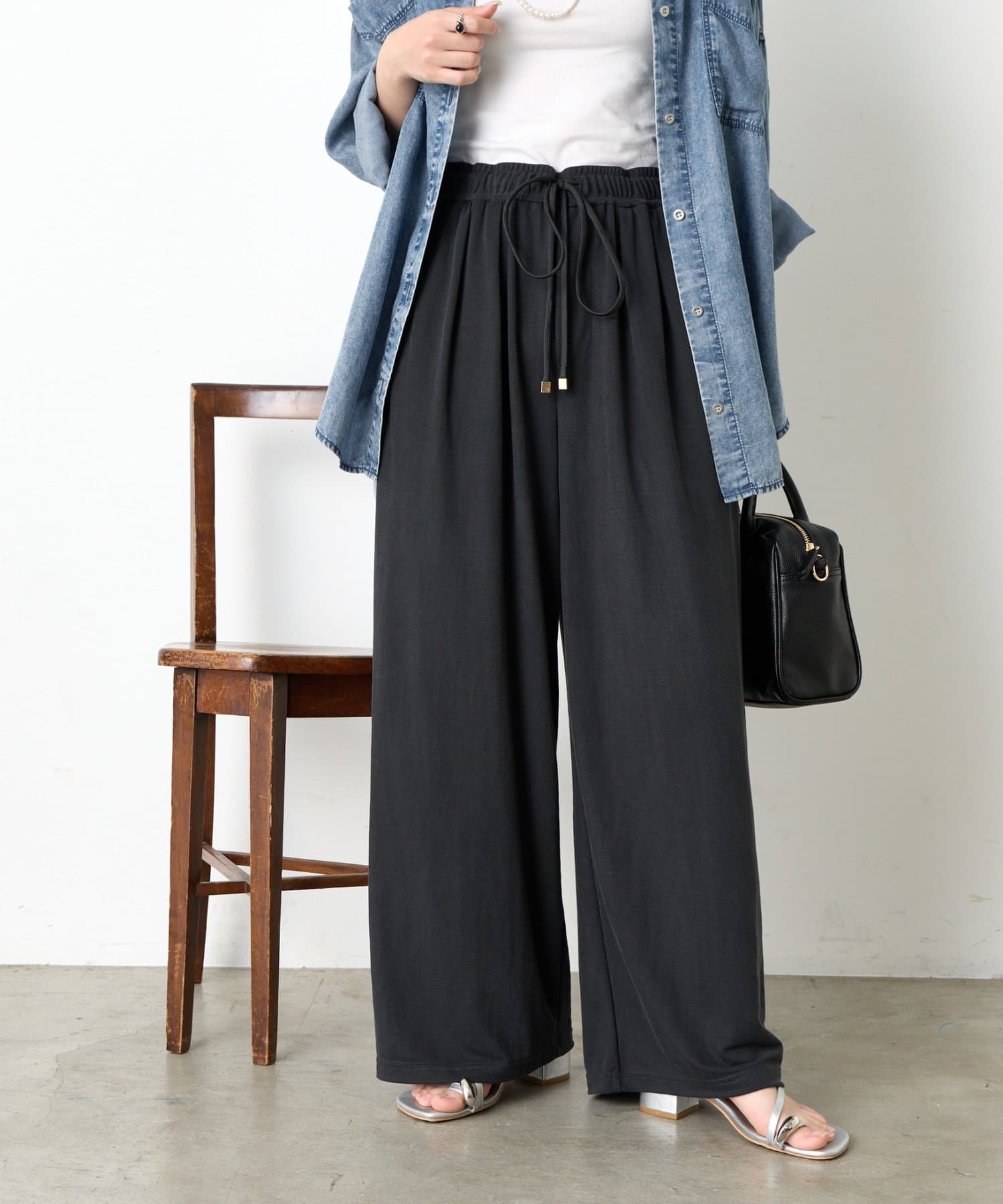 ・柔らかく、リラックス感のある素材が魅力のイージーパンツ。