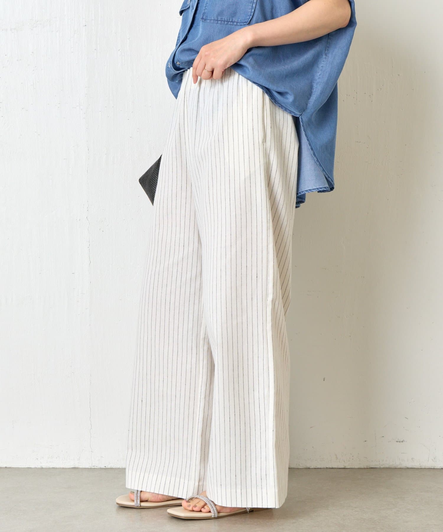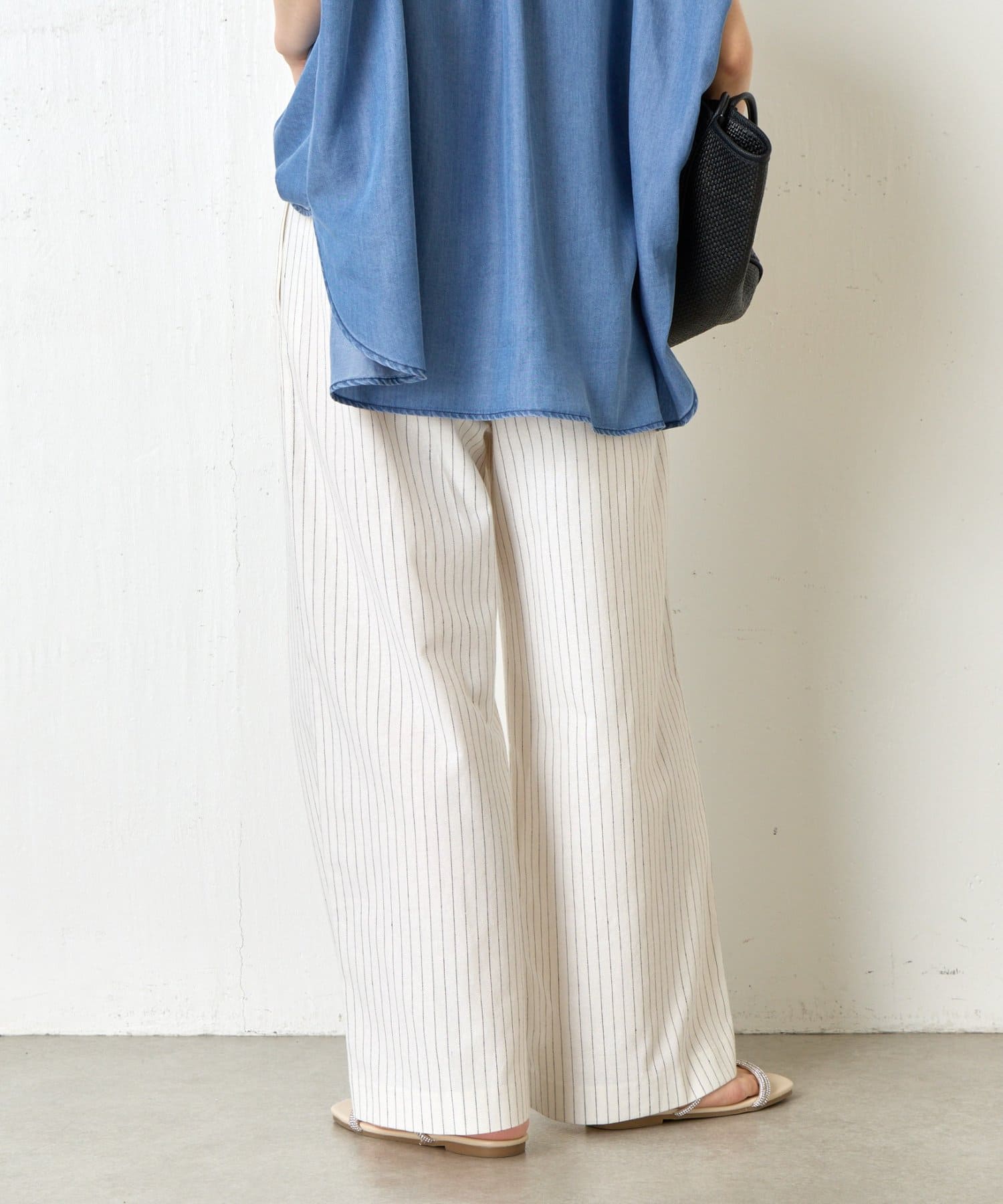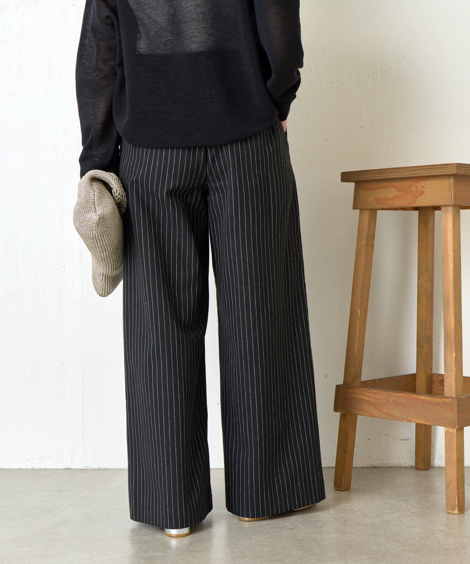・麻が入っているので通気性抜群ながらハリ感がある生地感で、美しいワイドシルエットをキープしてくれます。