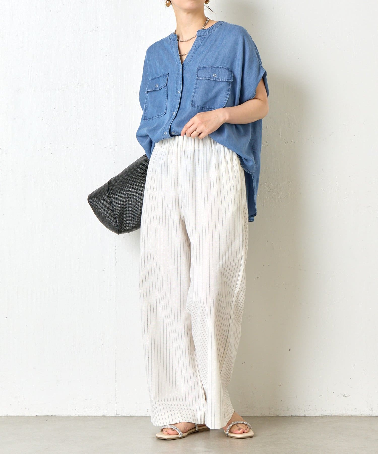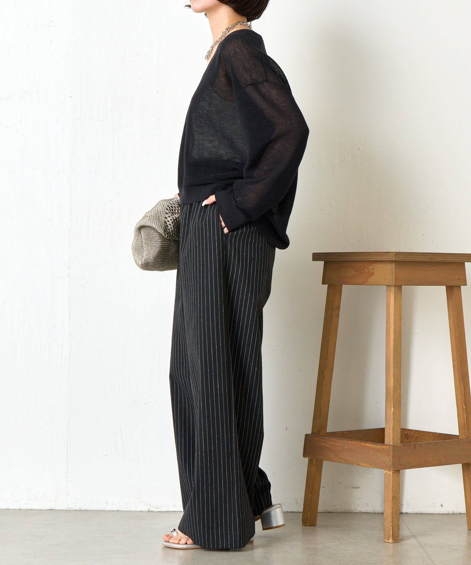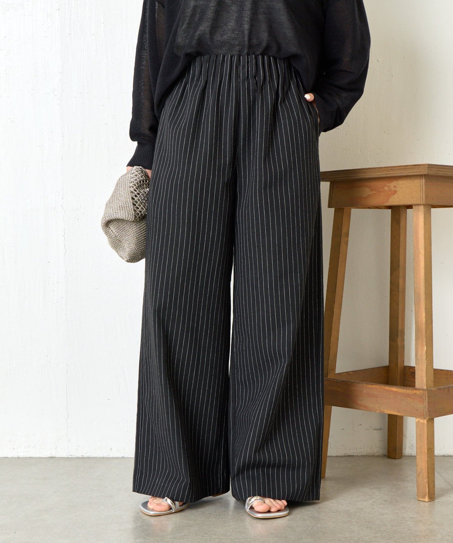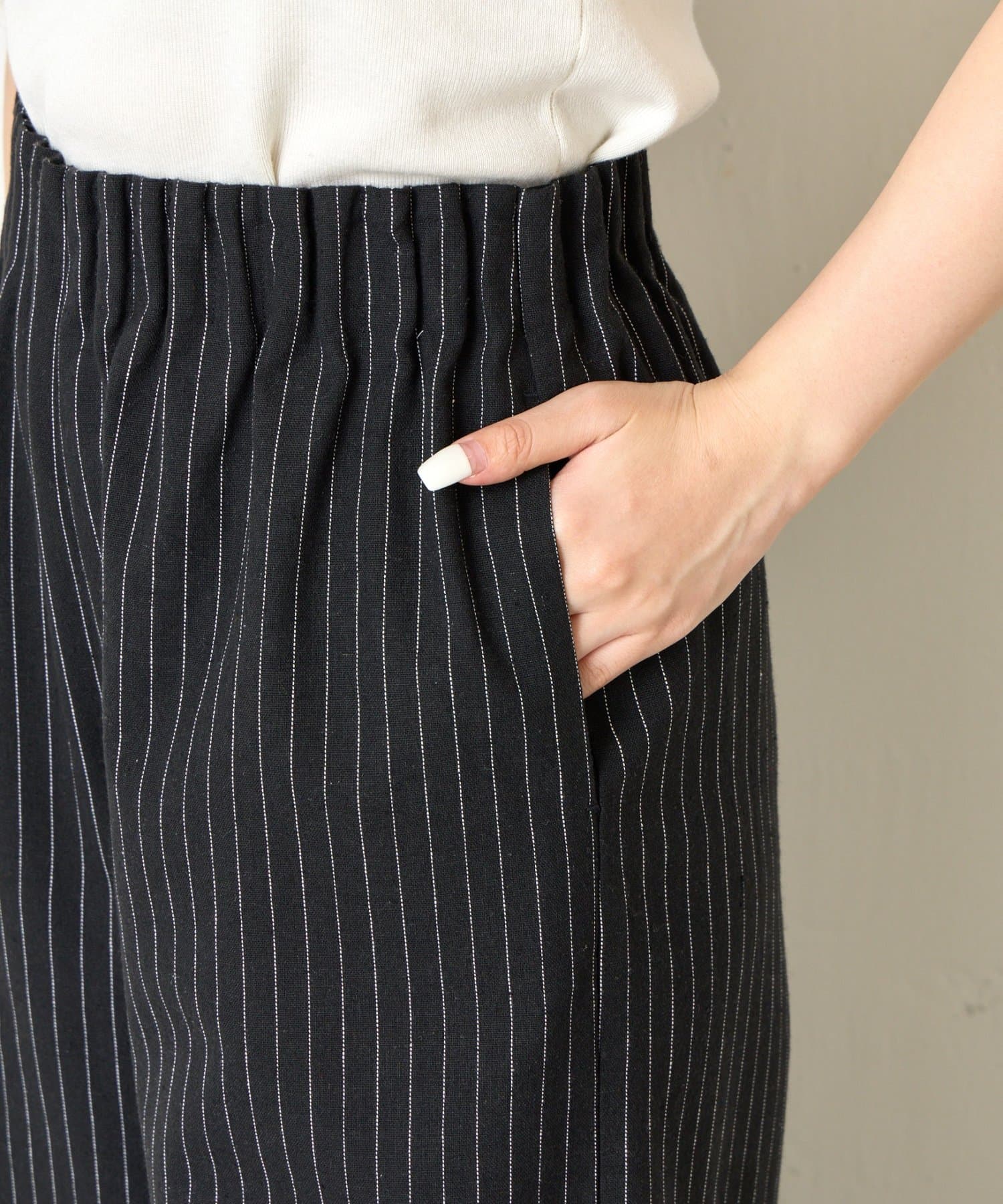 ・麻が入っているので通気性抜群ながらハリ感がある生地感で、美しいワイドシルエットをキープしてくれます。