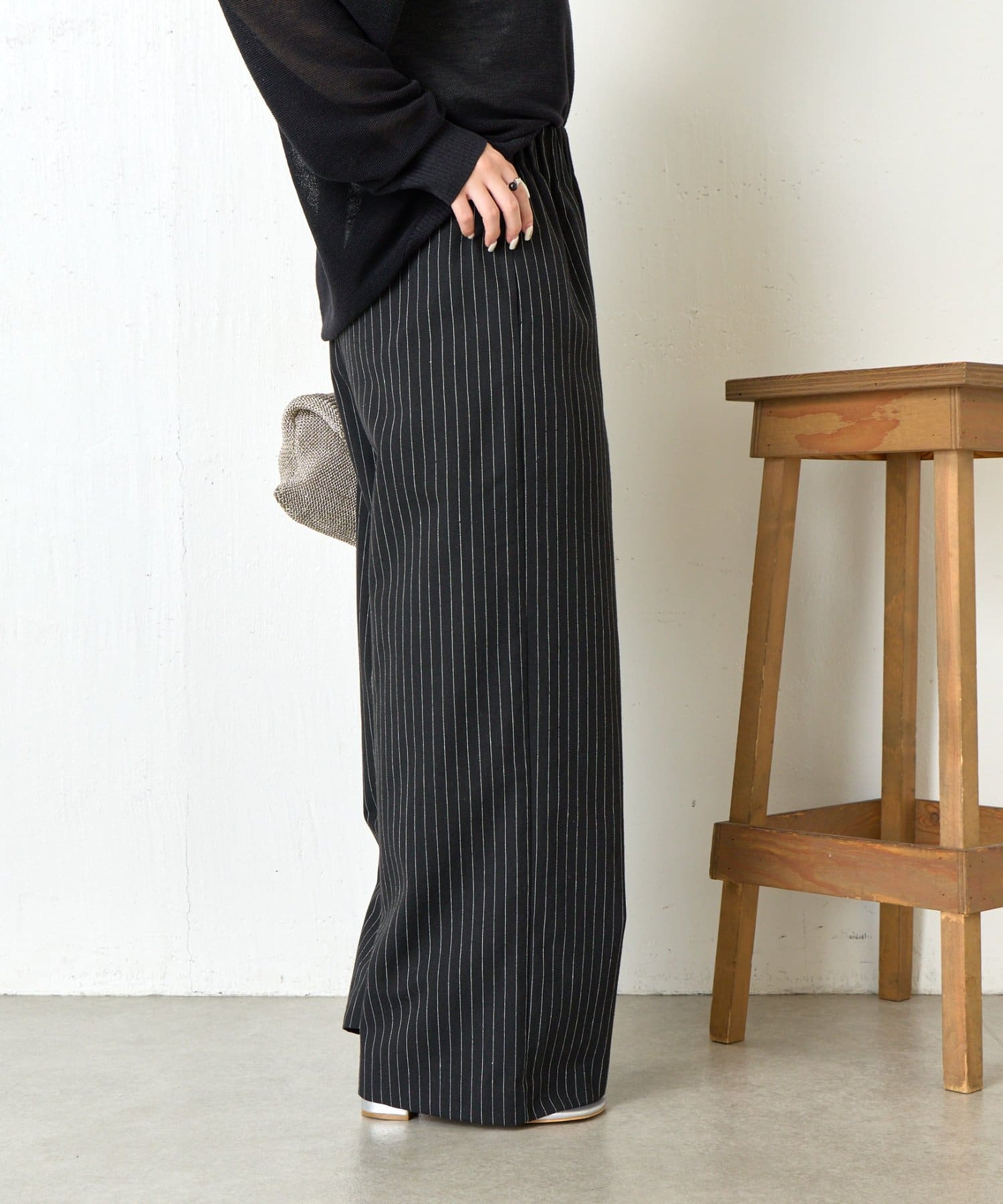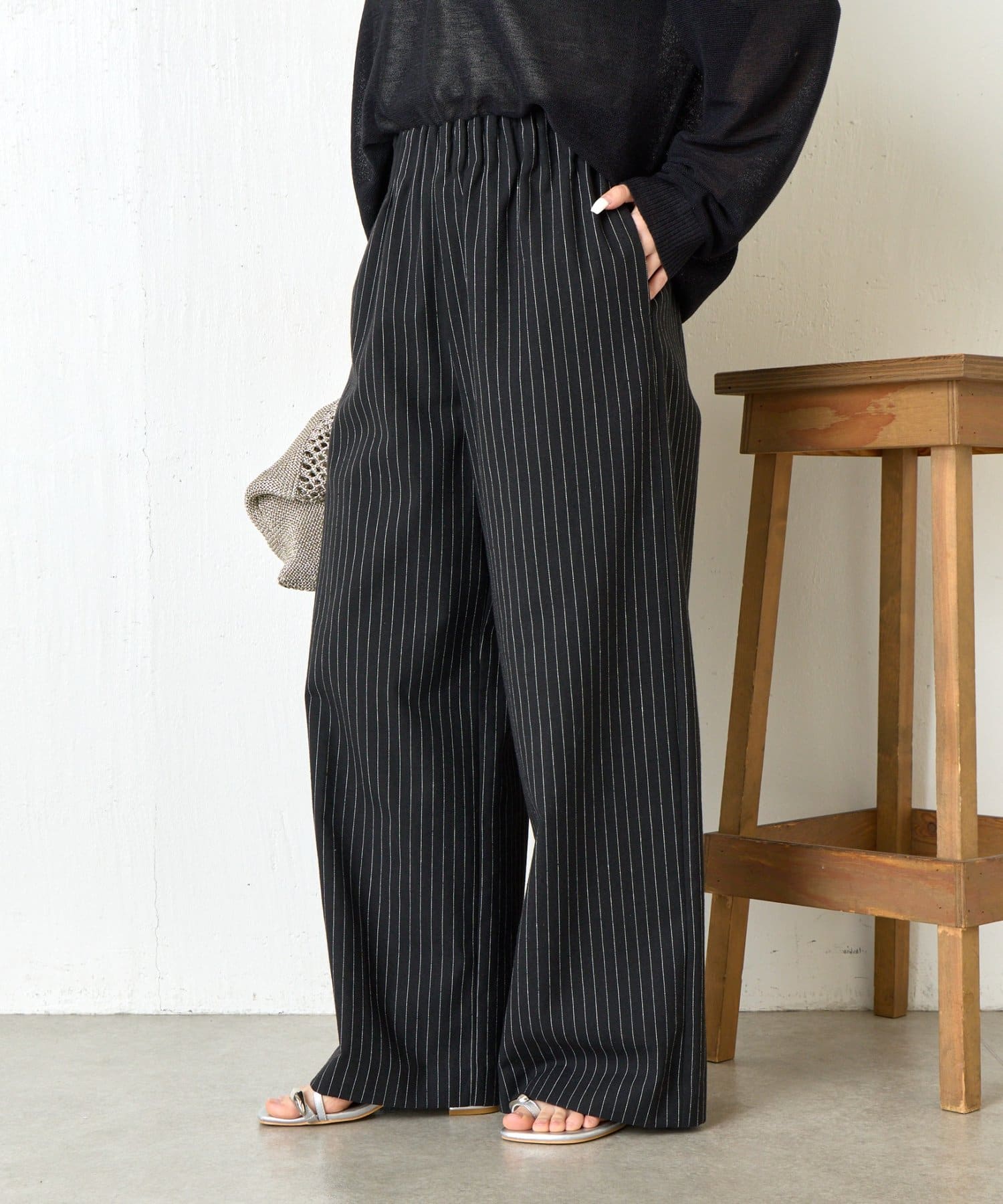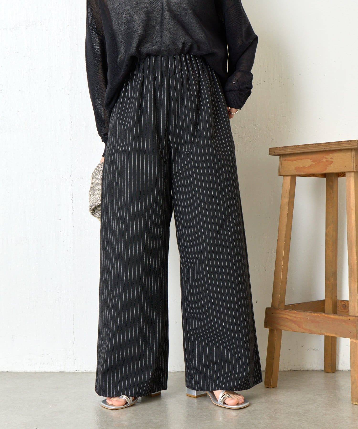 カジュアルになりすぎないバランスが整ったデザインのストライプ柄ワイドパンツ