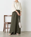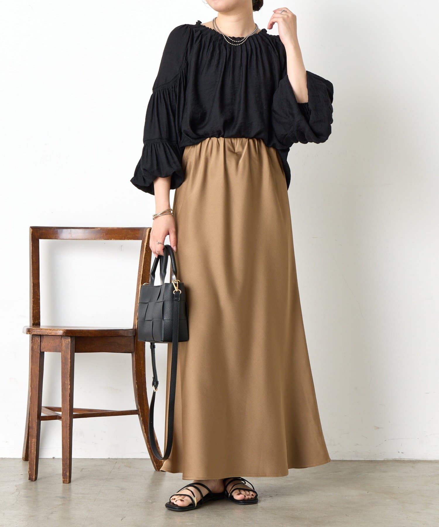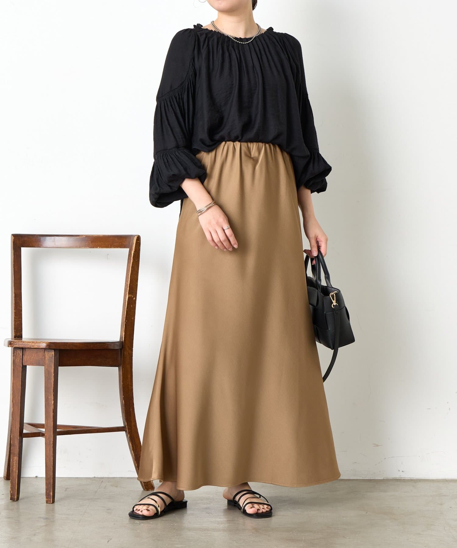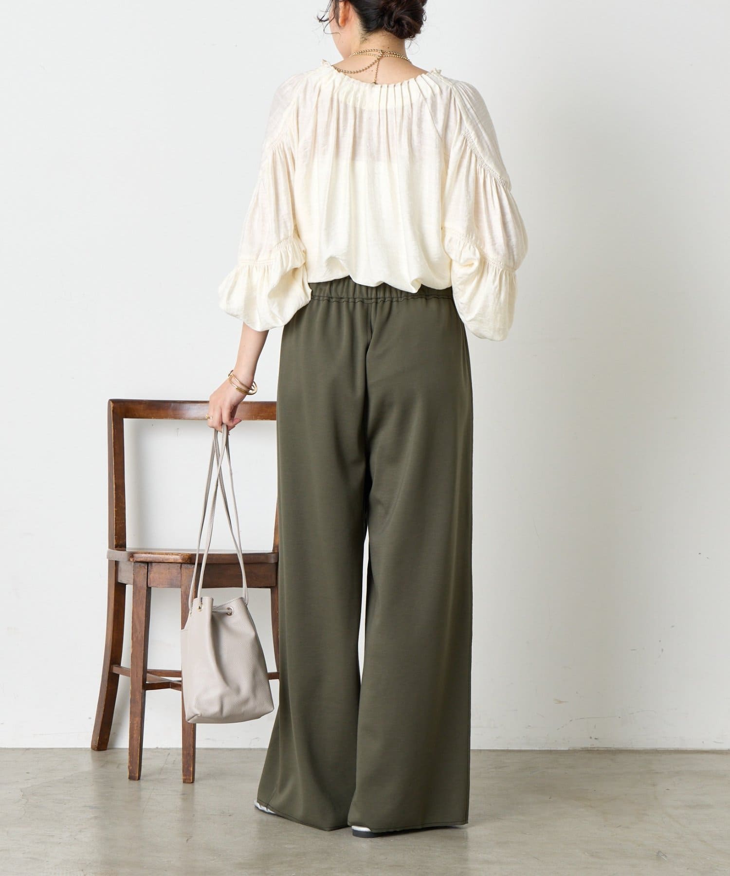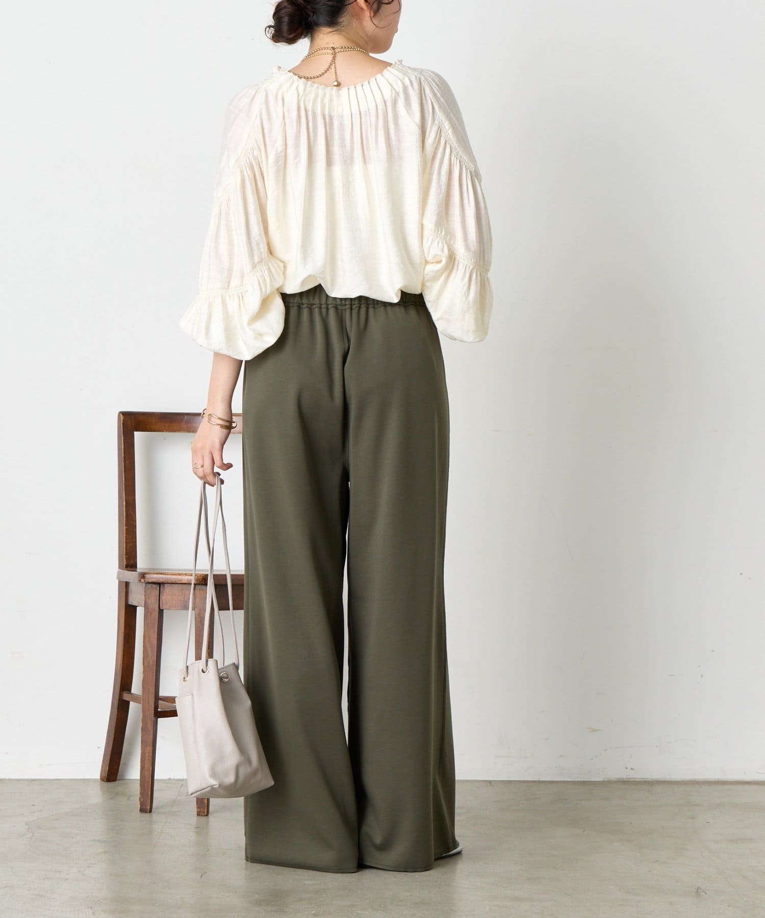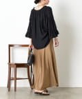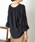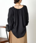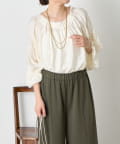 ・軽やかな素材感と、ギャザーでふんわり広がるスリーブが魅力の一枚。