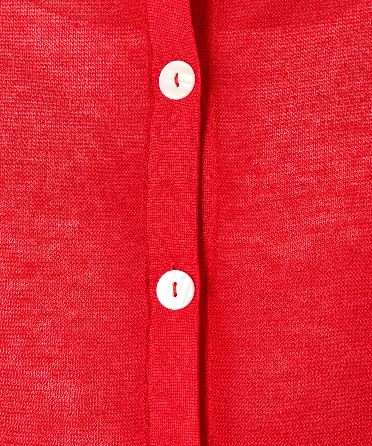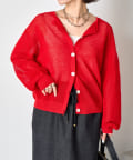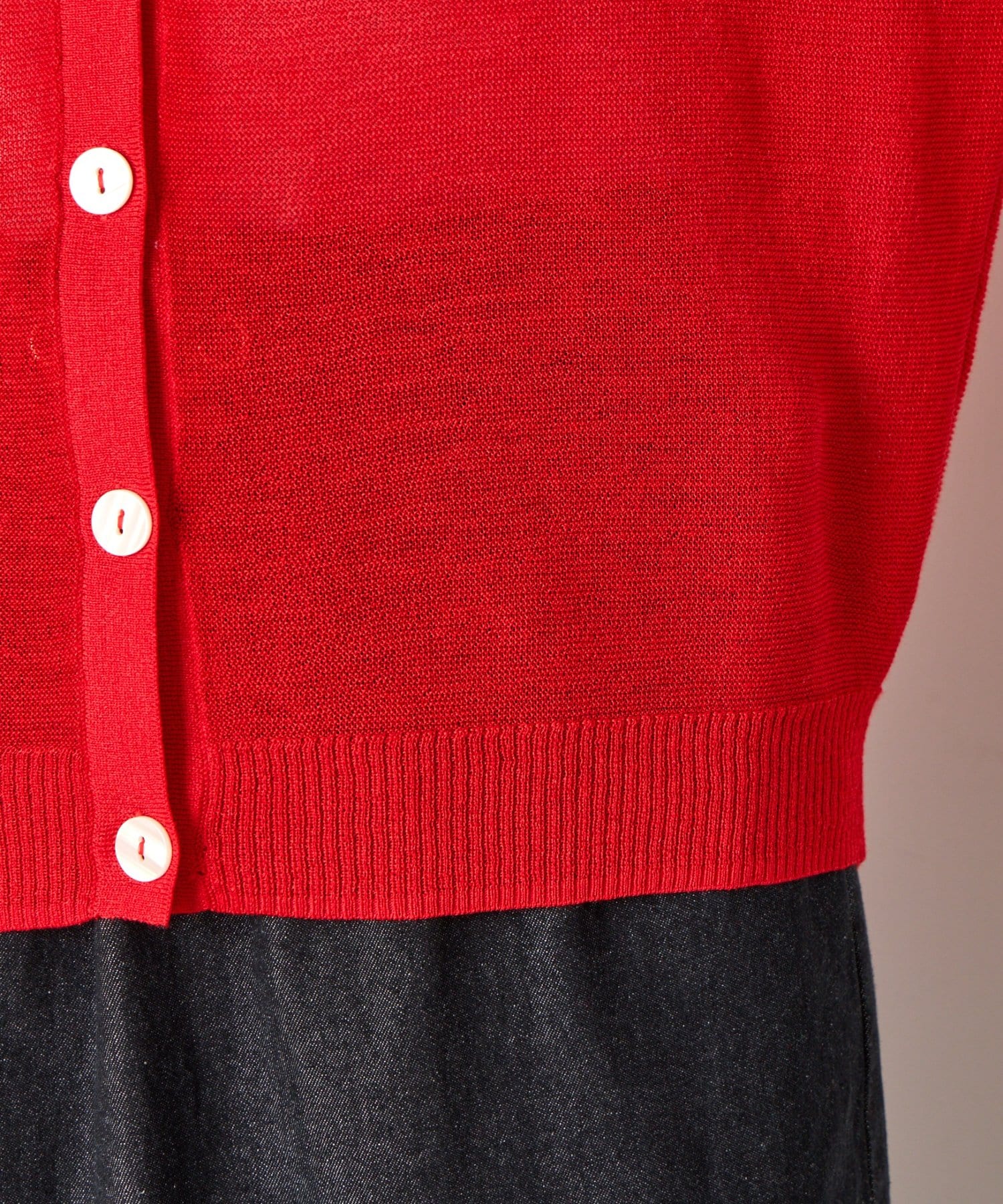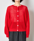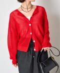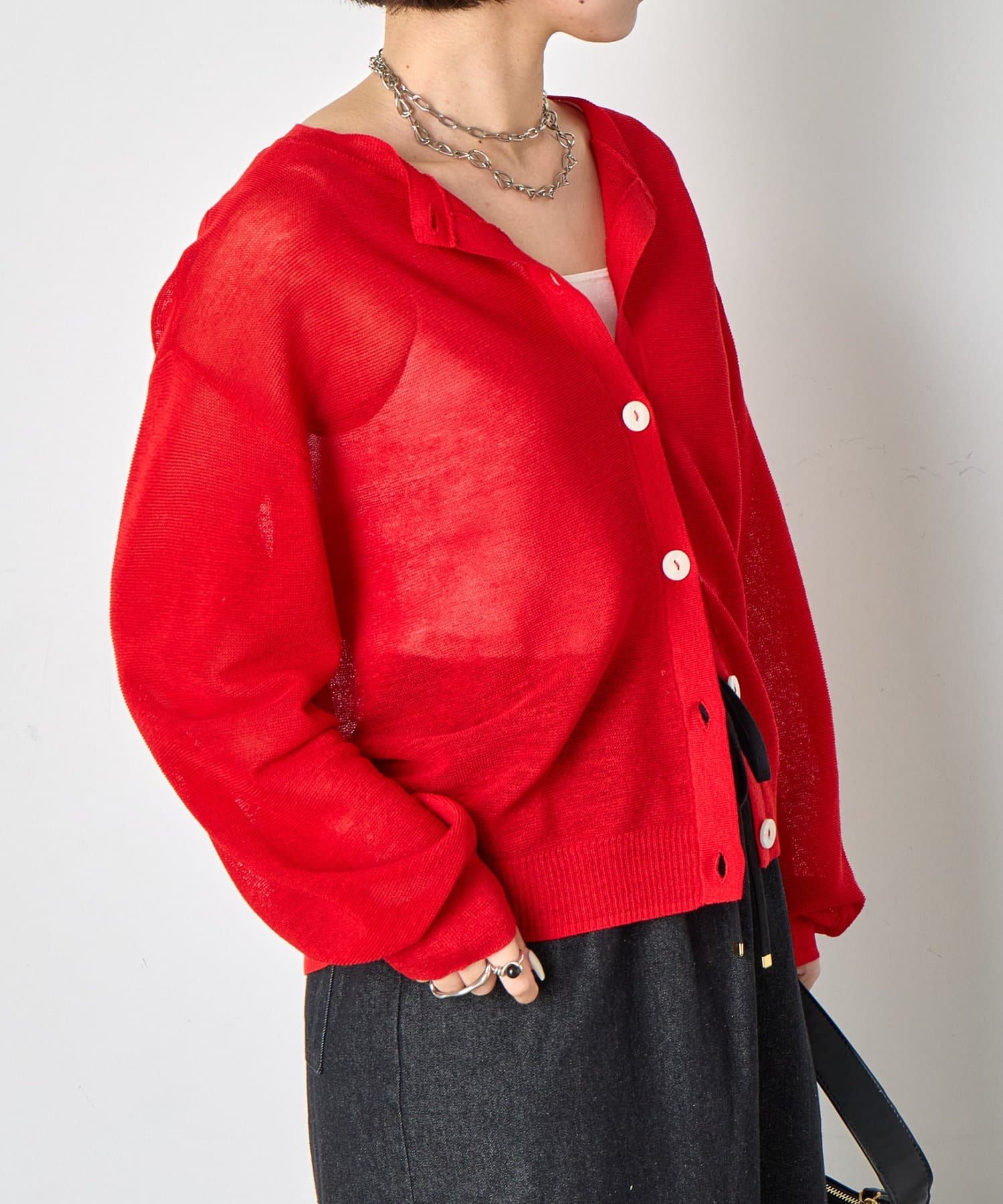 鮮やかなカラーが目を惹く、シアーニットカーディガン。