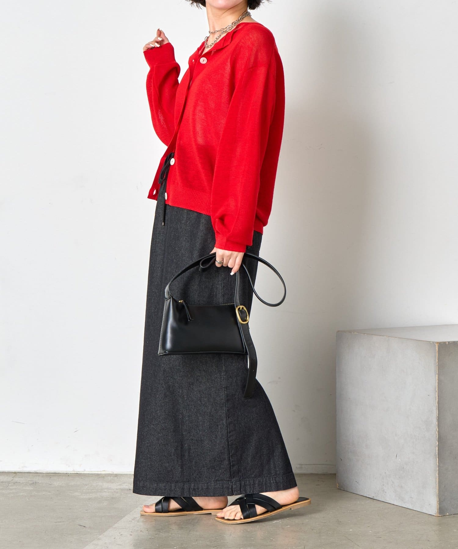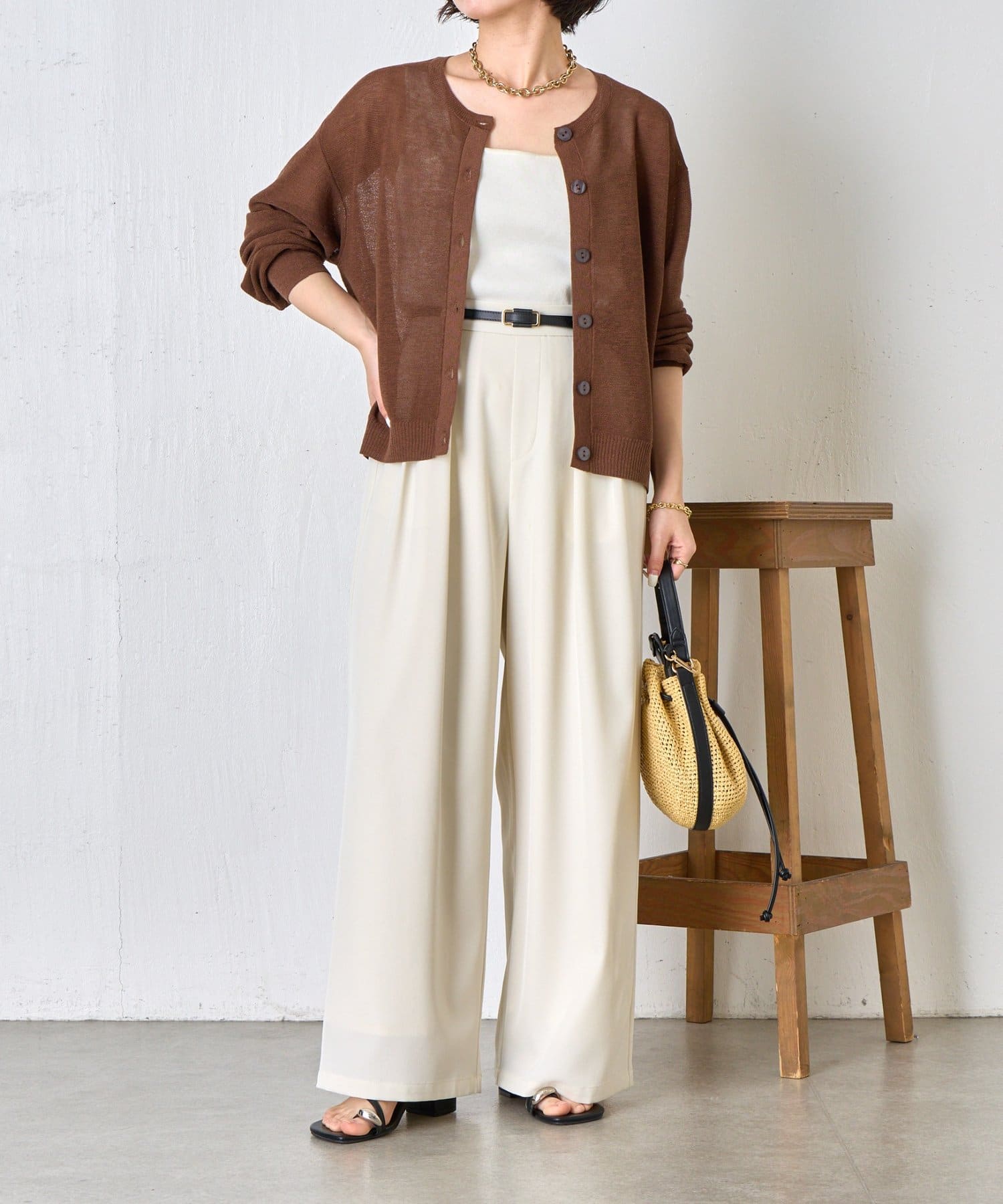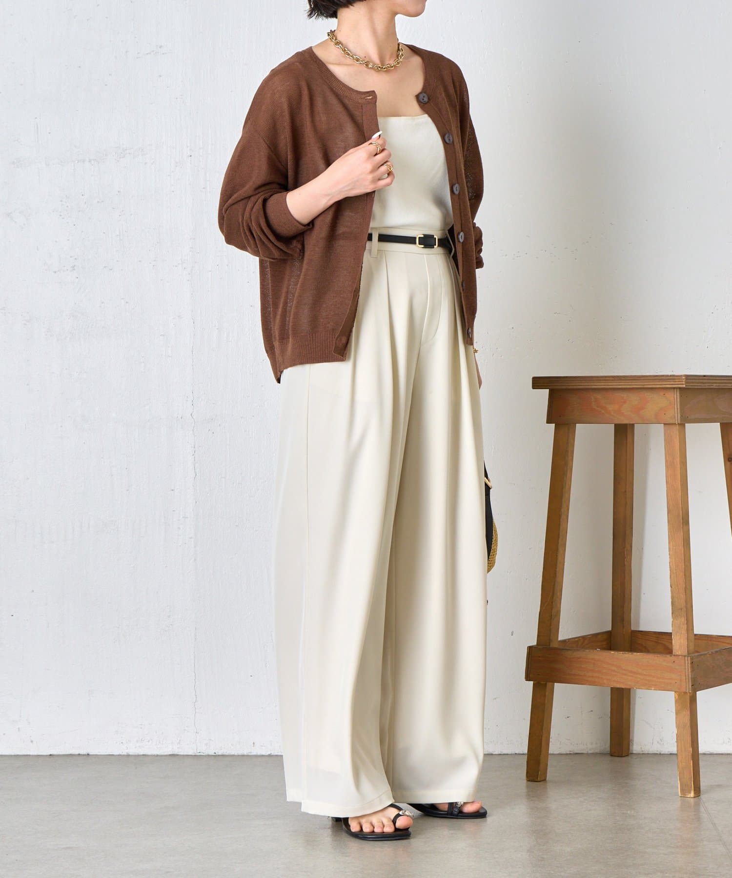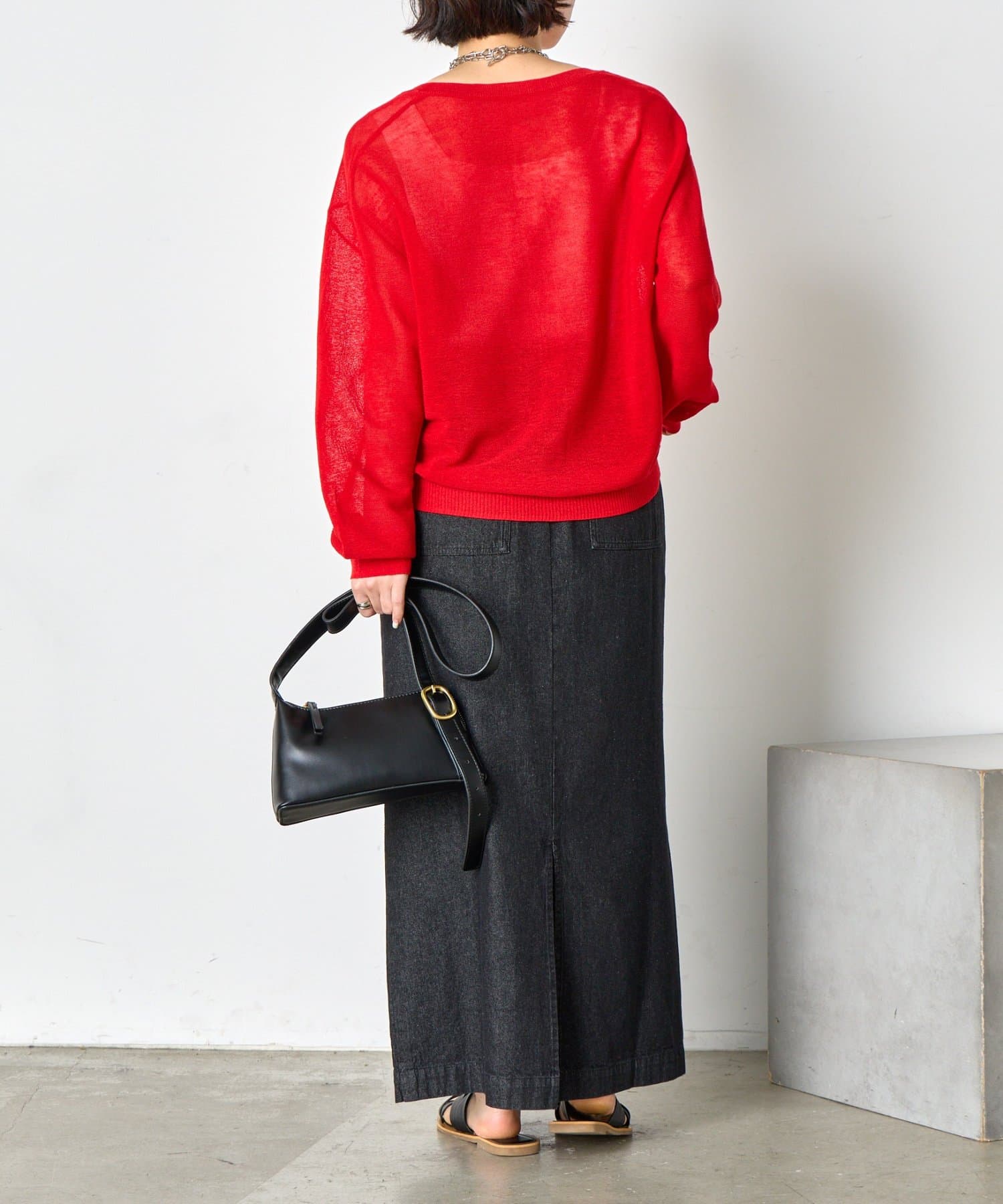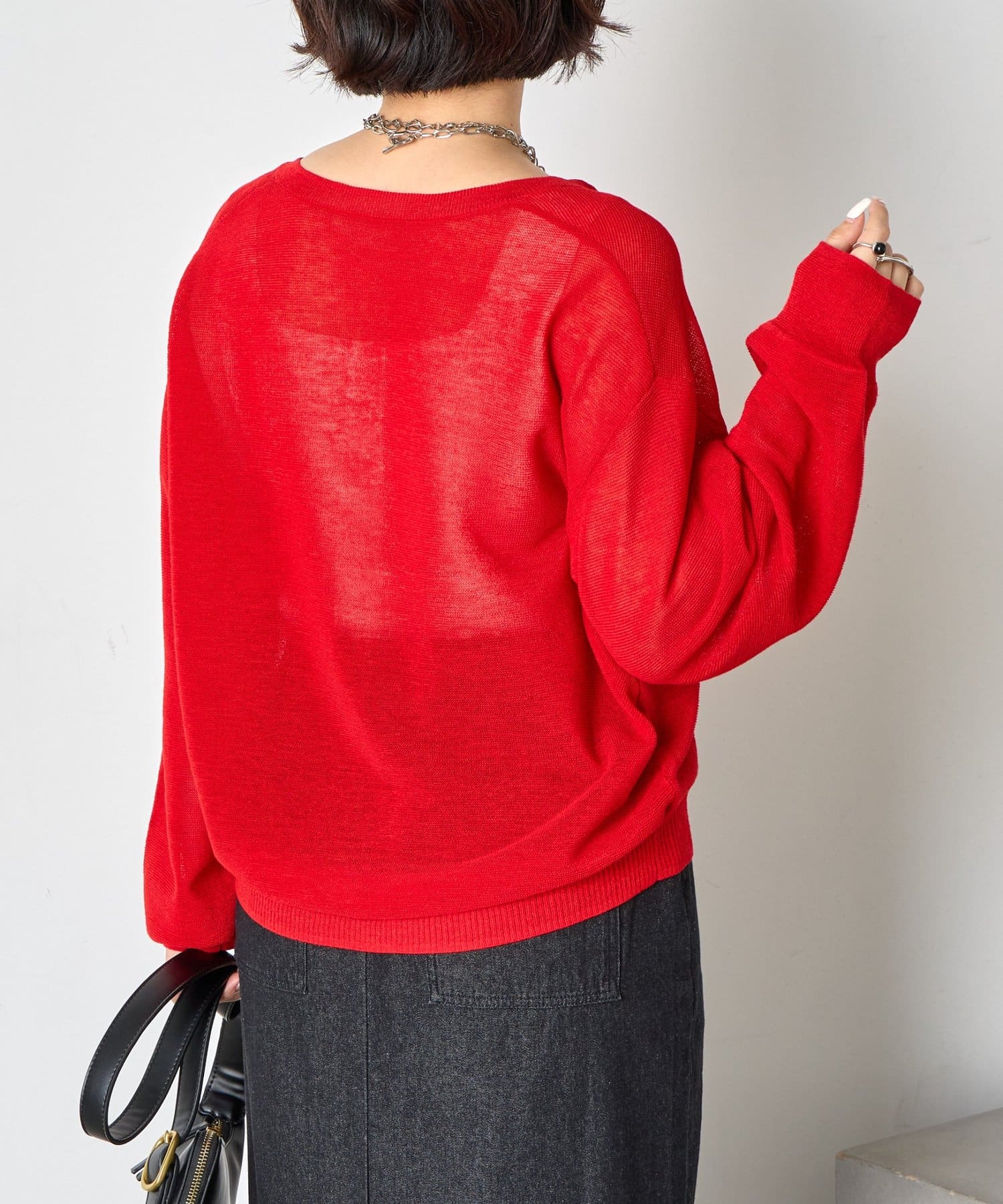 ・軽やかで涼しげな印象に編み上げたややゆったりサイズのシアーカーディガン。
