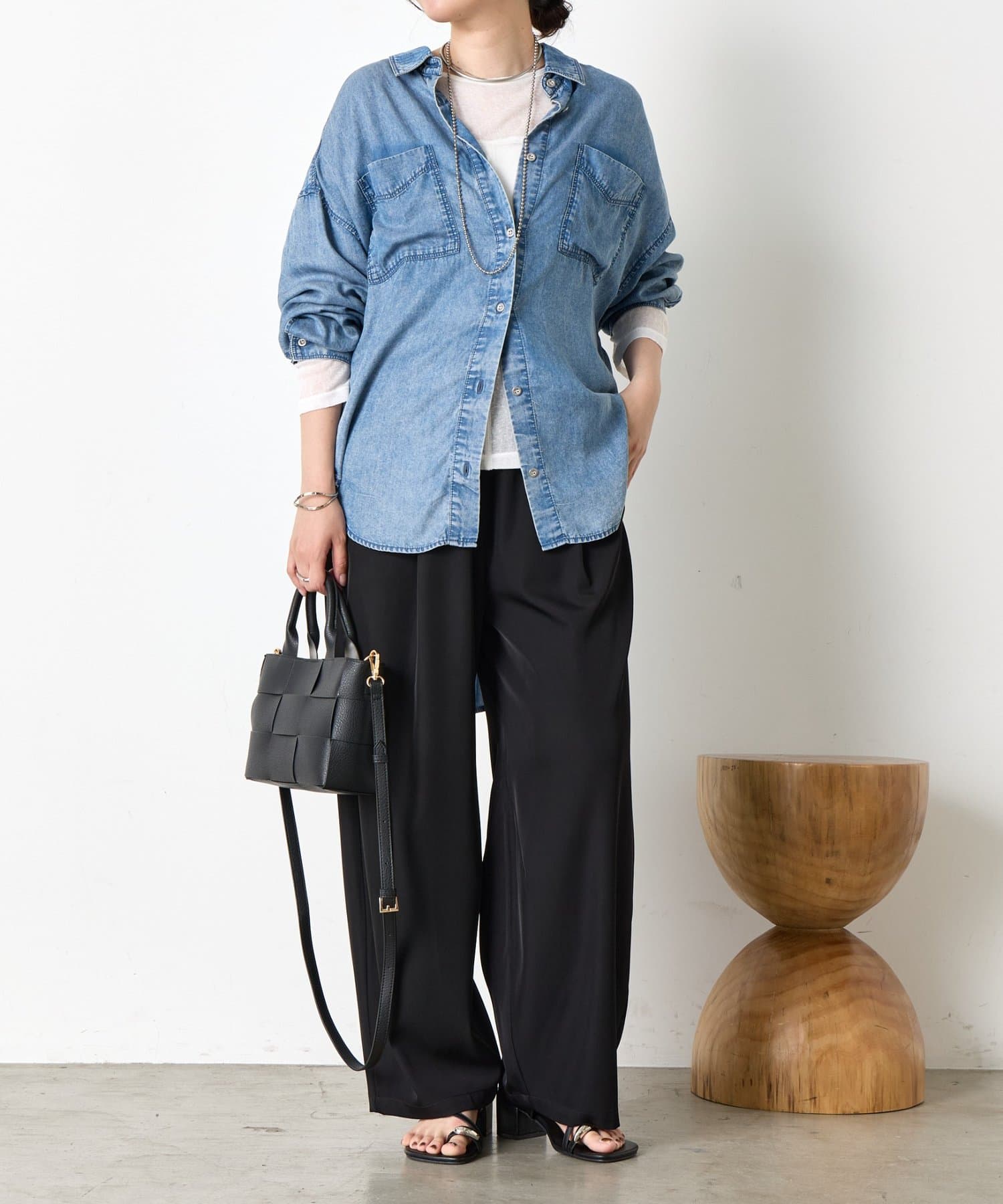・表面感のある素材でシンプルすぎずスタイリングのアクセントになるシアーカットソー。