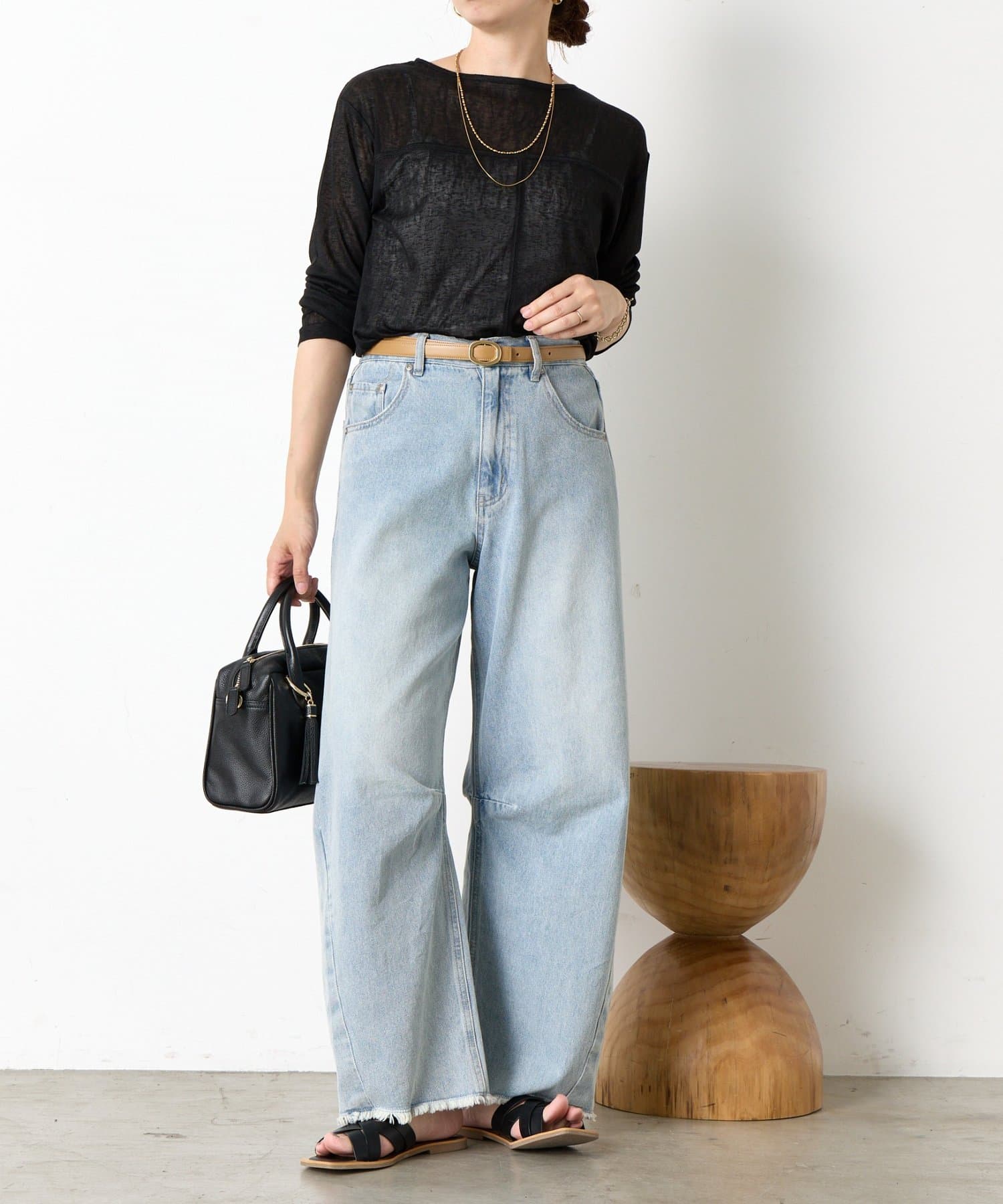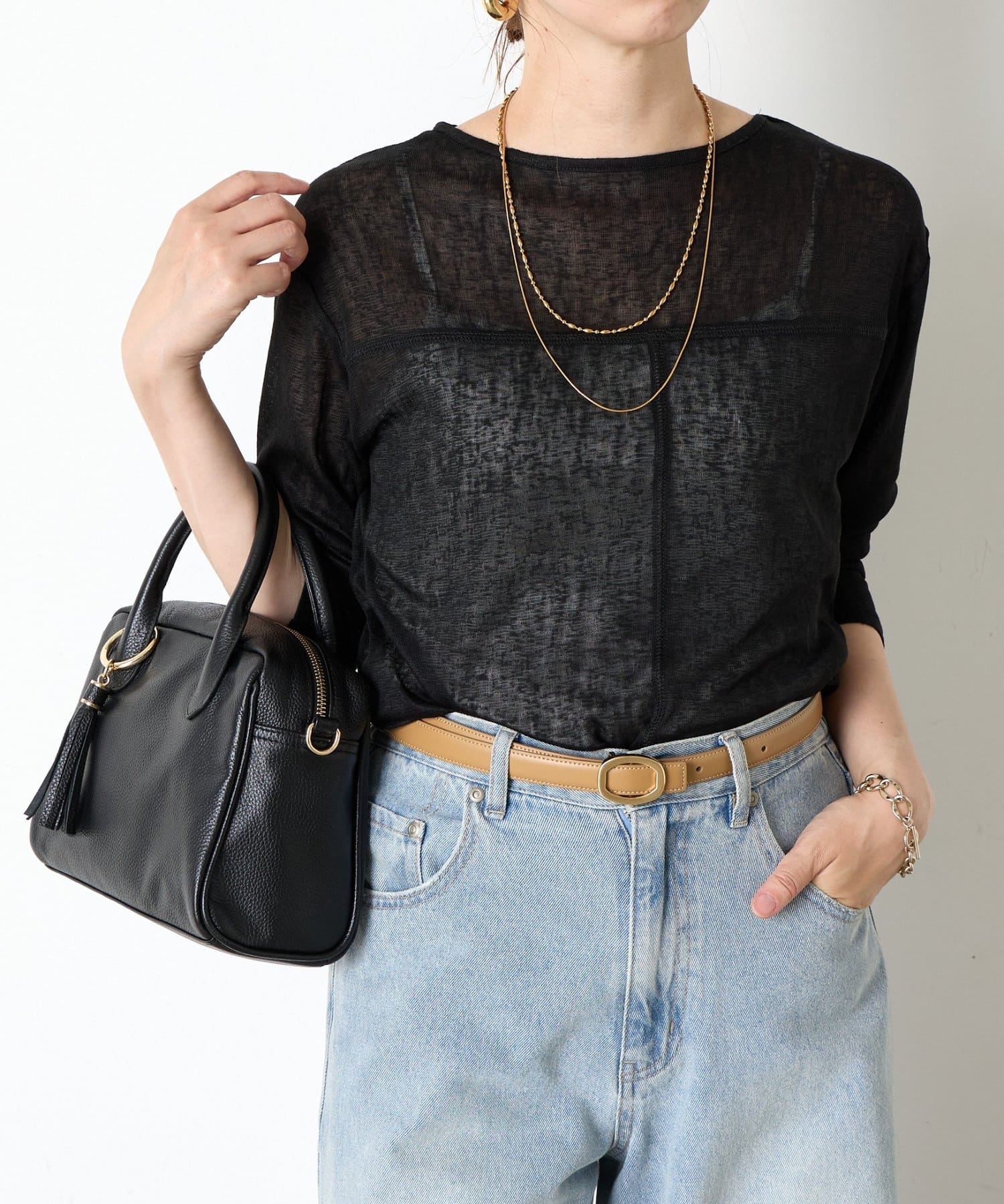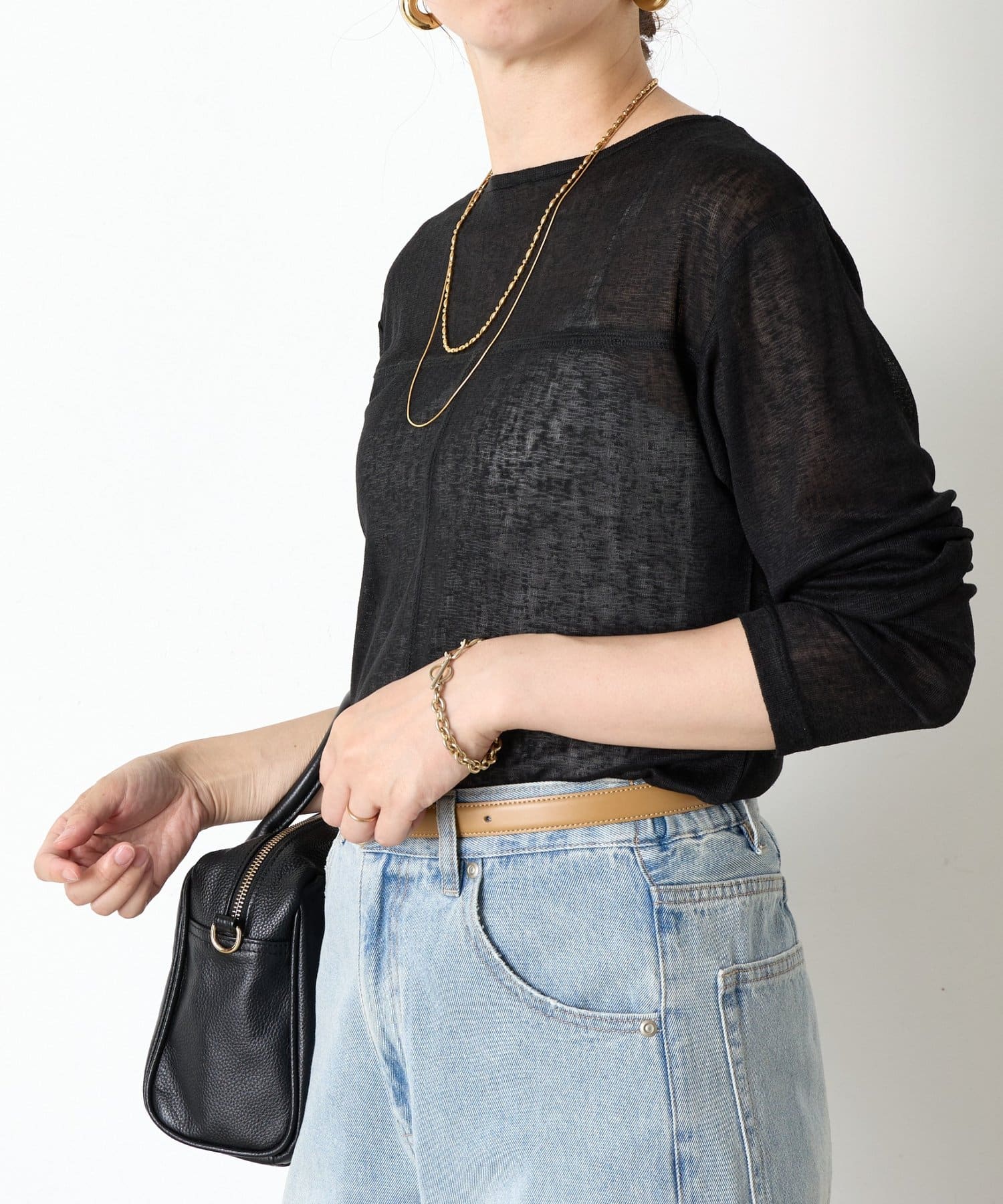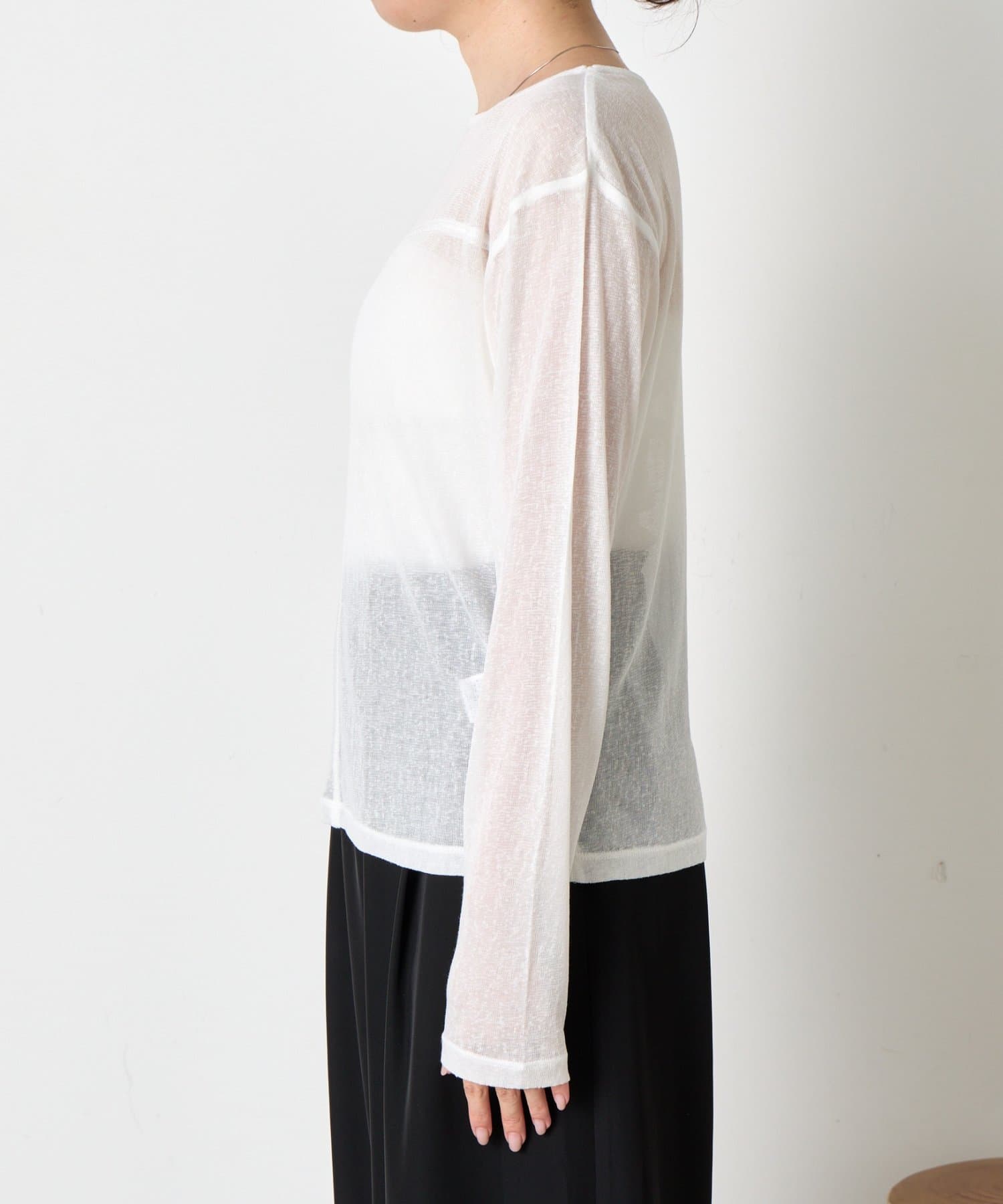 ・程よく透け感のある生地で夏でもコーディネートに取り入れやすい長袖トップス。