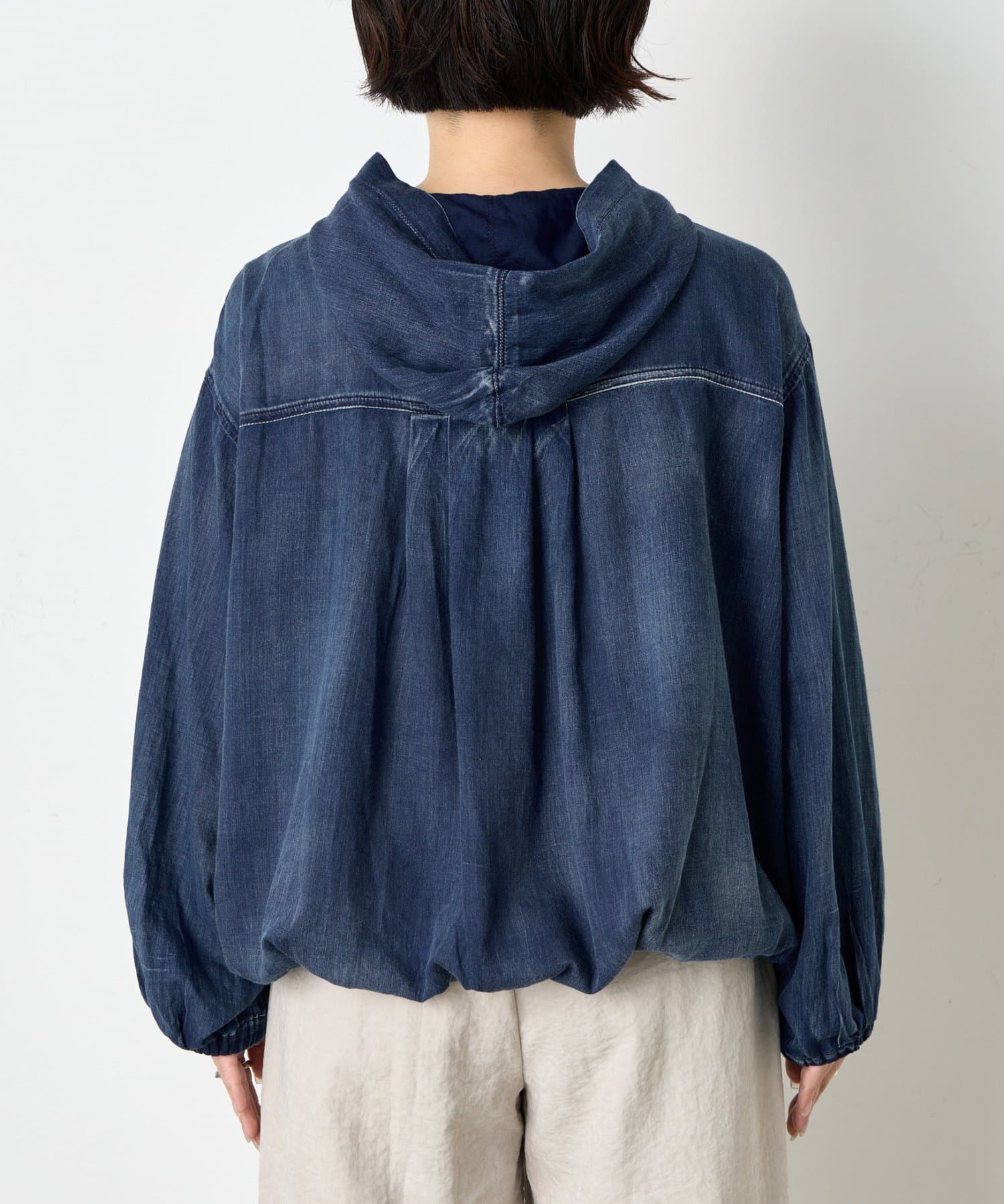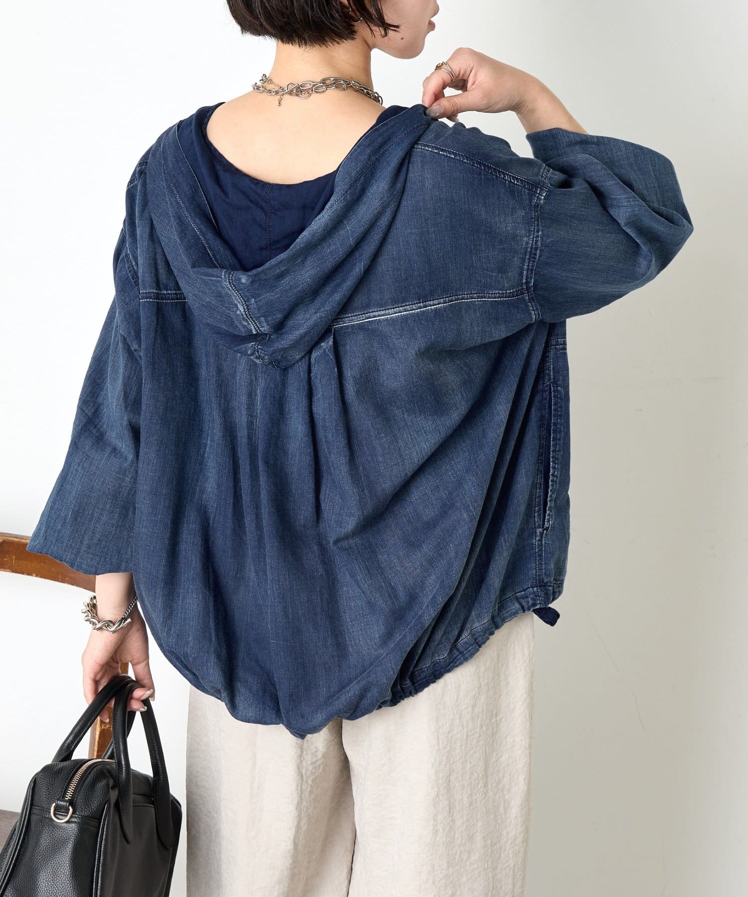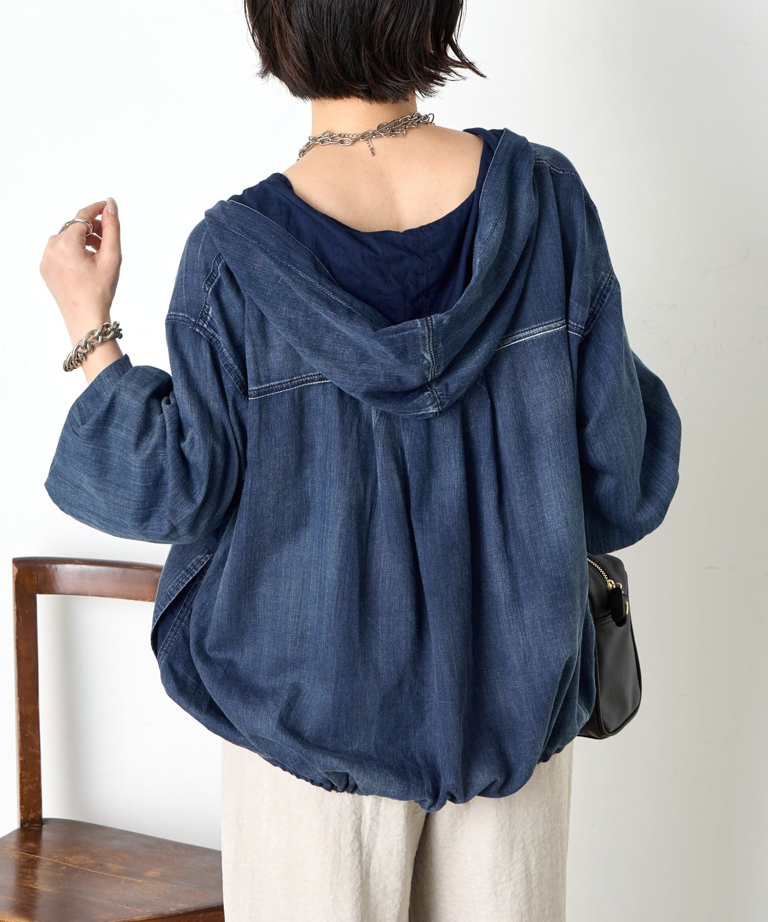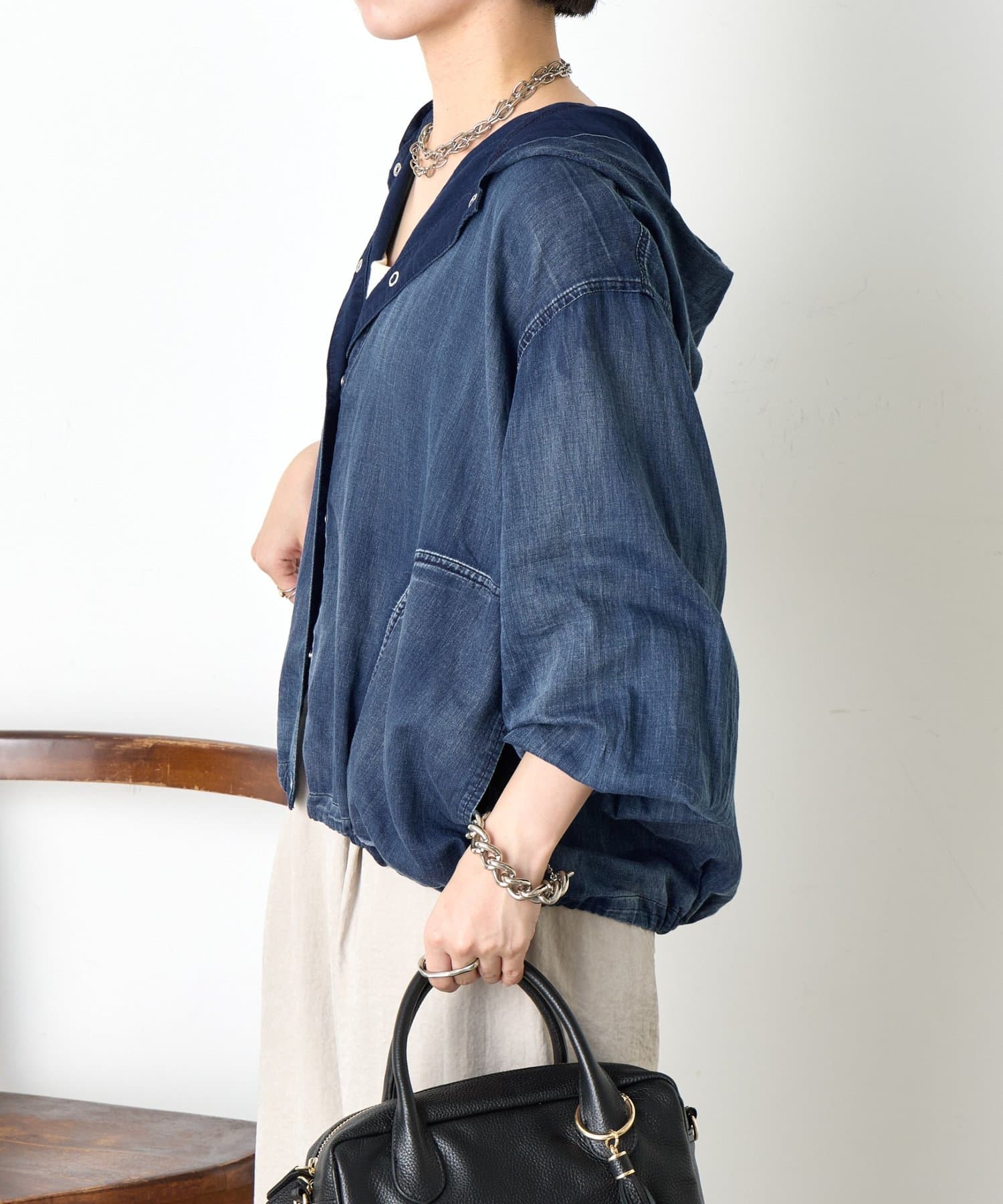 ・カジュアルと大人のこなれ感を絶妙に融合させた、デニムライクなフーディーブルゾン。
