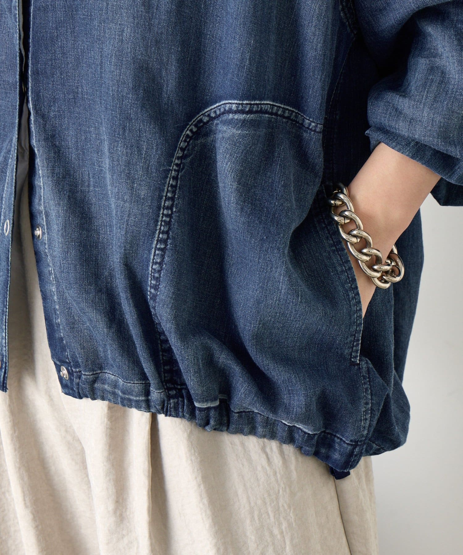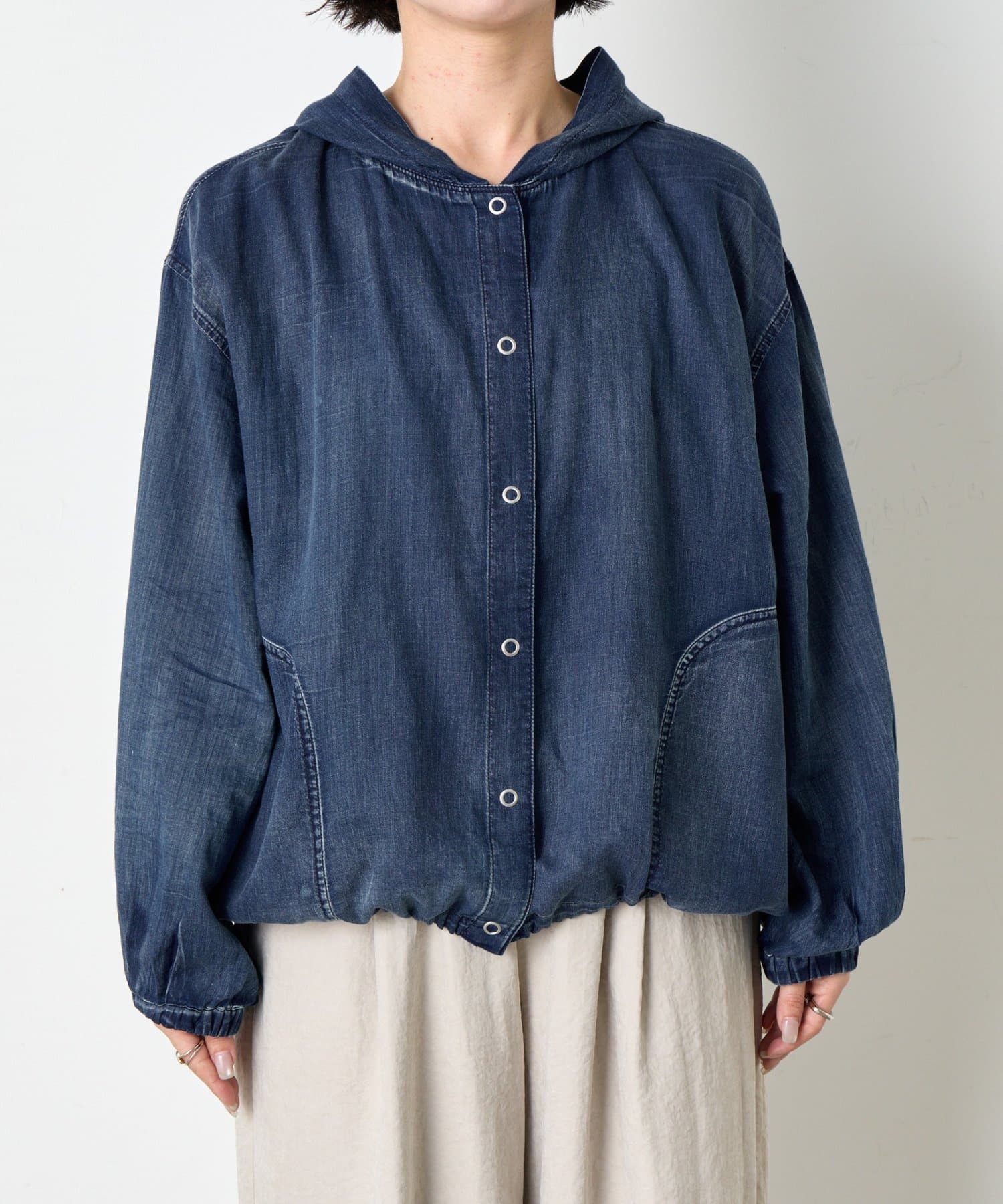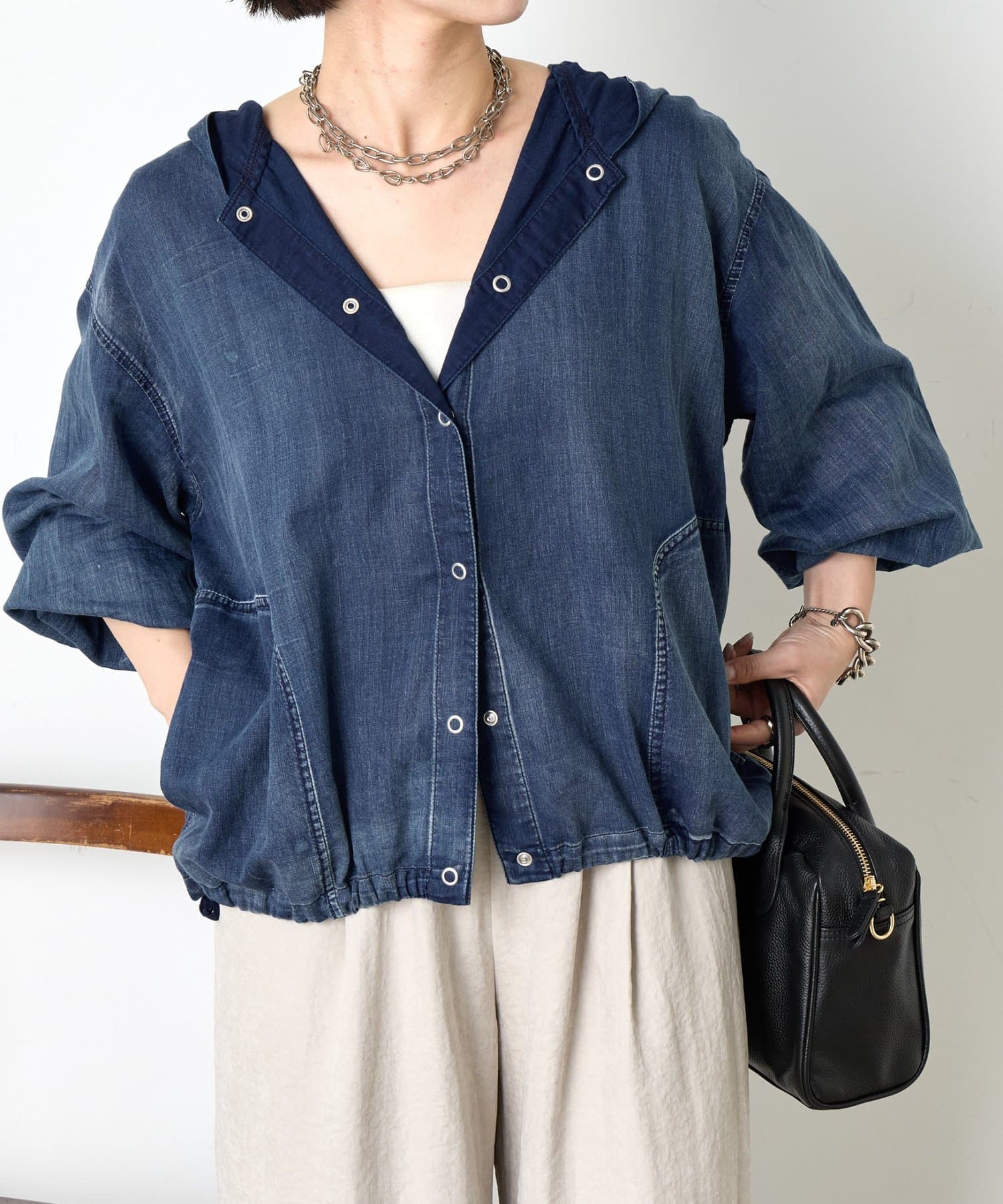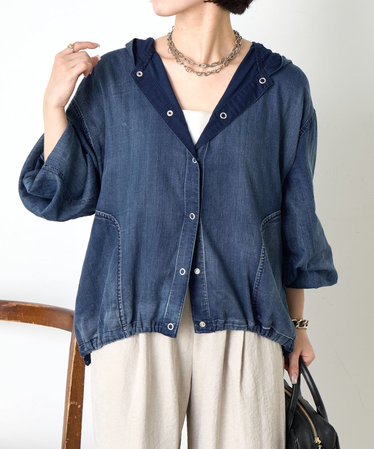・カジュアルと大人のこなれ感を絶妙に融合させた、デニムライクなフーディーブルゾン。