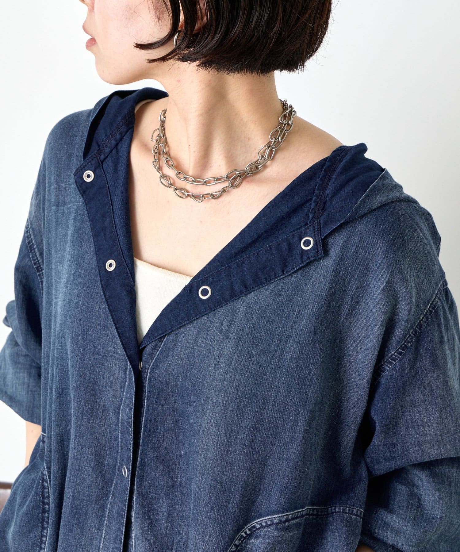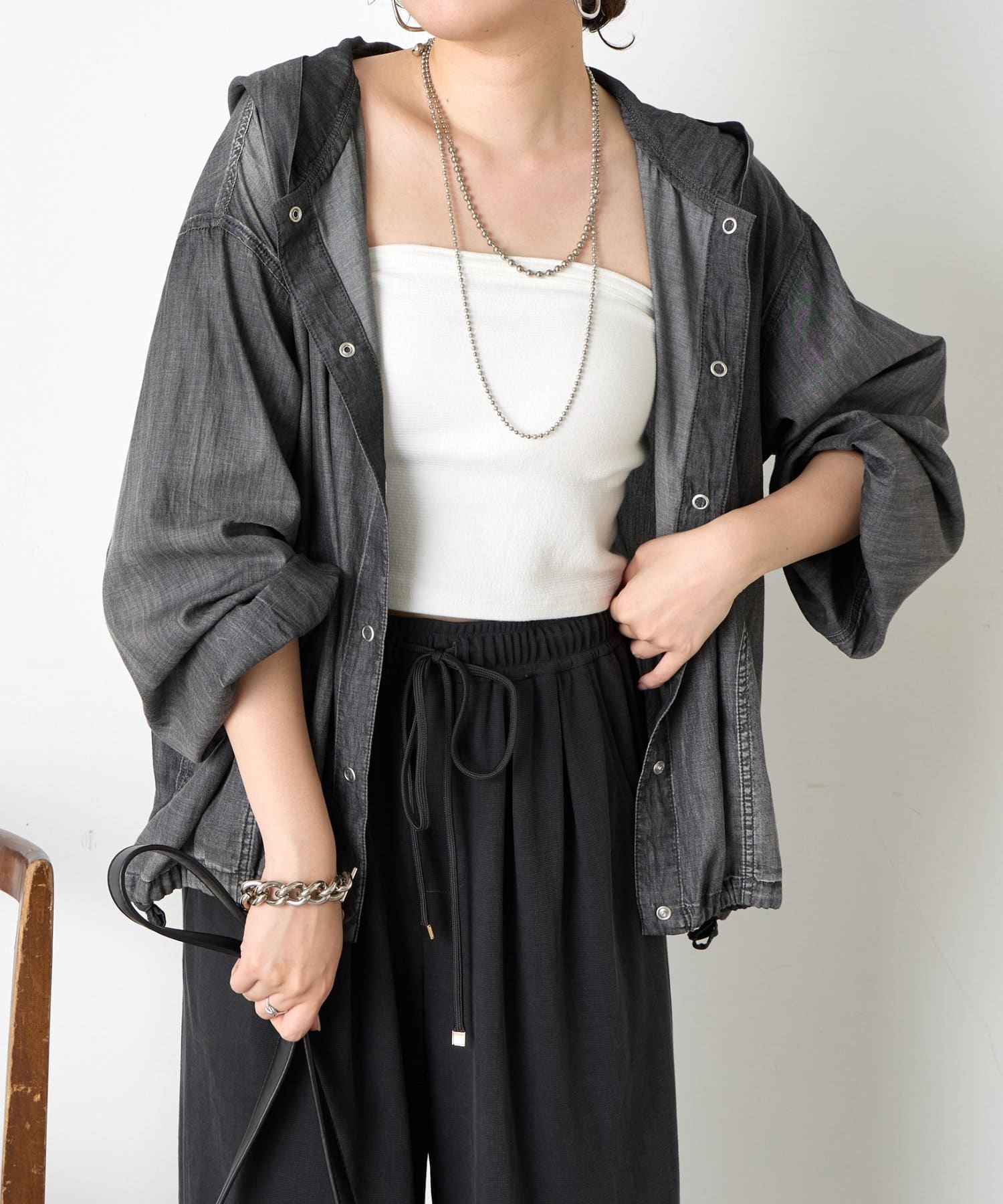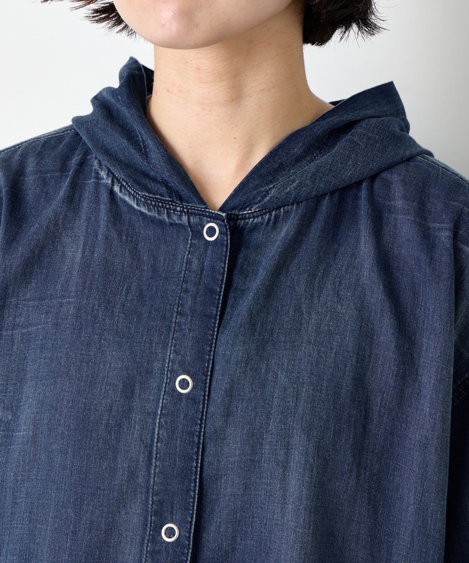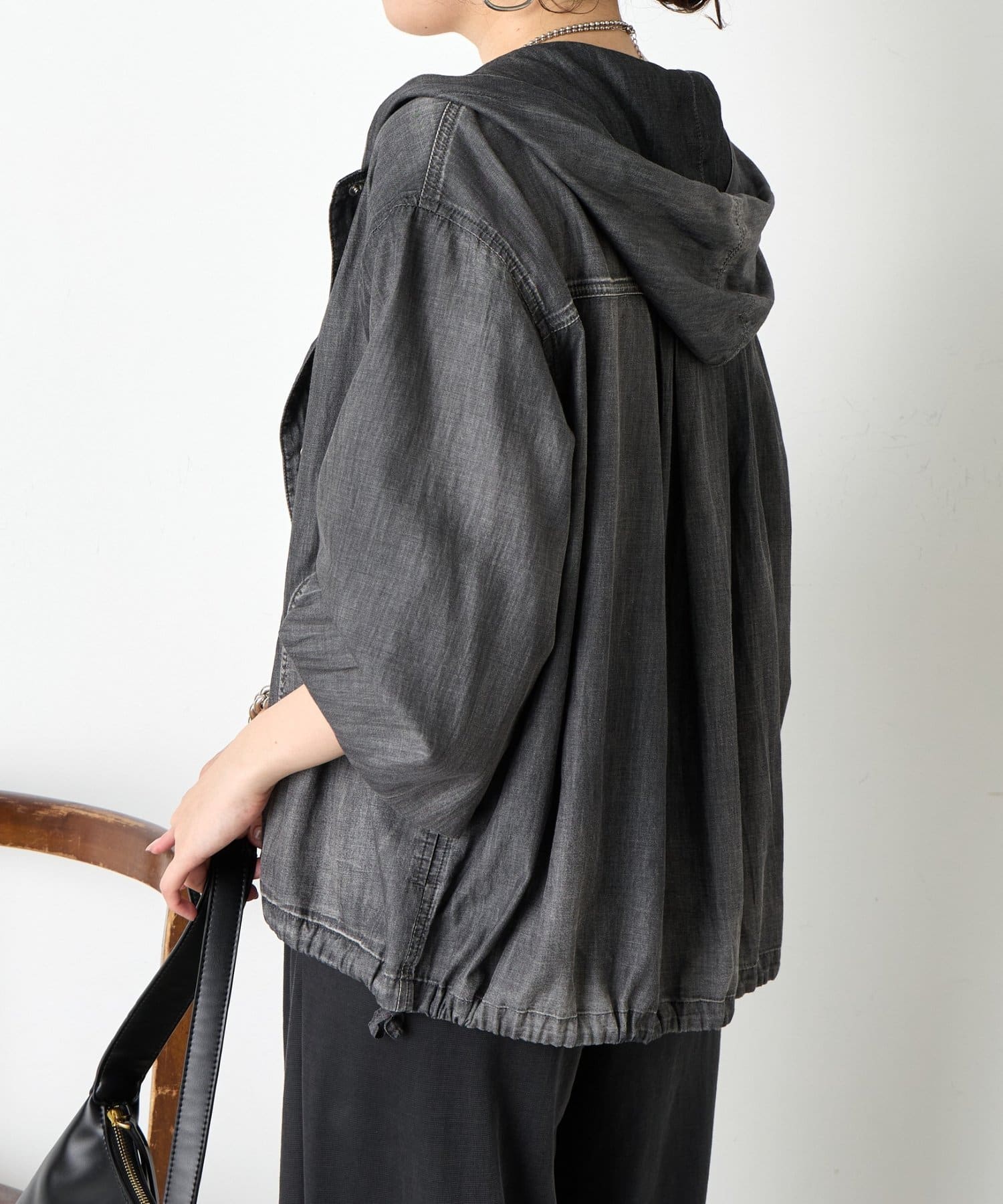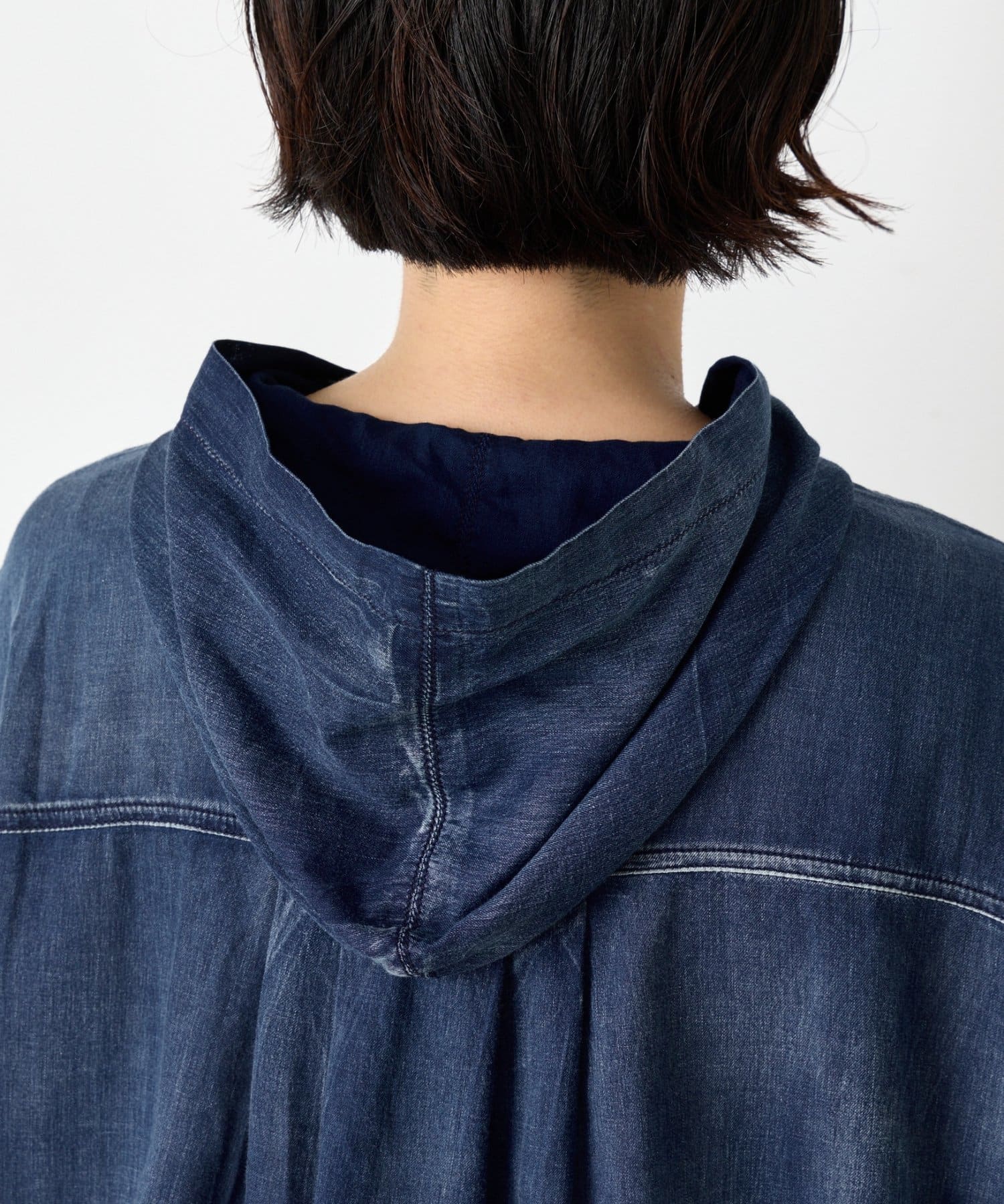 フード付きシアーデニムジャケット