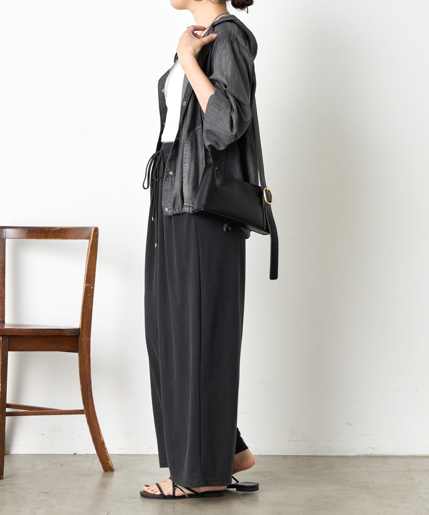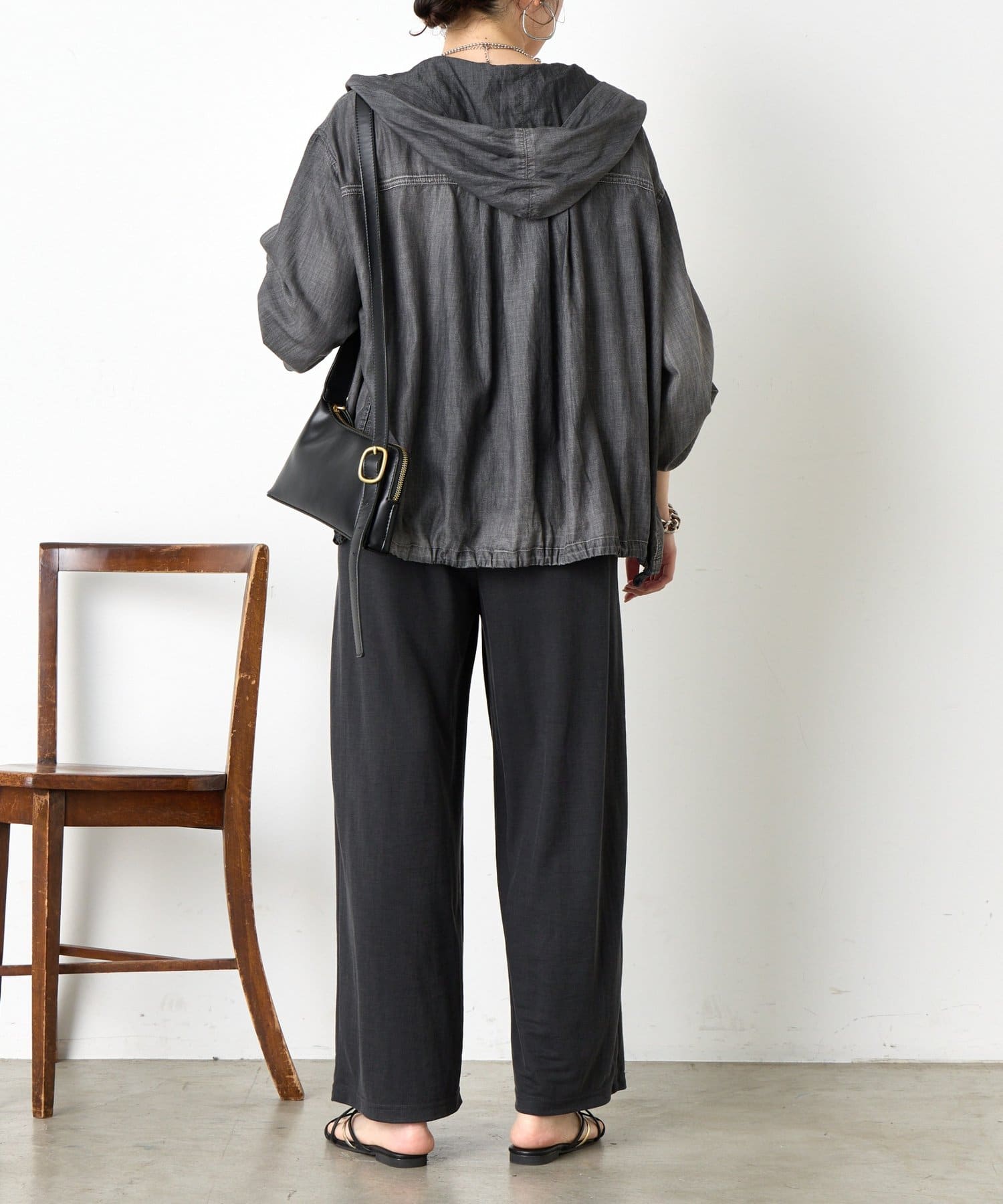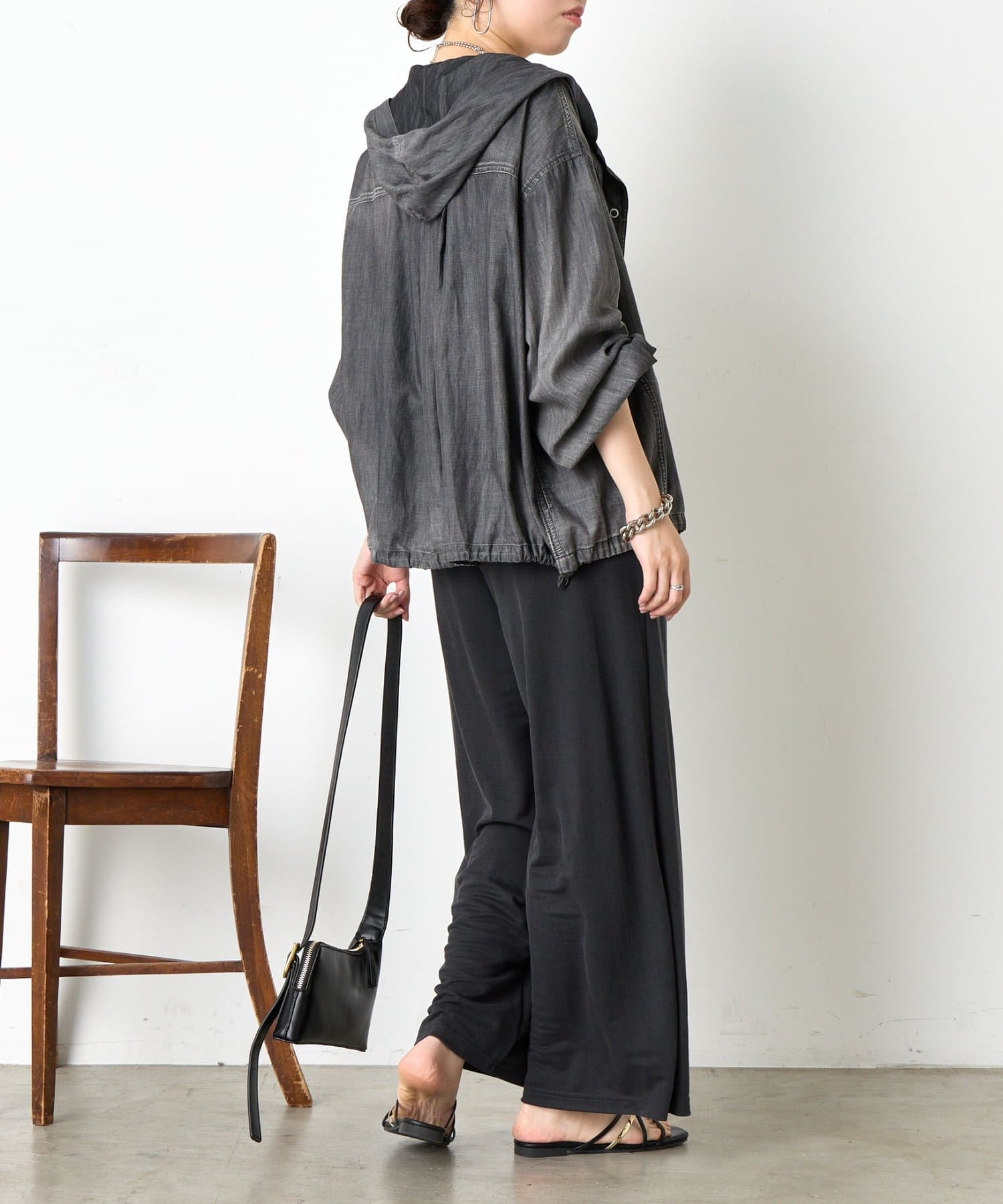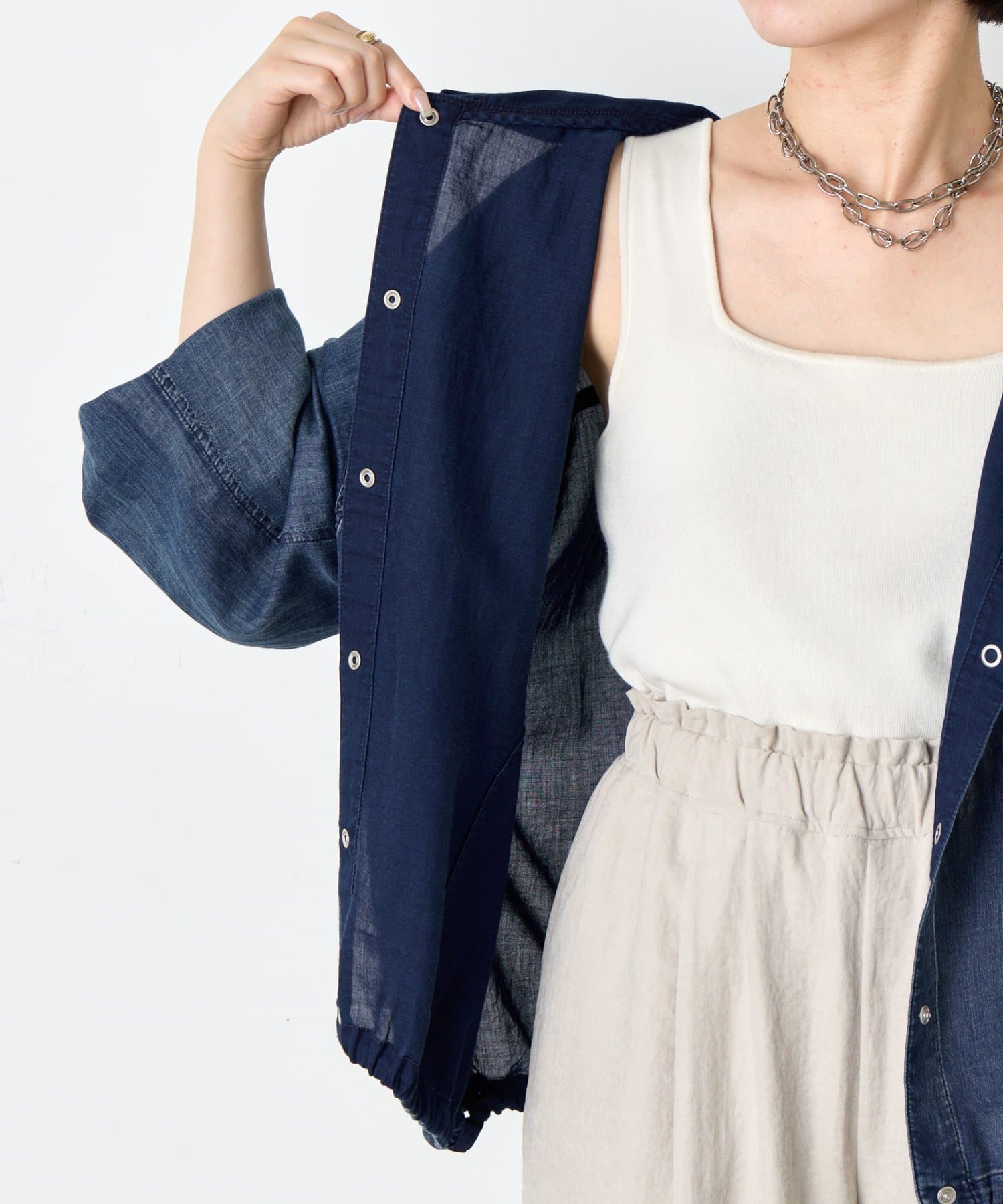 ・アームや身幅にゆとりがあるため、重ね着もラクにでき、季節の変わり目にも大活躍。インナーにはタンクトップやシンプルなカットソーを合わせるだけで、こなれたスタイルが完成します。