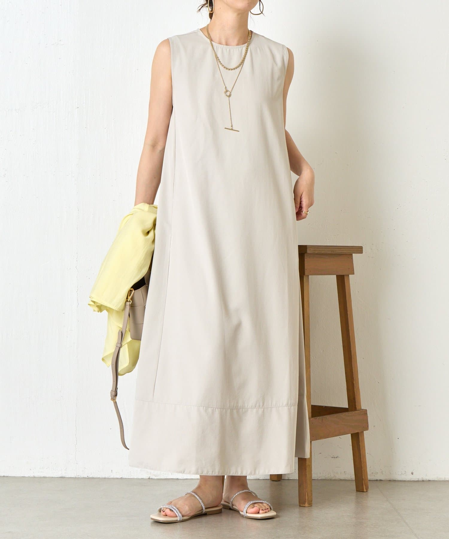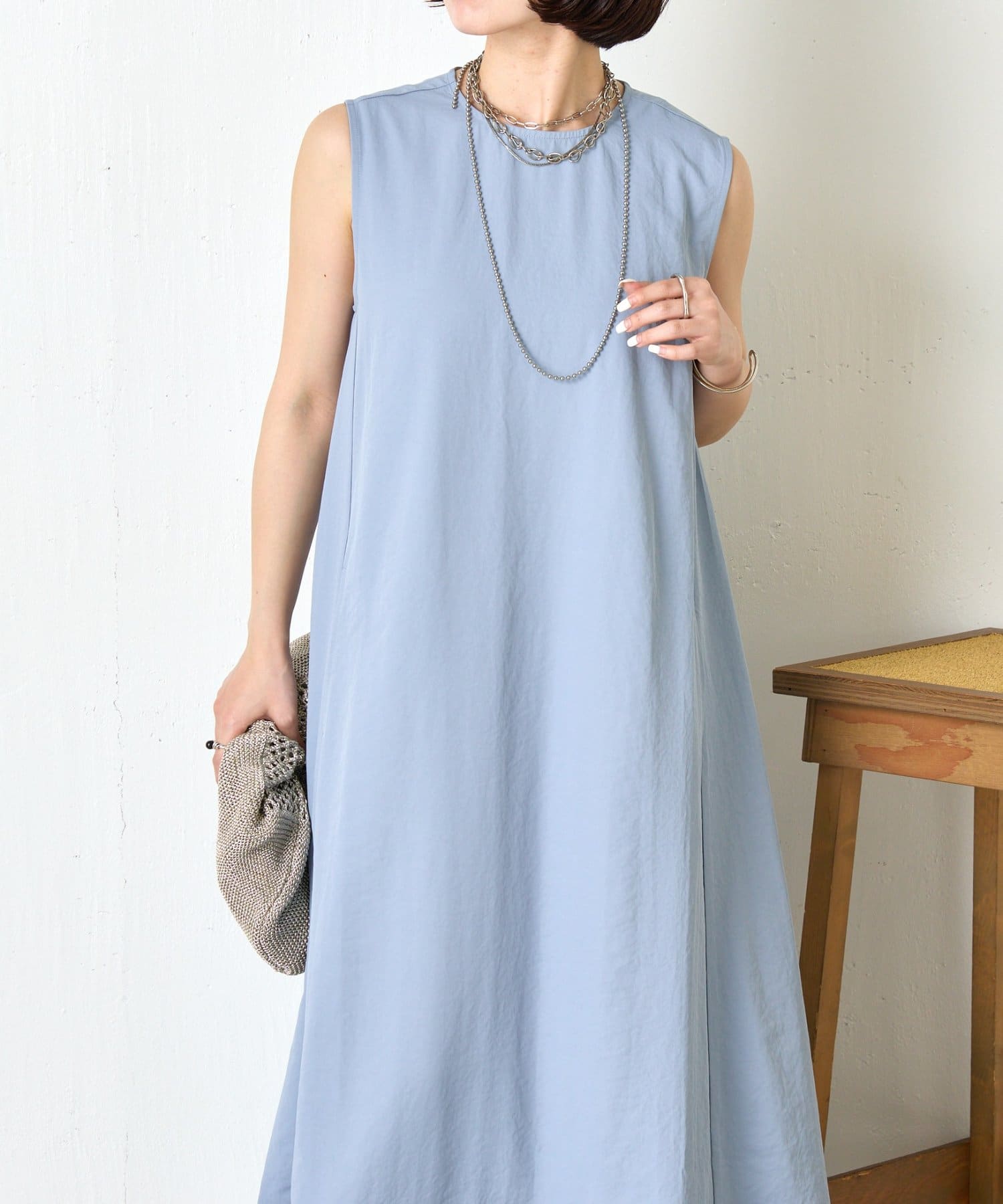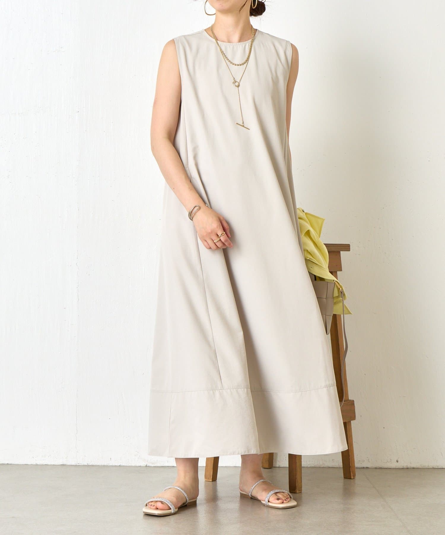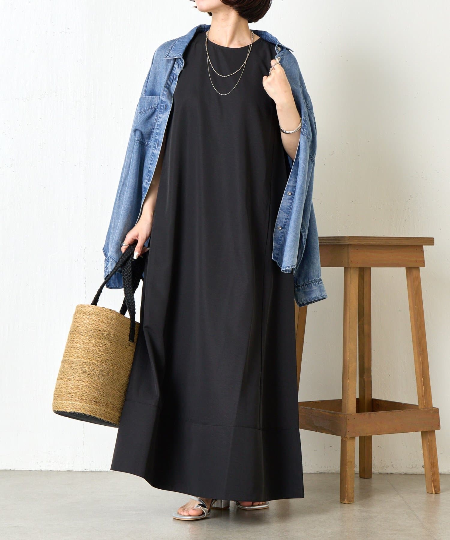 ・さらっとした素材とAラインのシルエットが楽ちんなシンプルなワンピース。