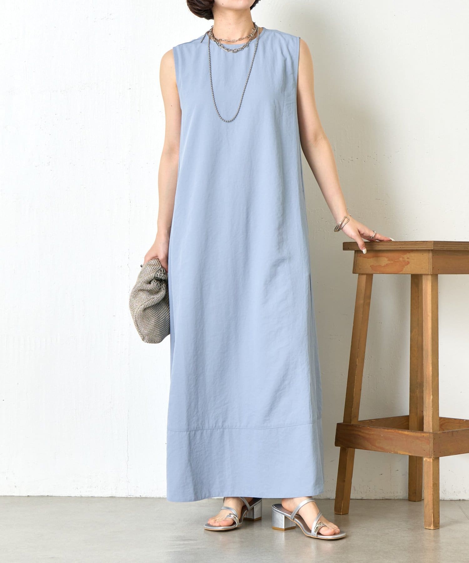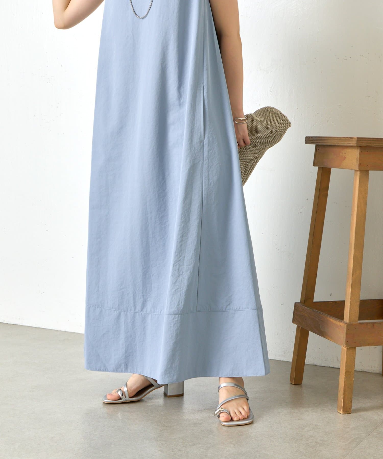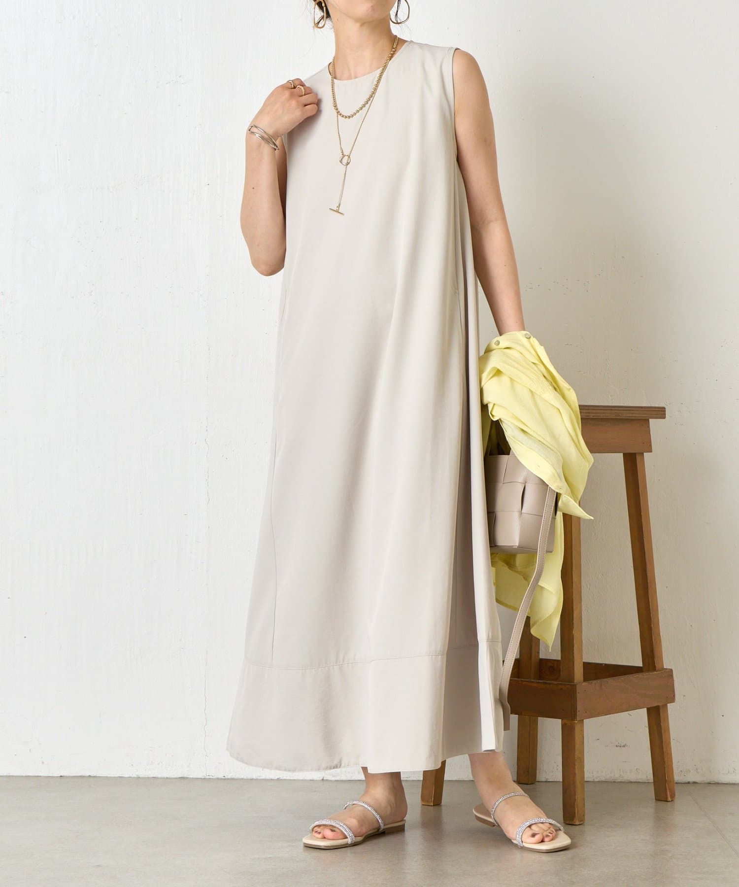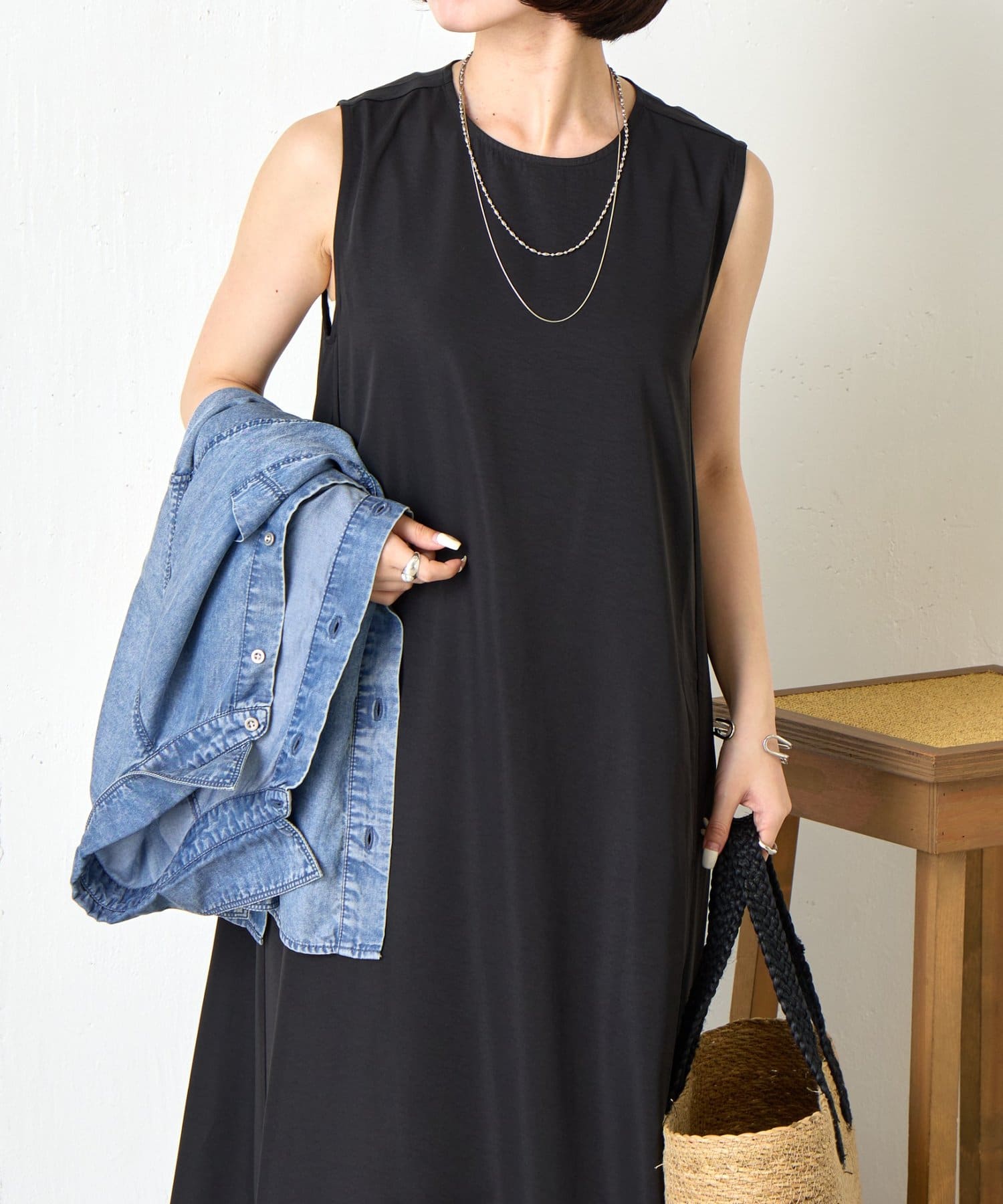 ・さらっとした素材とAラインのシルエットが楽ちんなシンプルなワンピース。
