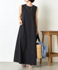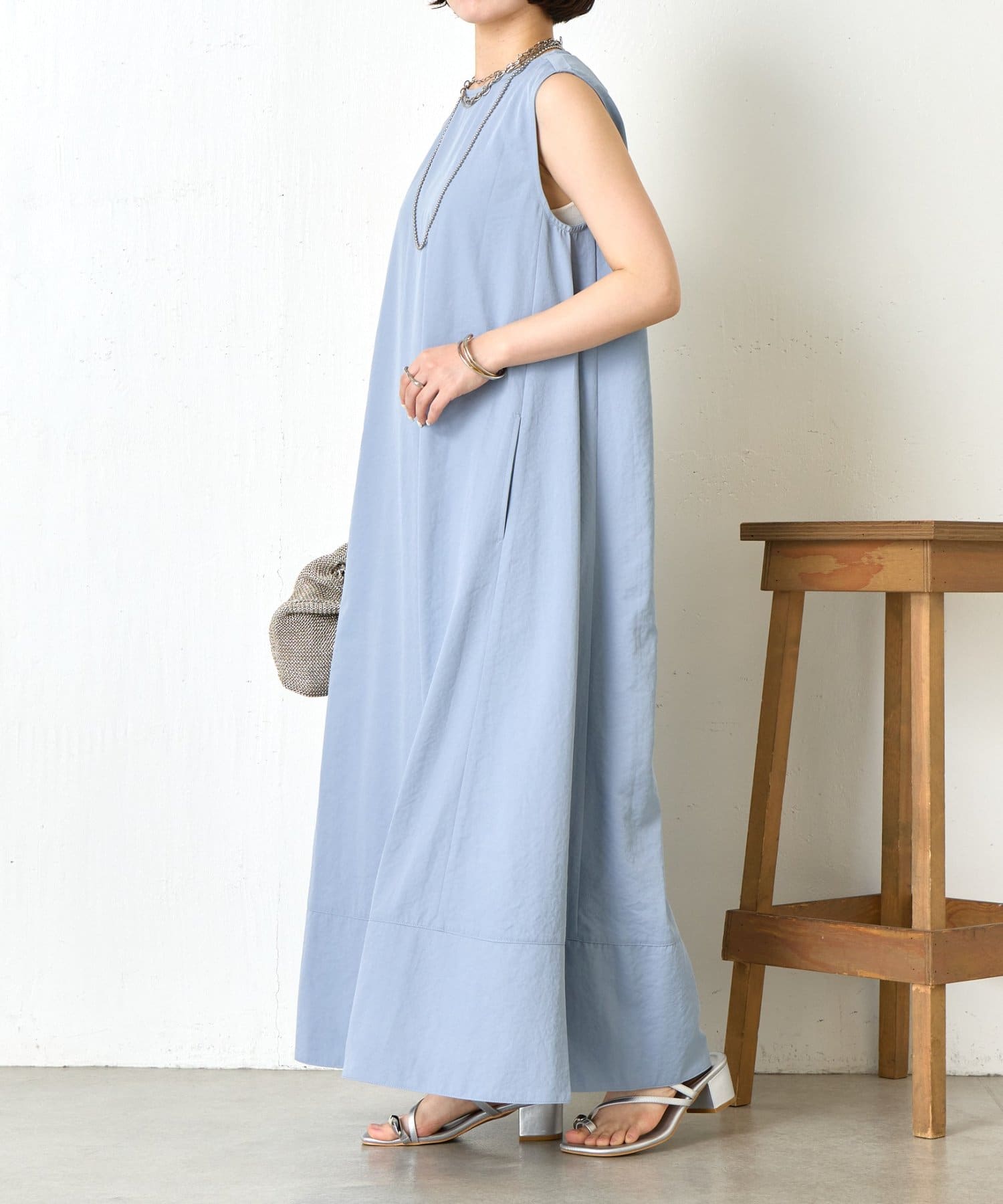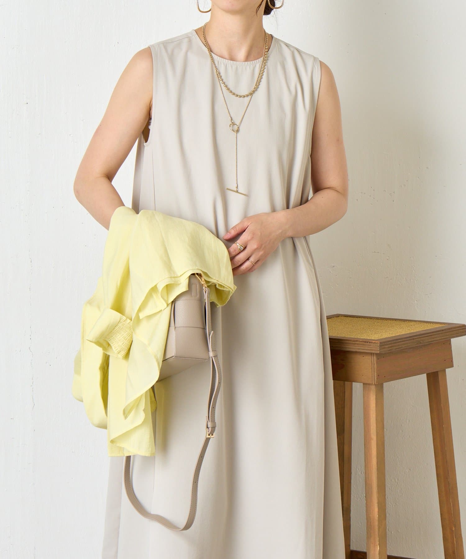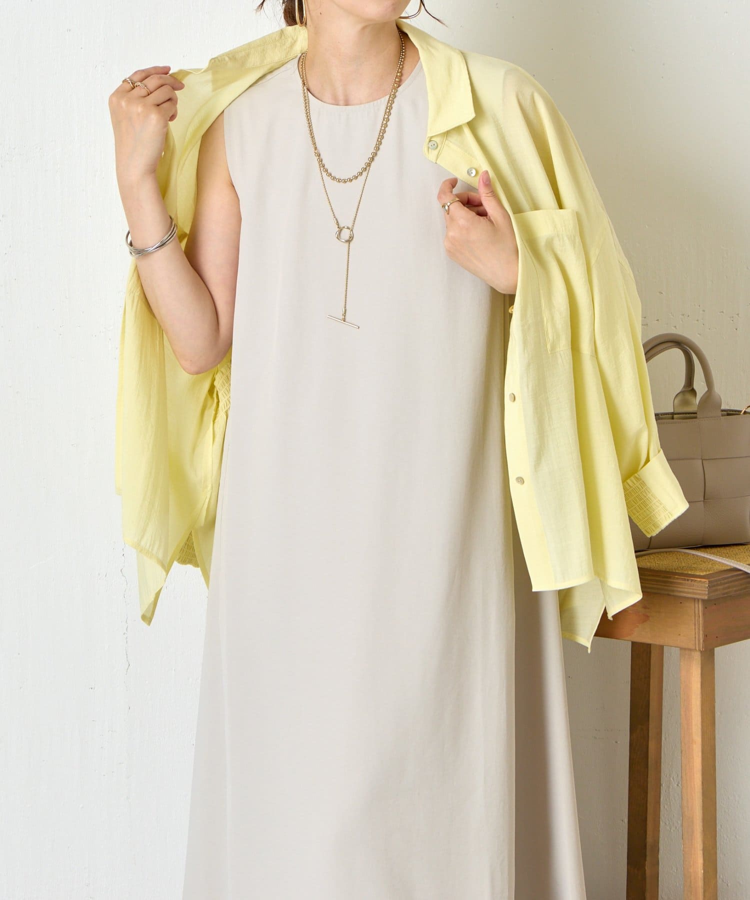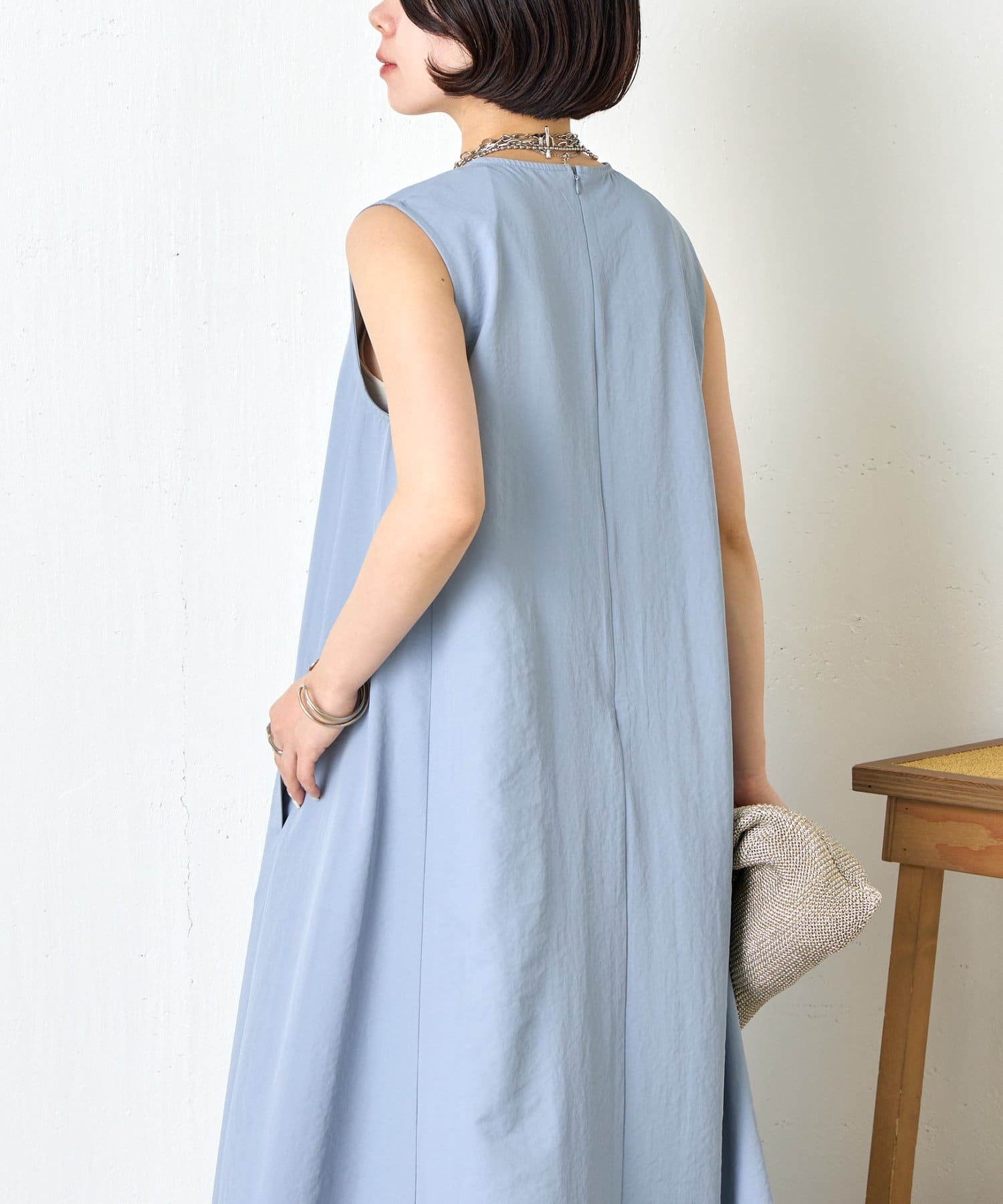 ・さらっとした素材とAラインのシルエットが楽ちんなシンプルなワンピース。