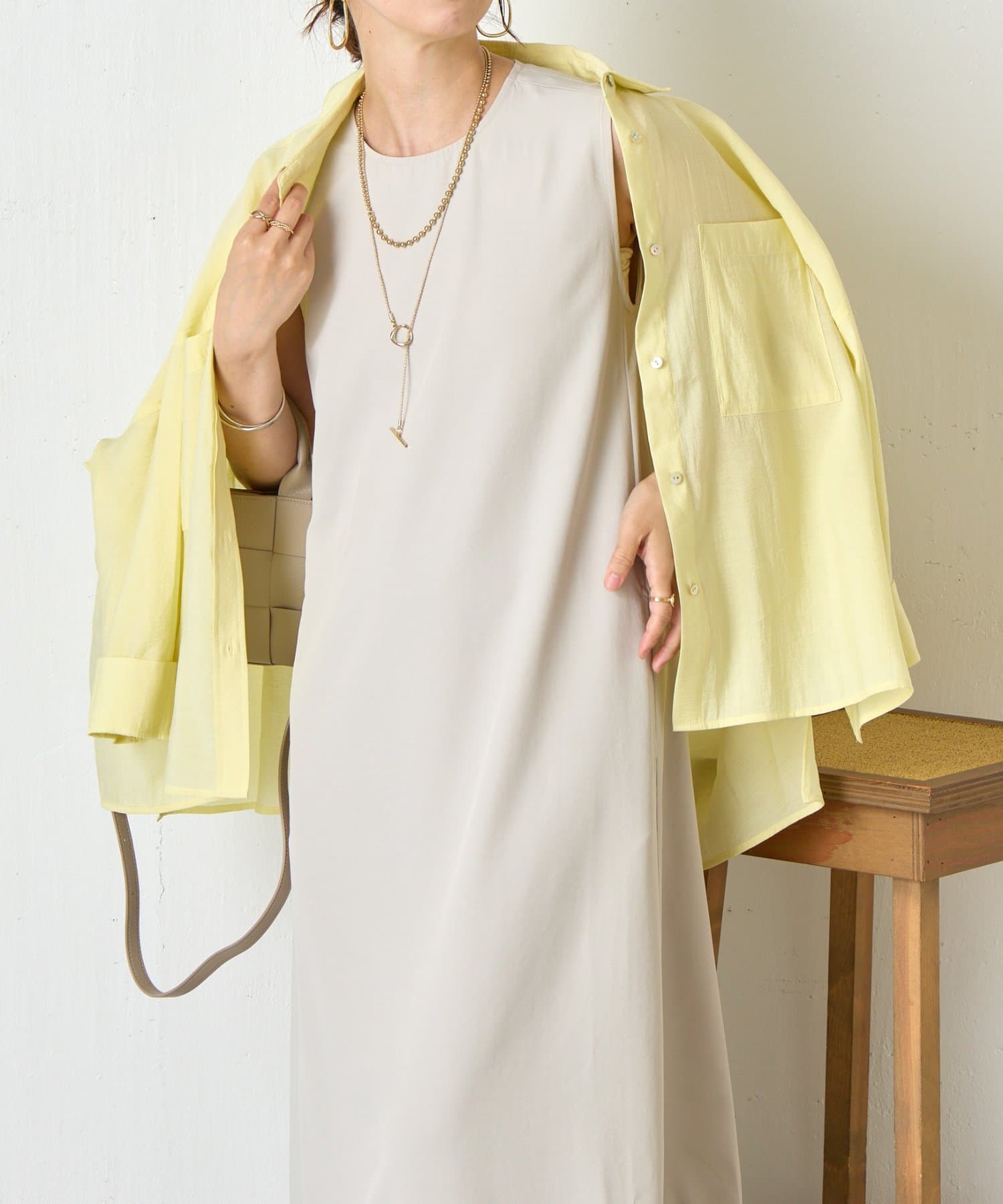 ・一枚で着ても、カーディガンやパーカーなど羽織りと合わせるのもおすすめです。
