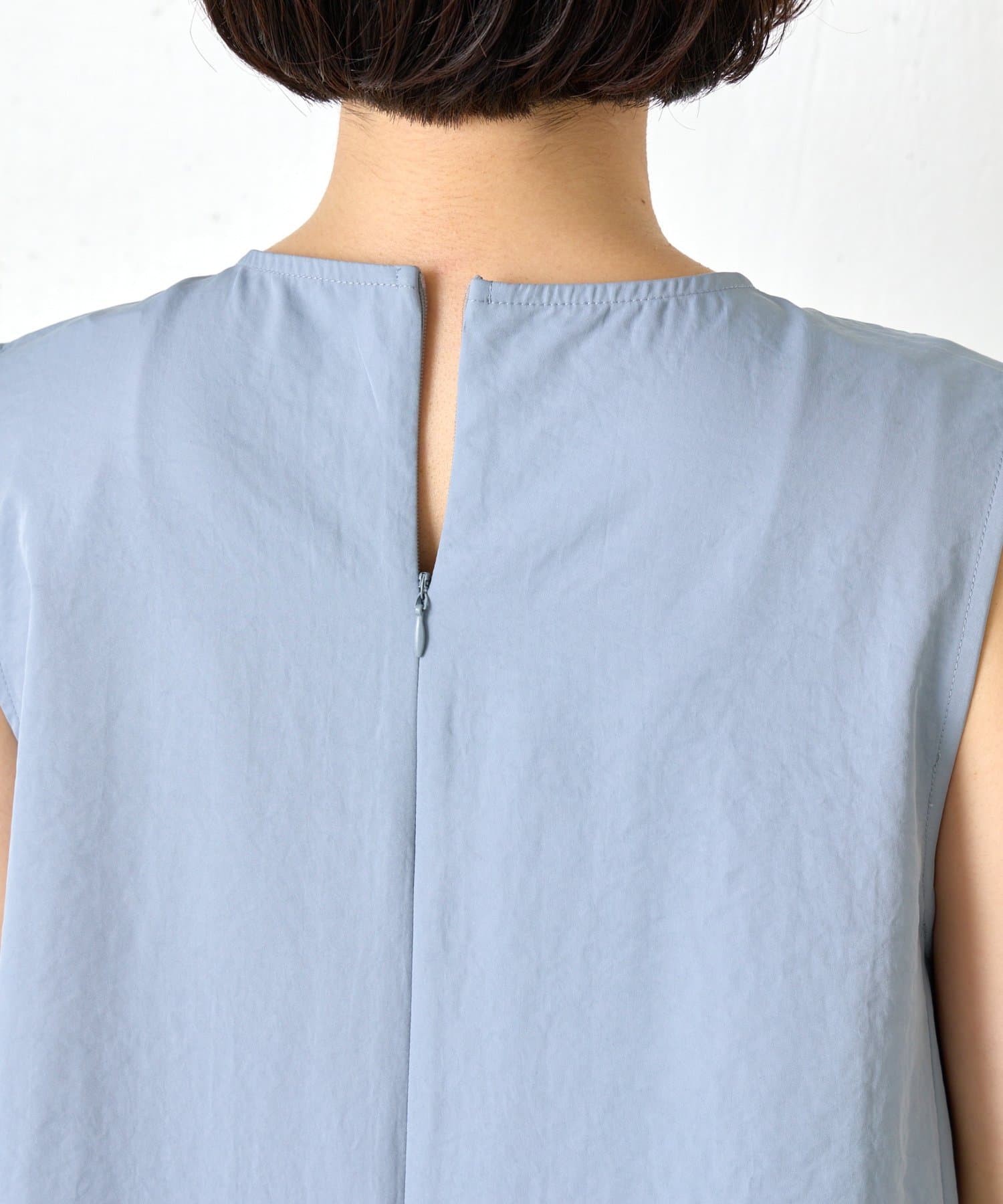 ・後ろジップで着脱しやすいのはもちろん、金具は見えないデザインで上品な印象に。
