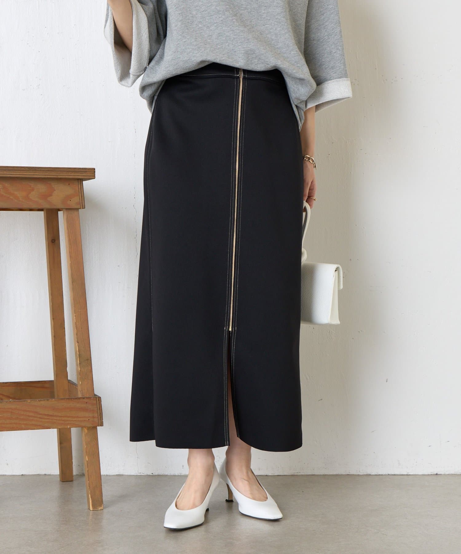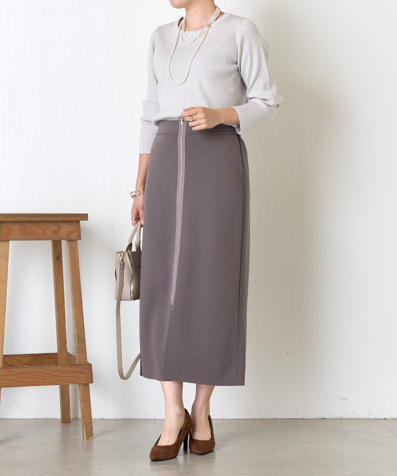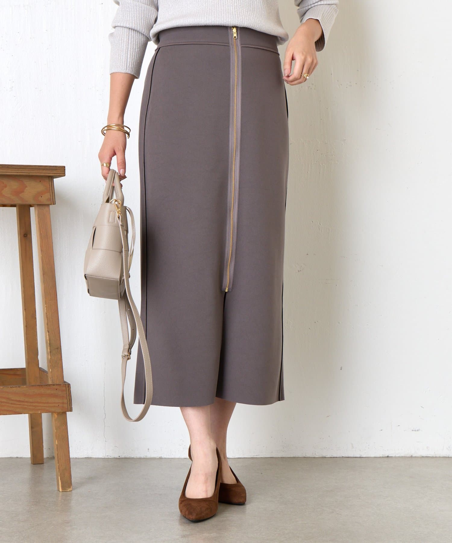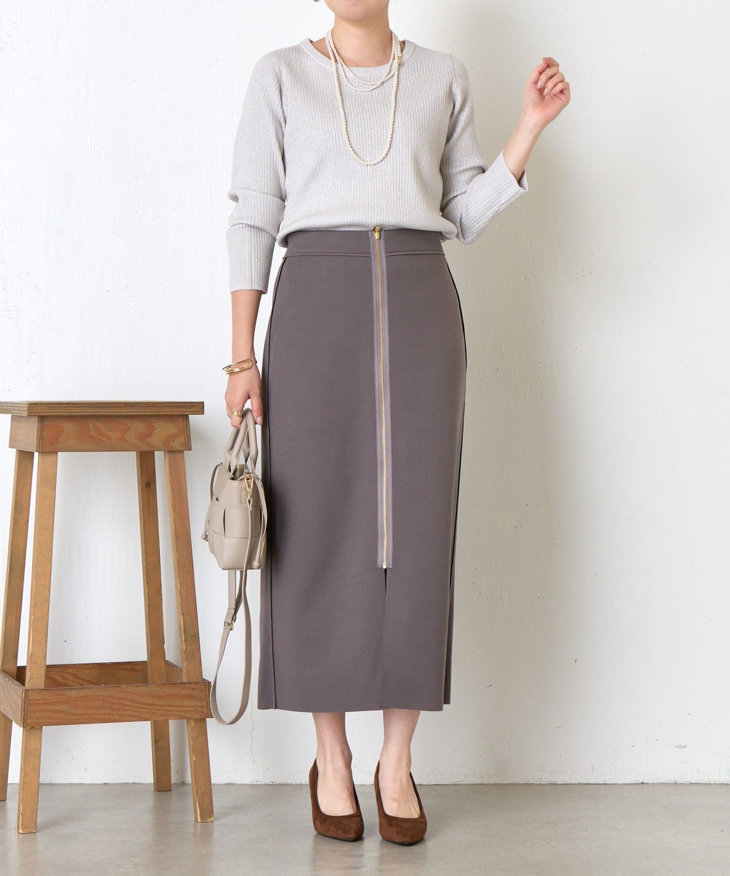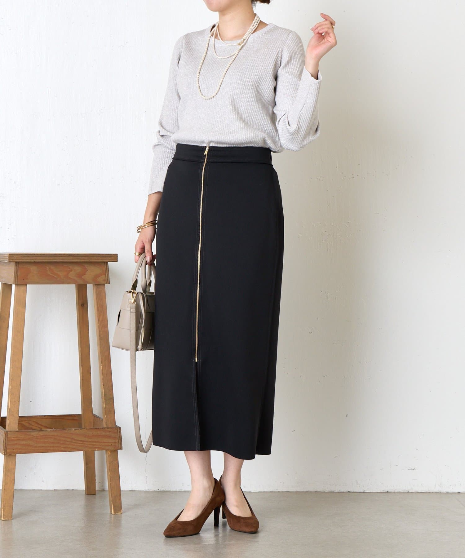 ・フロントのジップデザインがポイントにコーディネートを華やかな印象に仕上げてくれるタイトスカート。