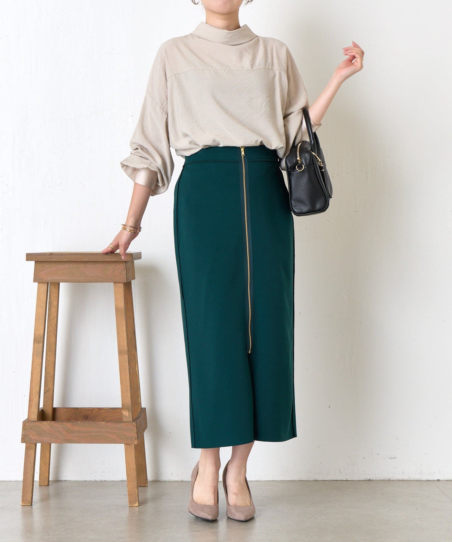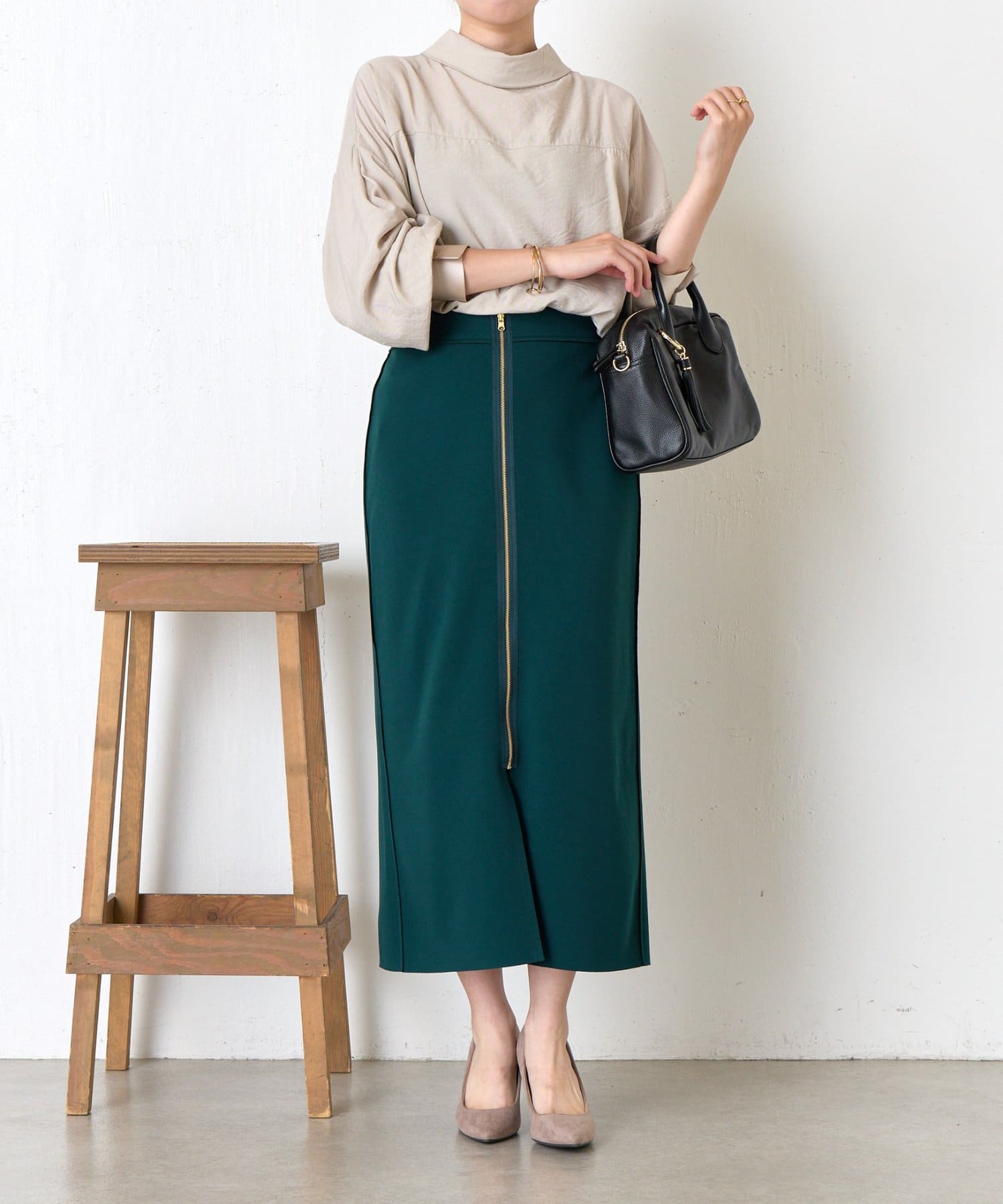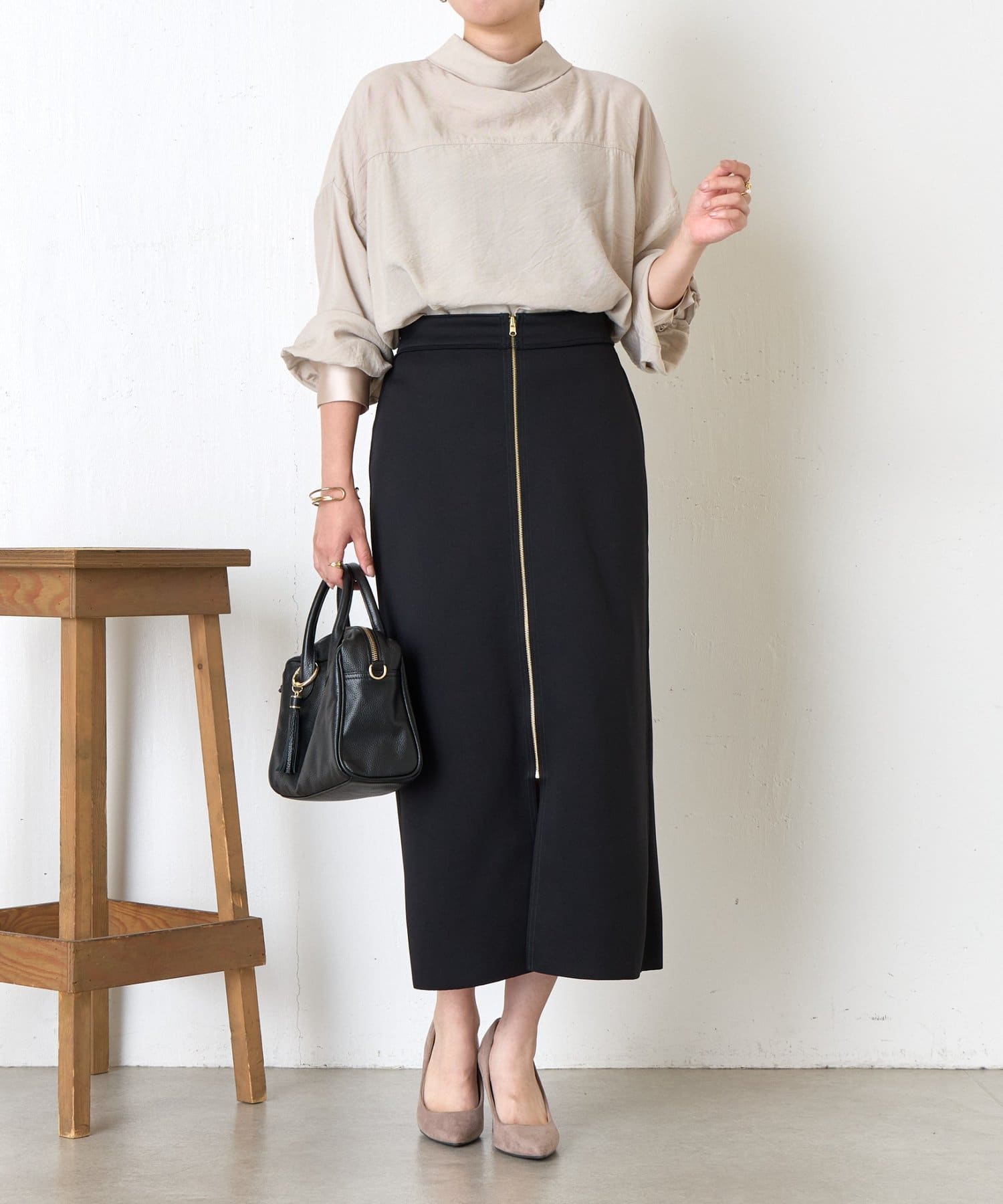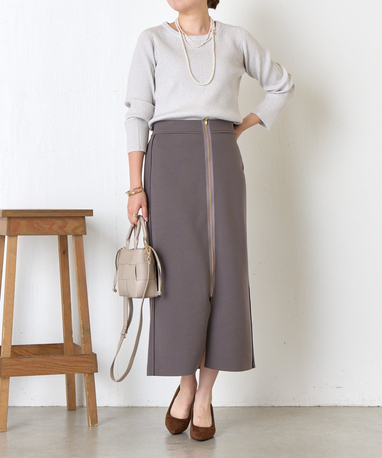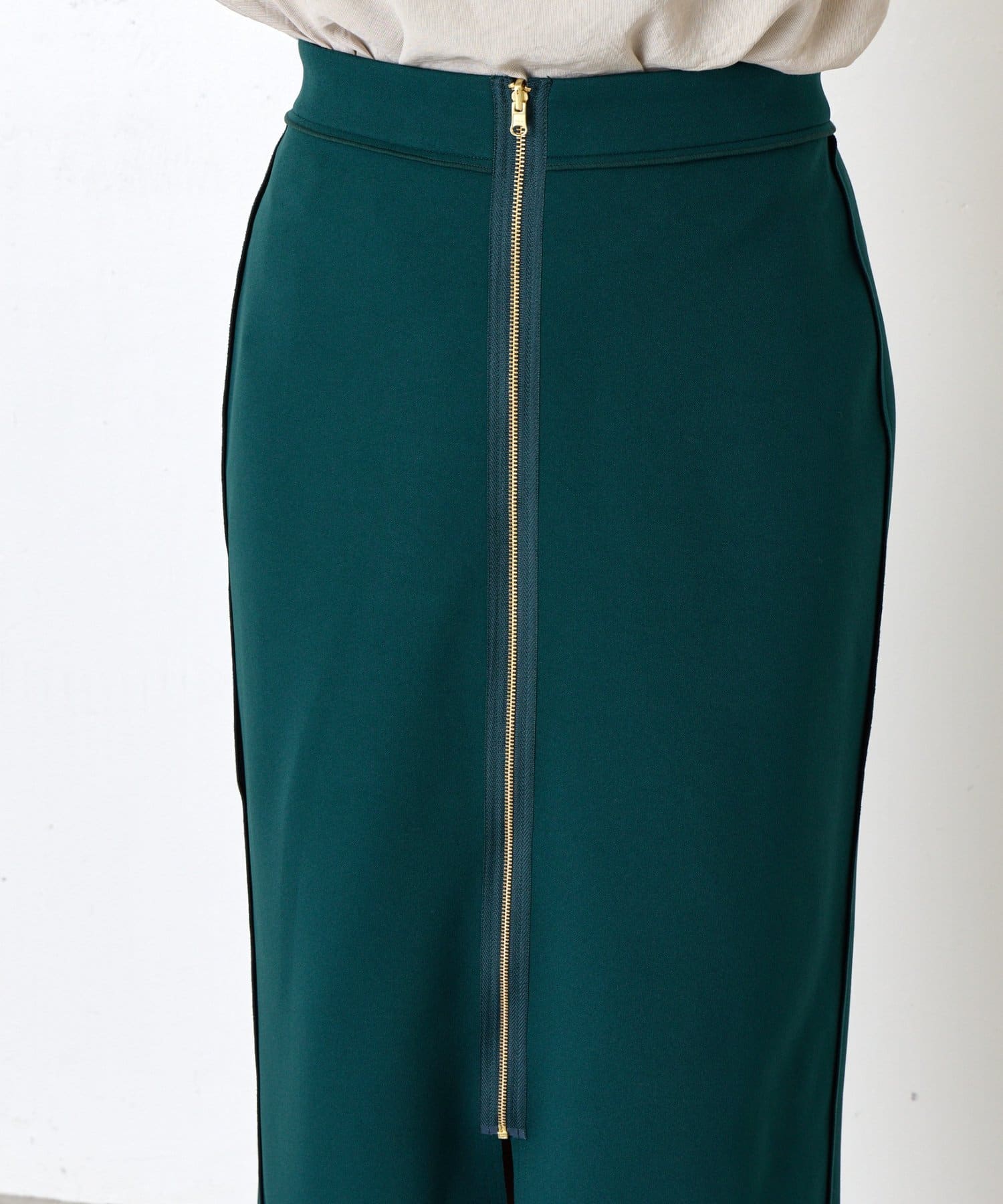・フロントのジップデザインがポイントにコーディネートを華やかな印象に仕上げてくれるタイトスカート。