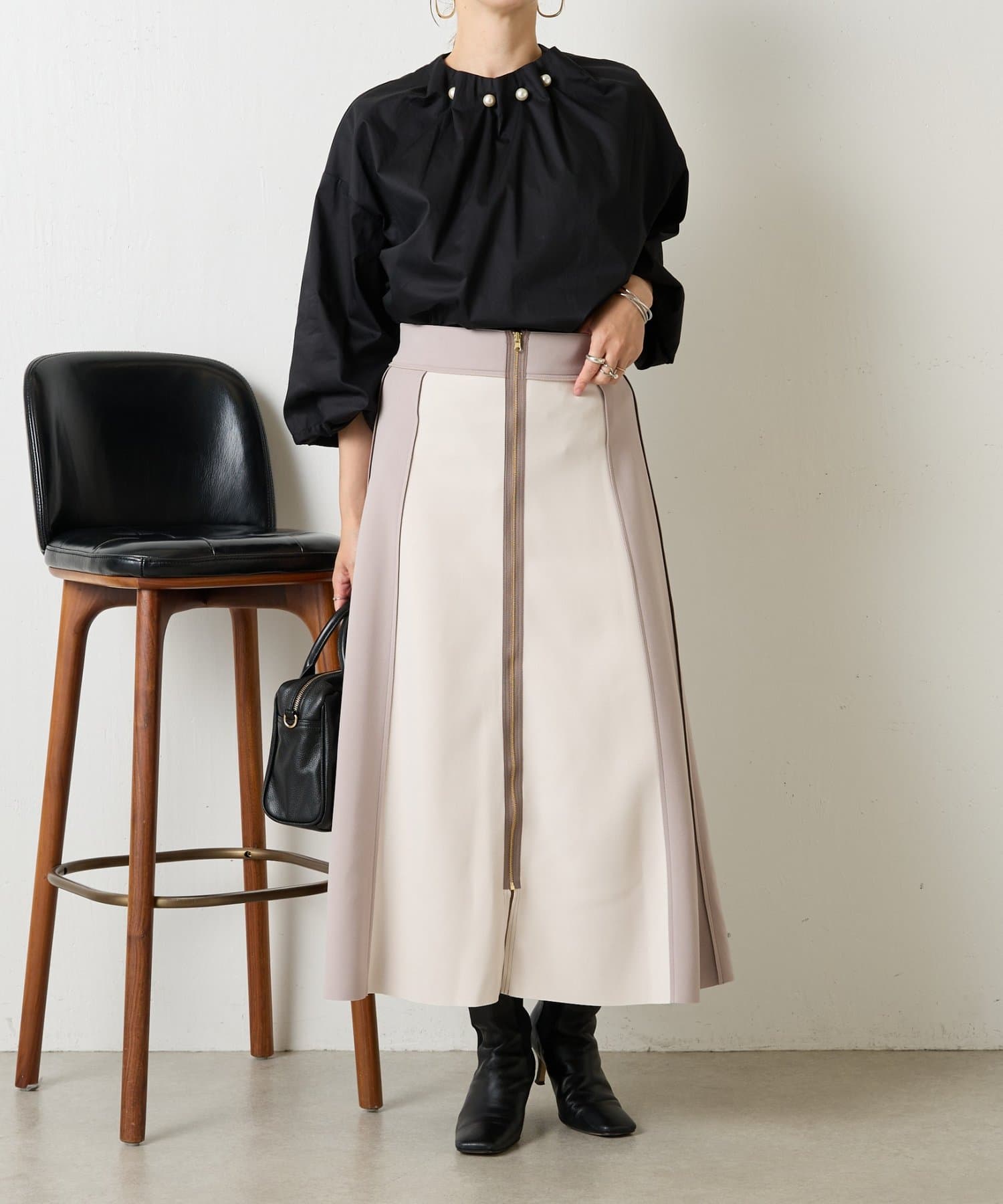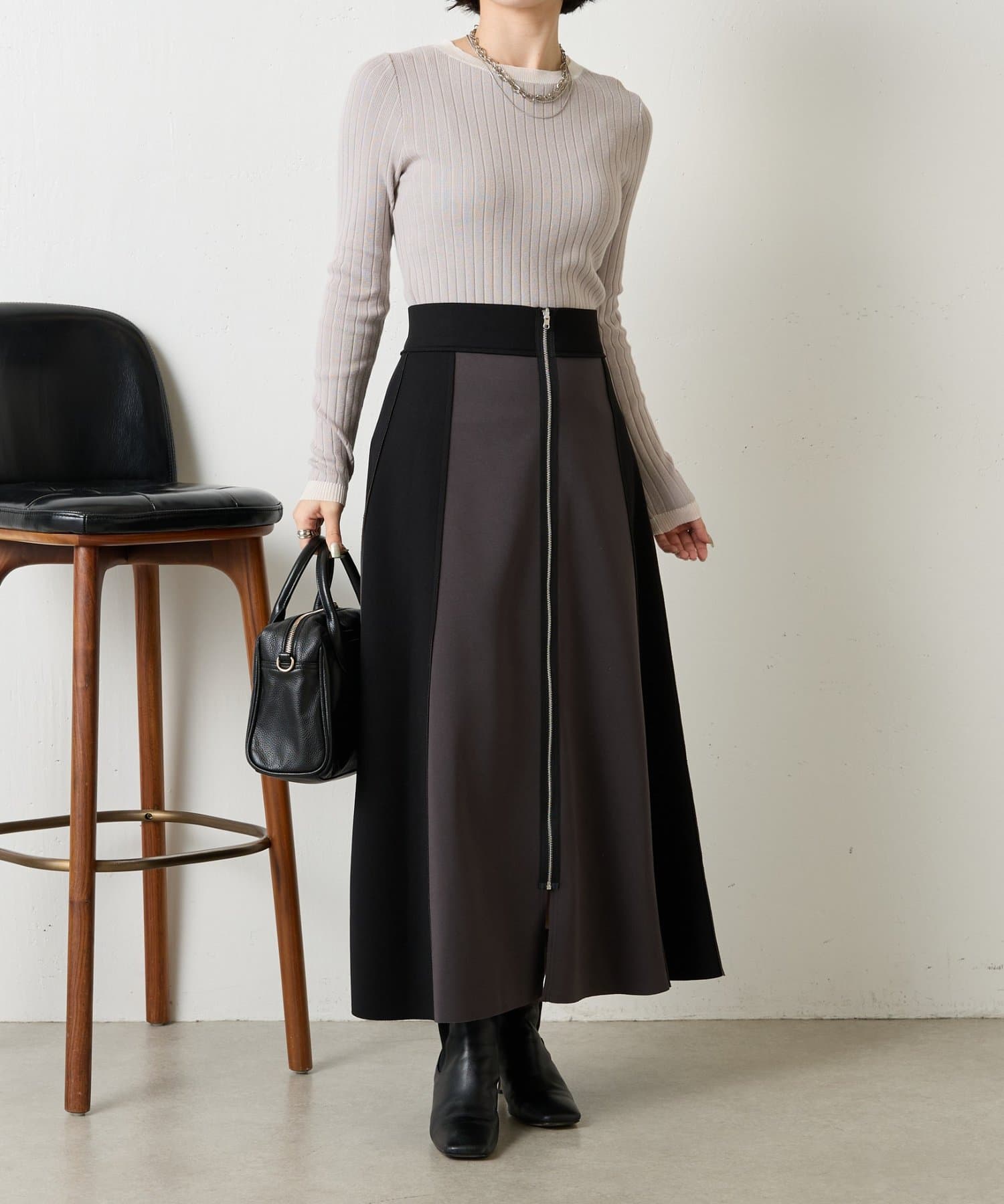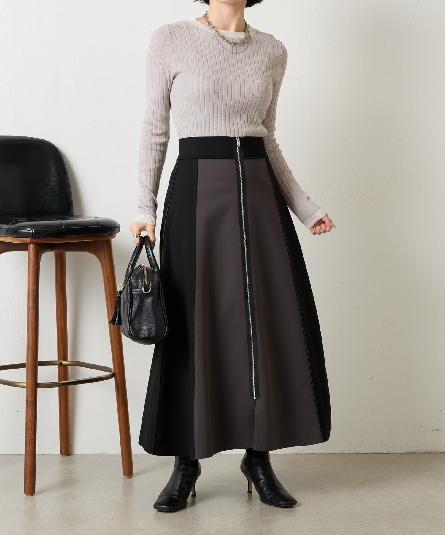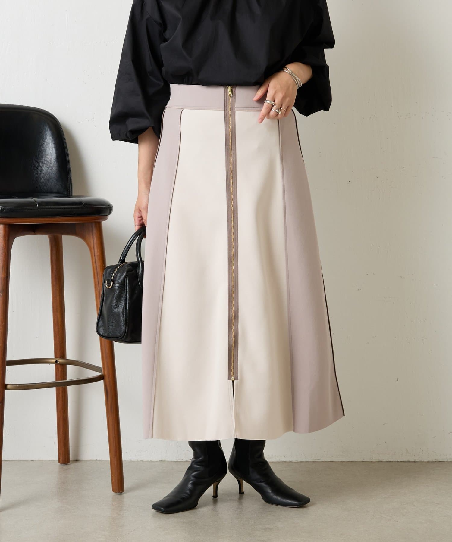 ・フロントのジップデザインがポイントにコーディネートを華やかな印象に仕上げてくれるタイトスカート。