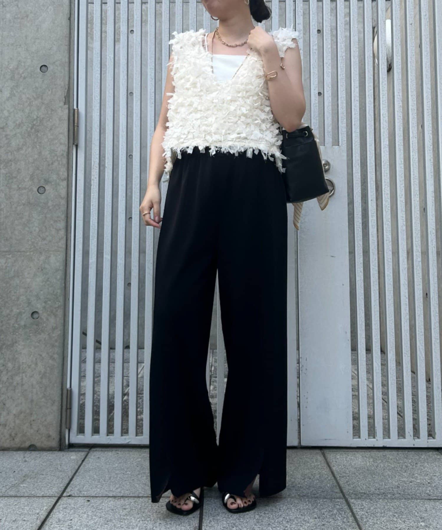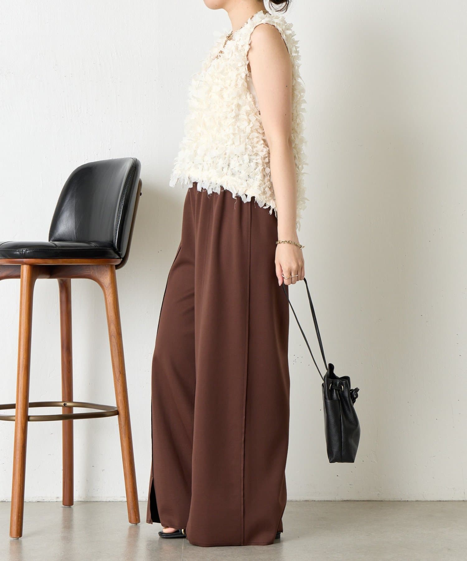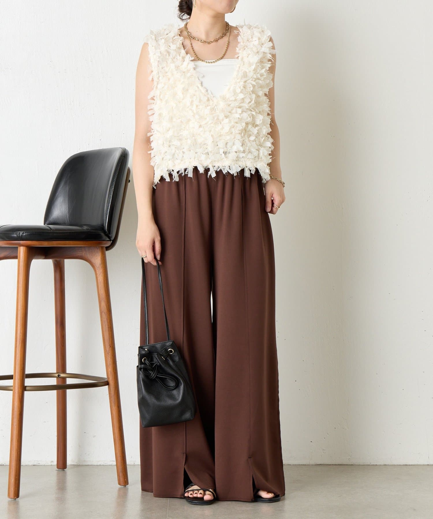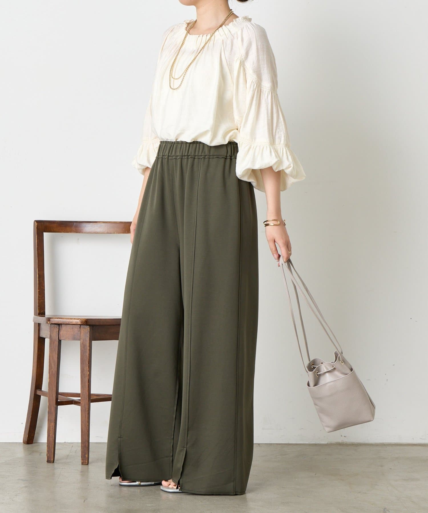 ・裾に入った程よいスリットで、抜け感を演出。センタープレスで美脚効果も◎
