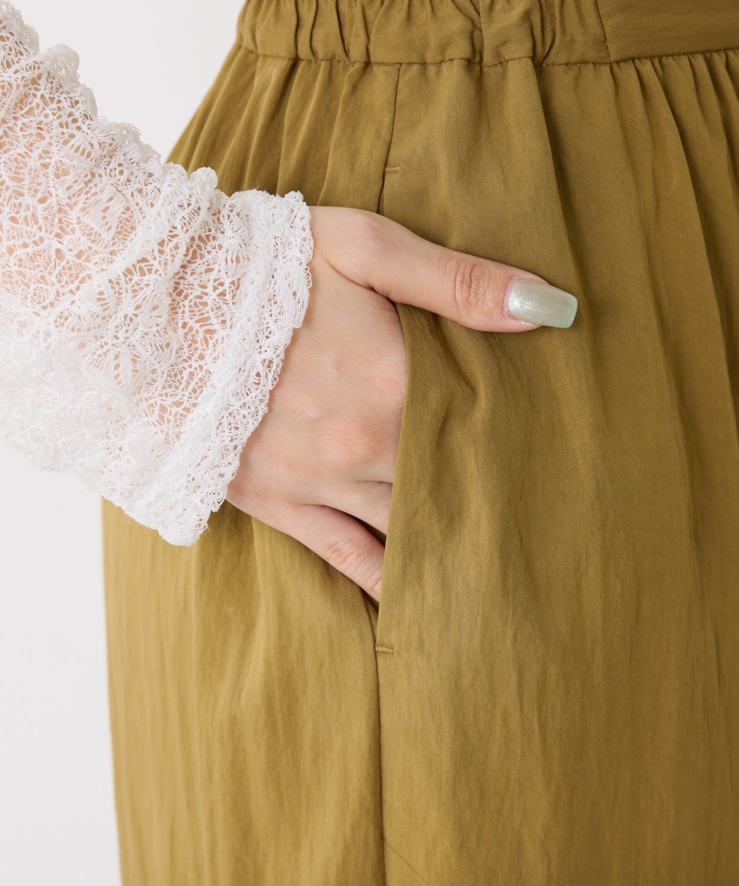 ・ウエスト部分には細かいギャザーが入っており、気になるお腹周りをすっきりと魅せてくれます。