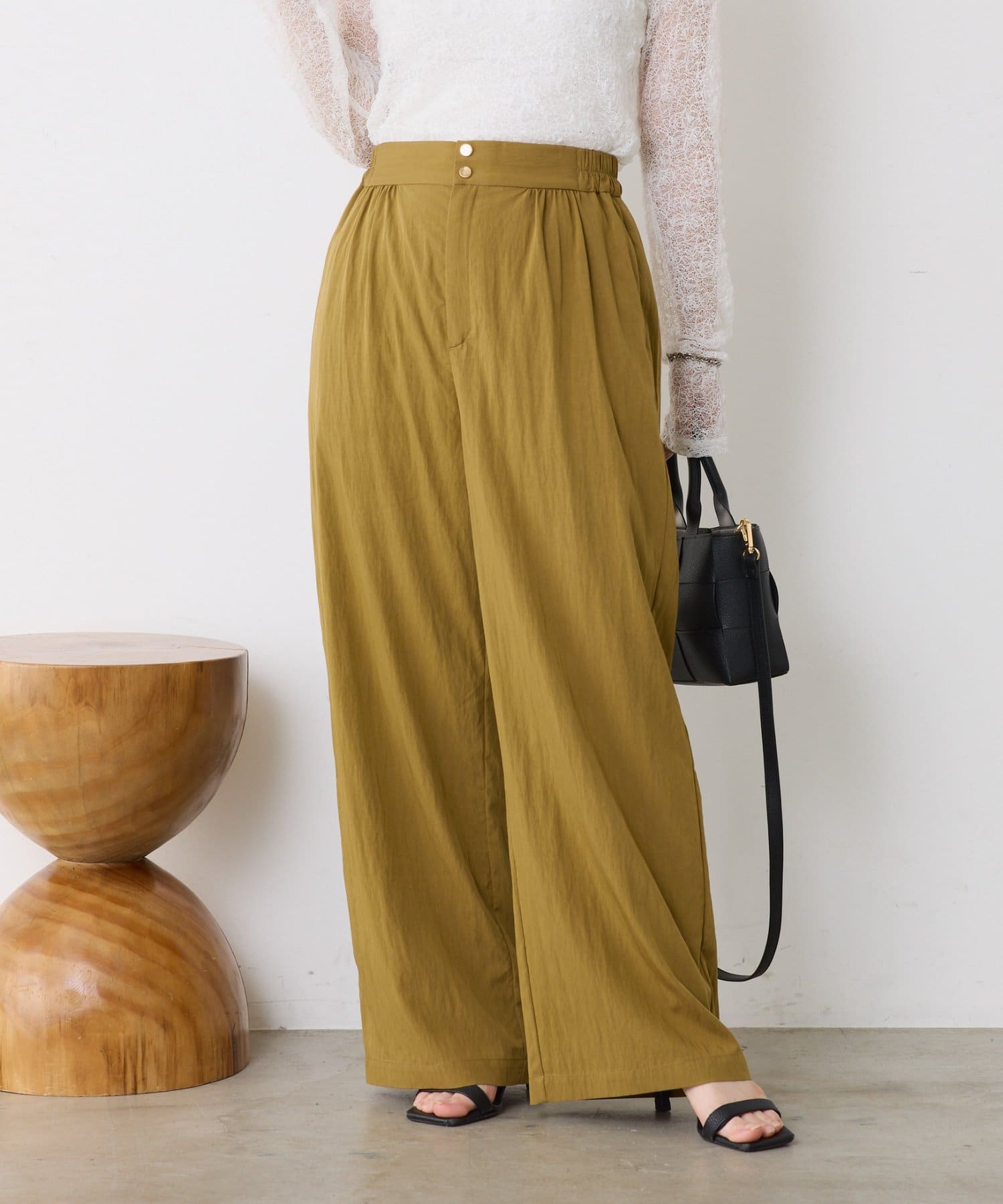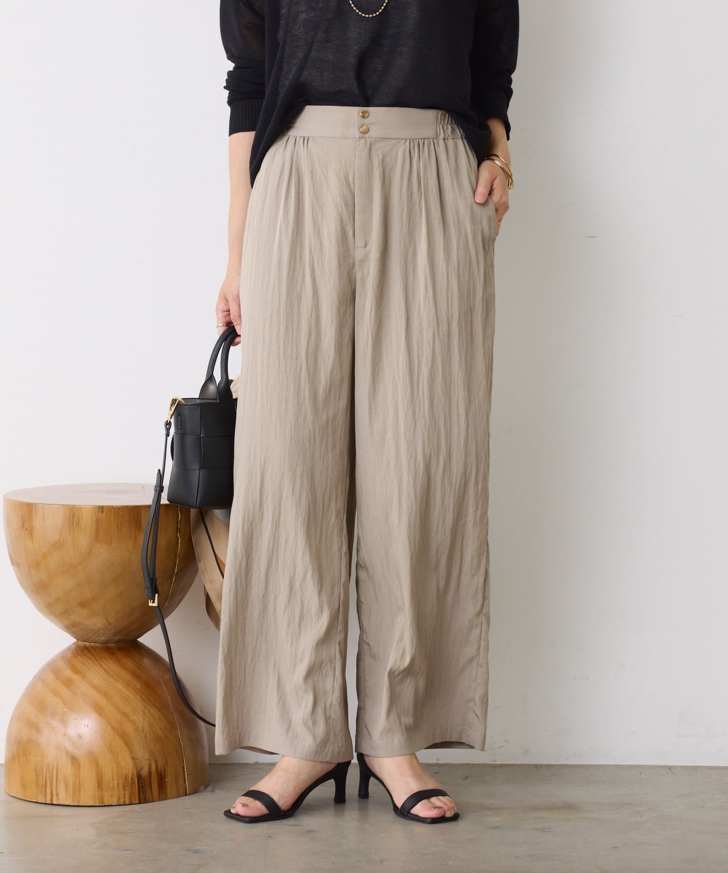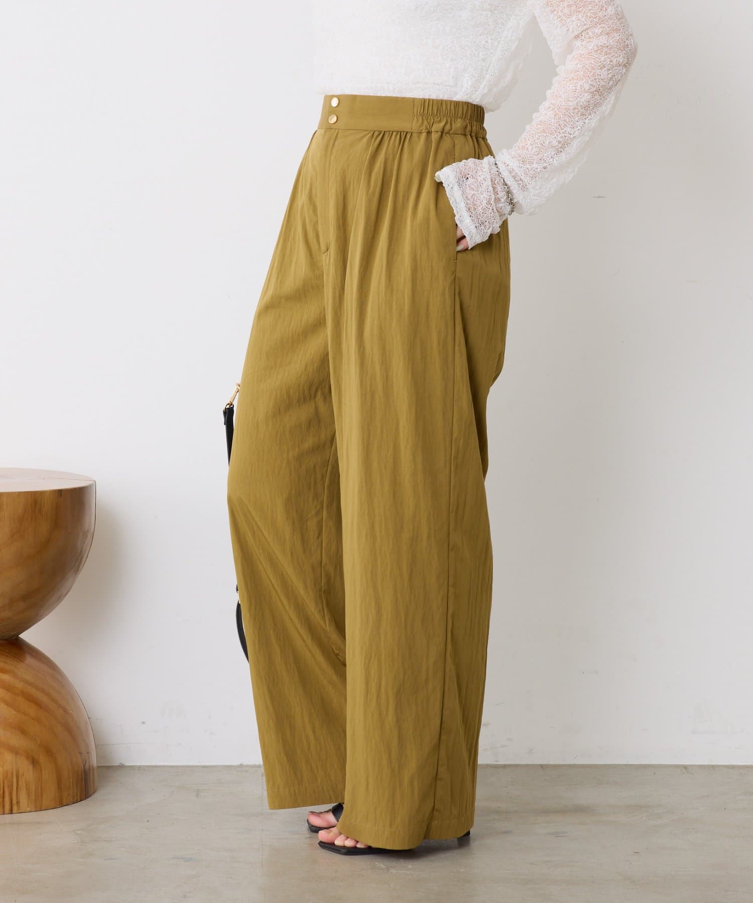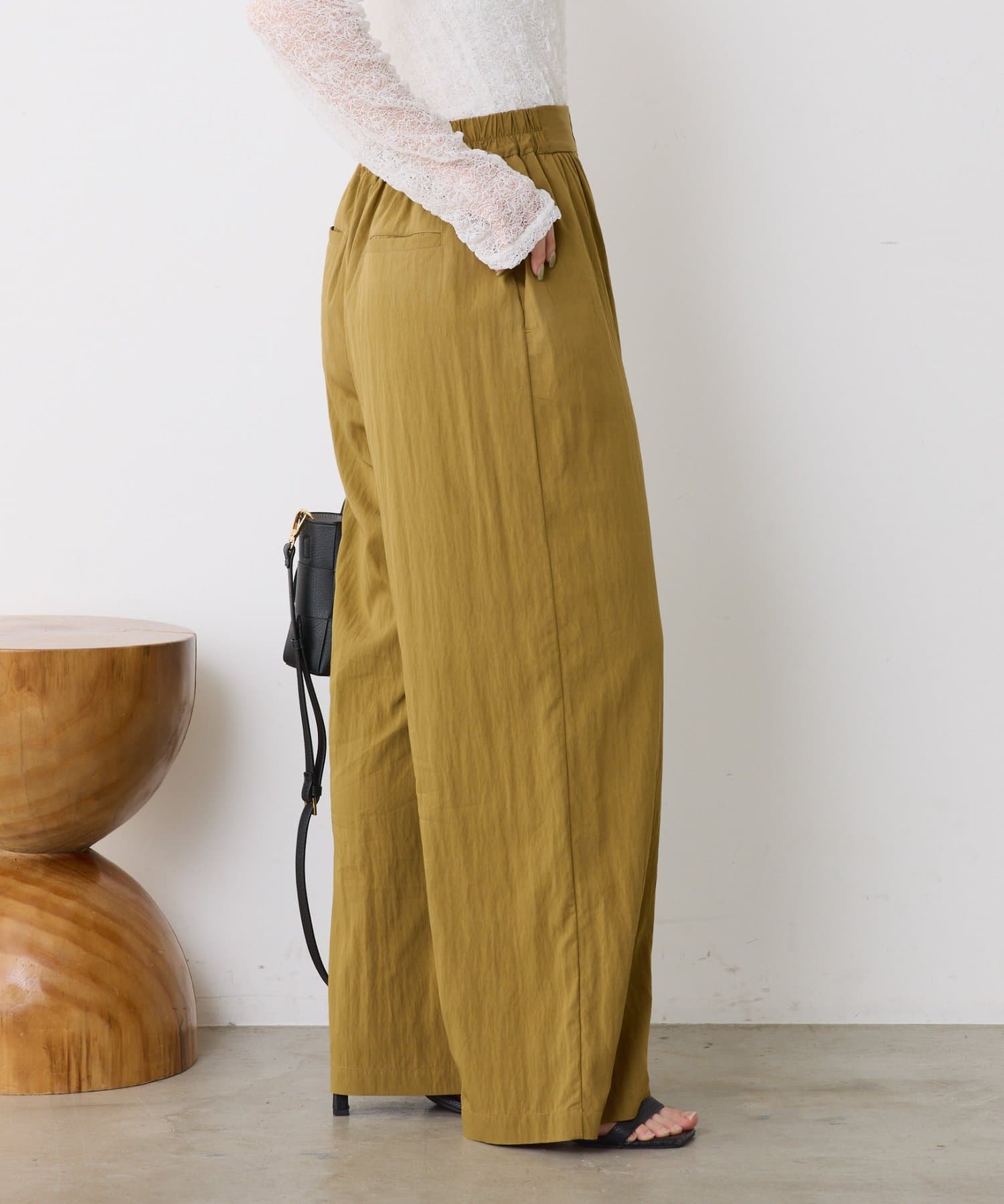 ・滑らかで落ち感のあるレーヨン素材のワイドパンツ。