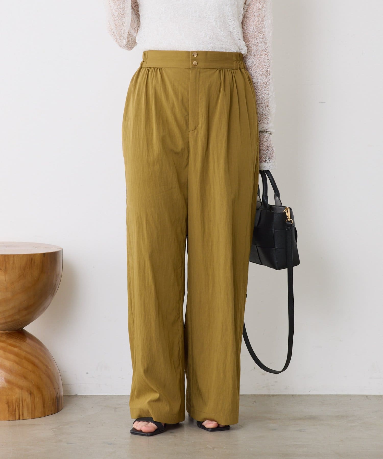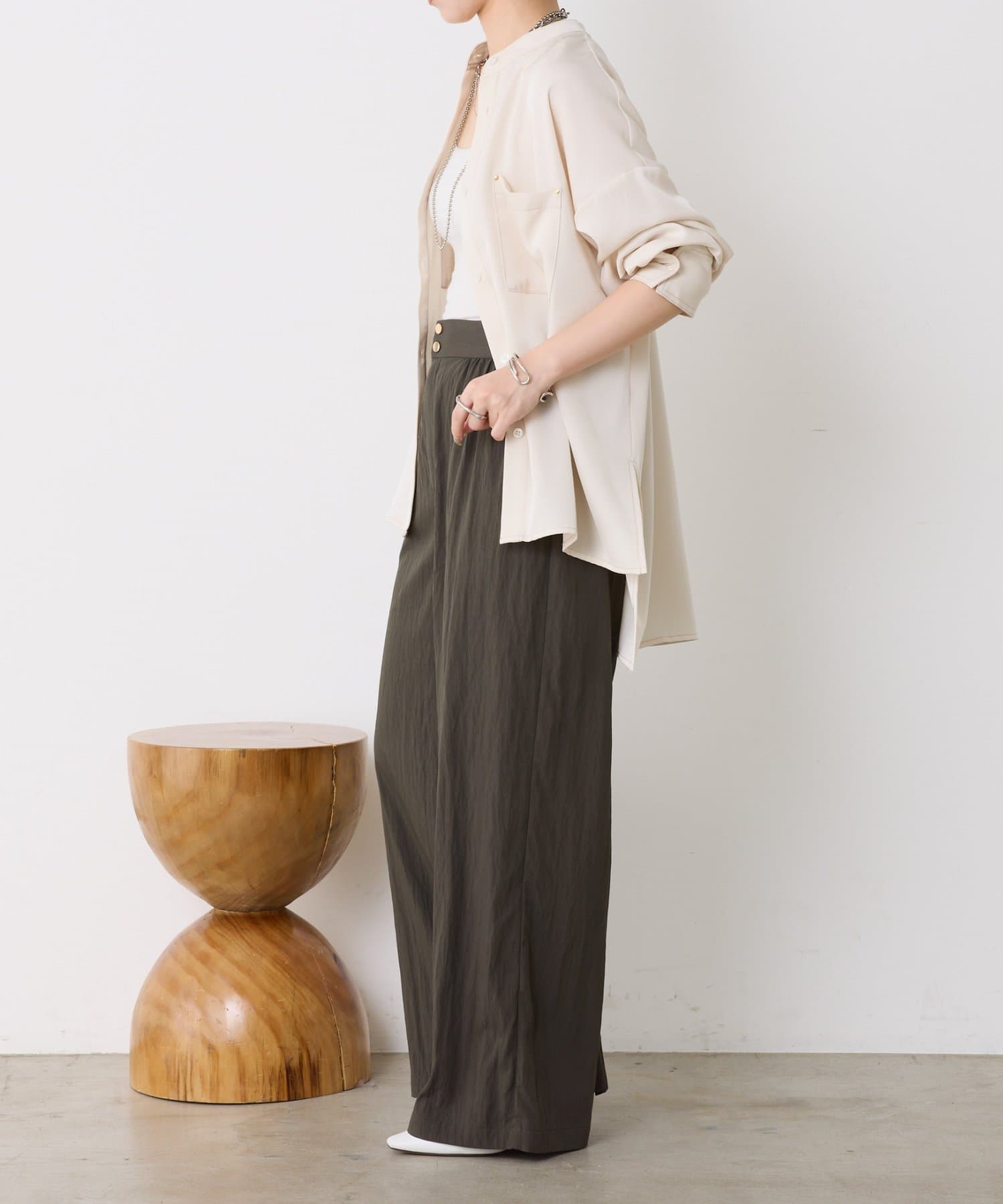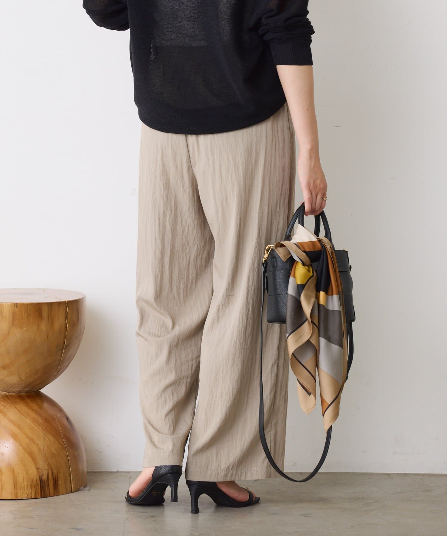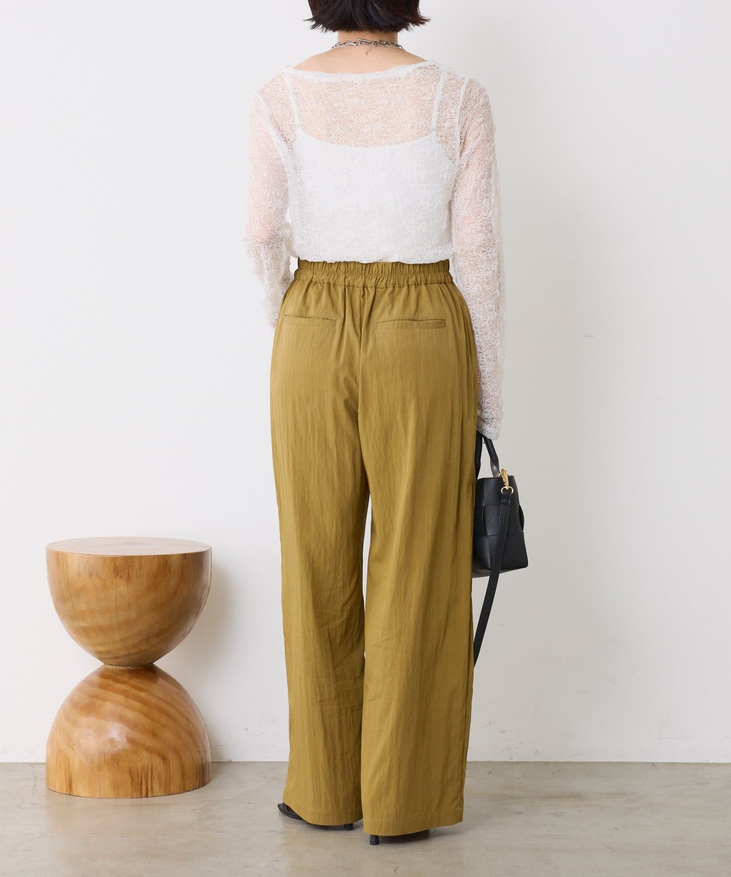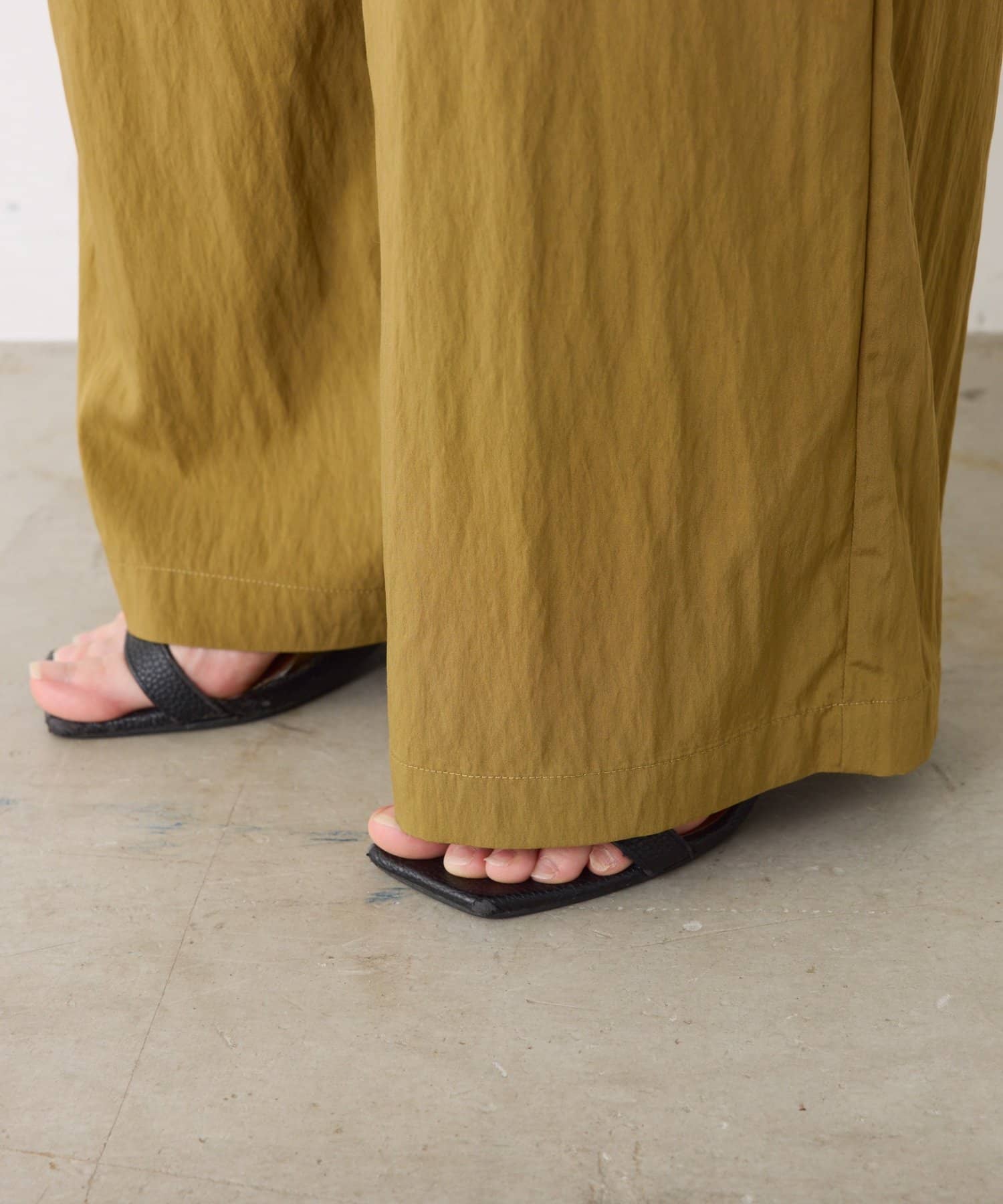 ・滑らかで落ち感のあるレーヨン素材のワイドパンツ。