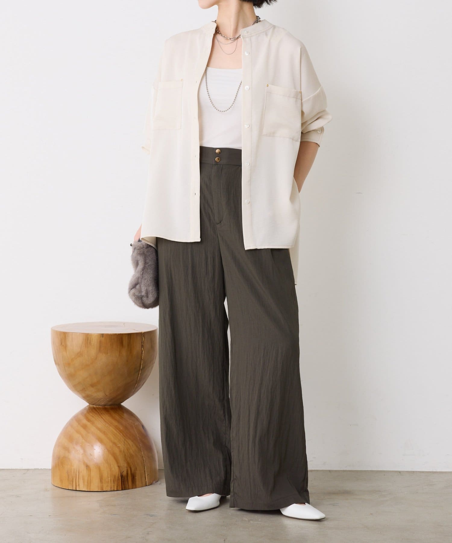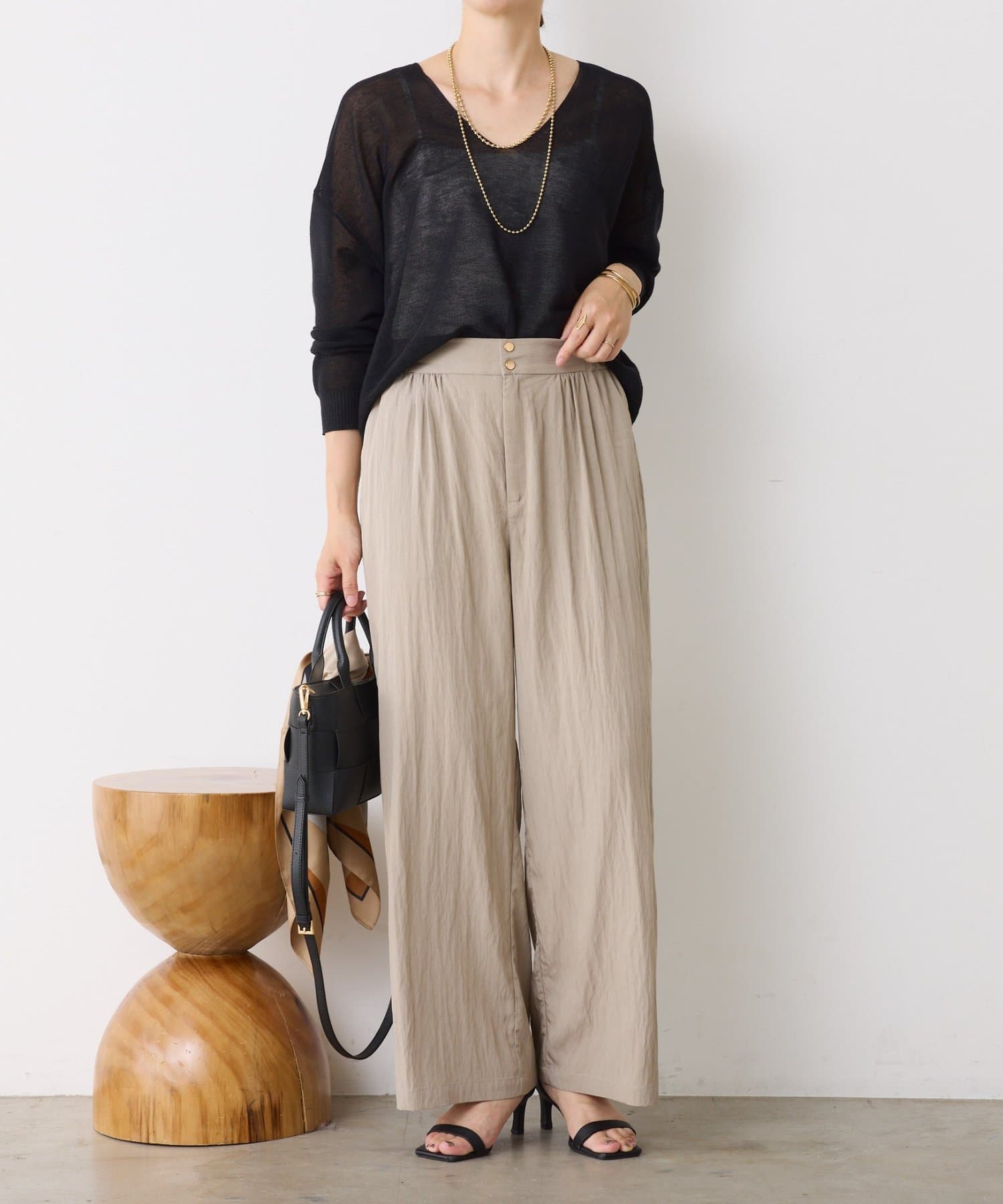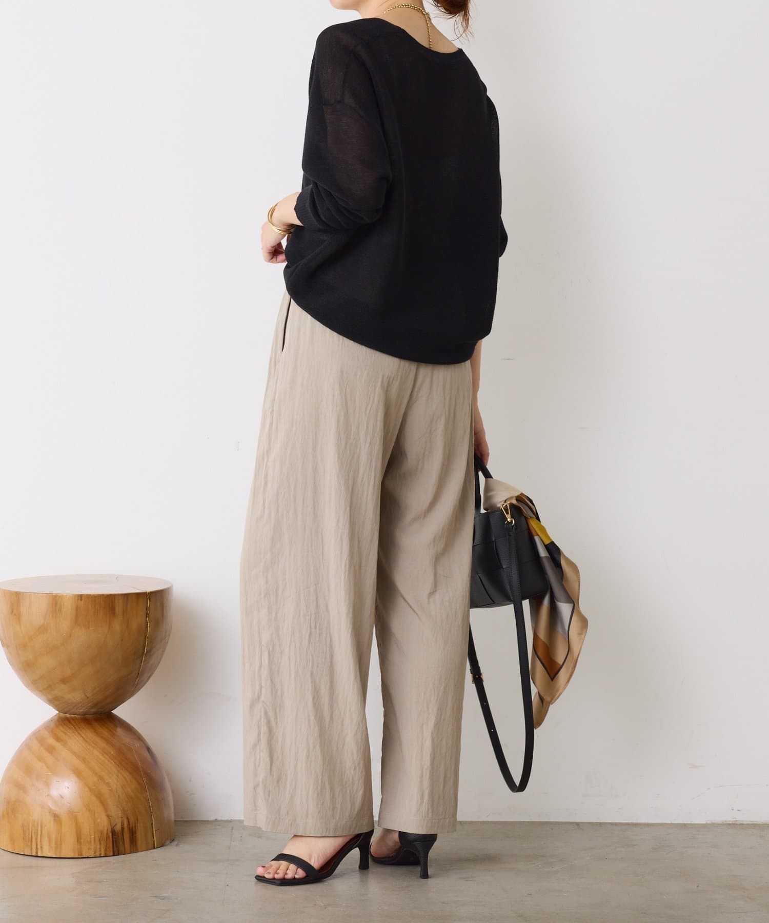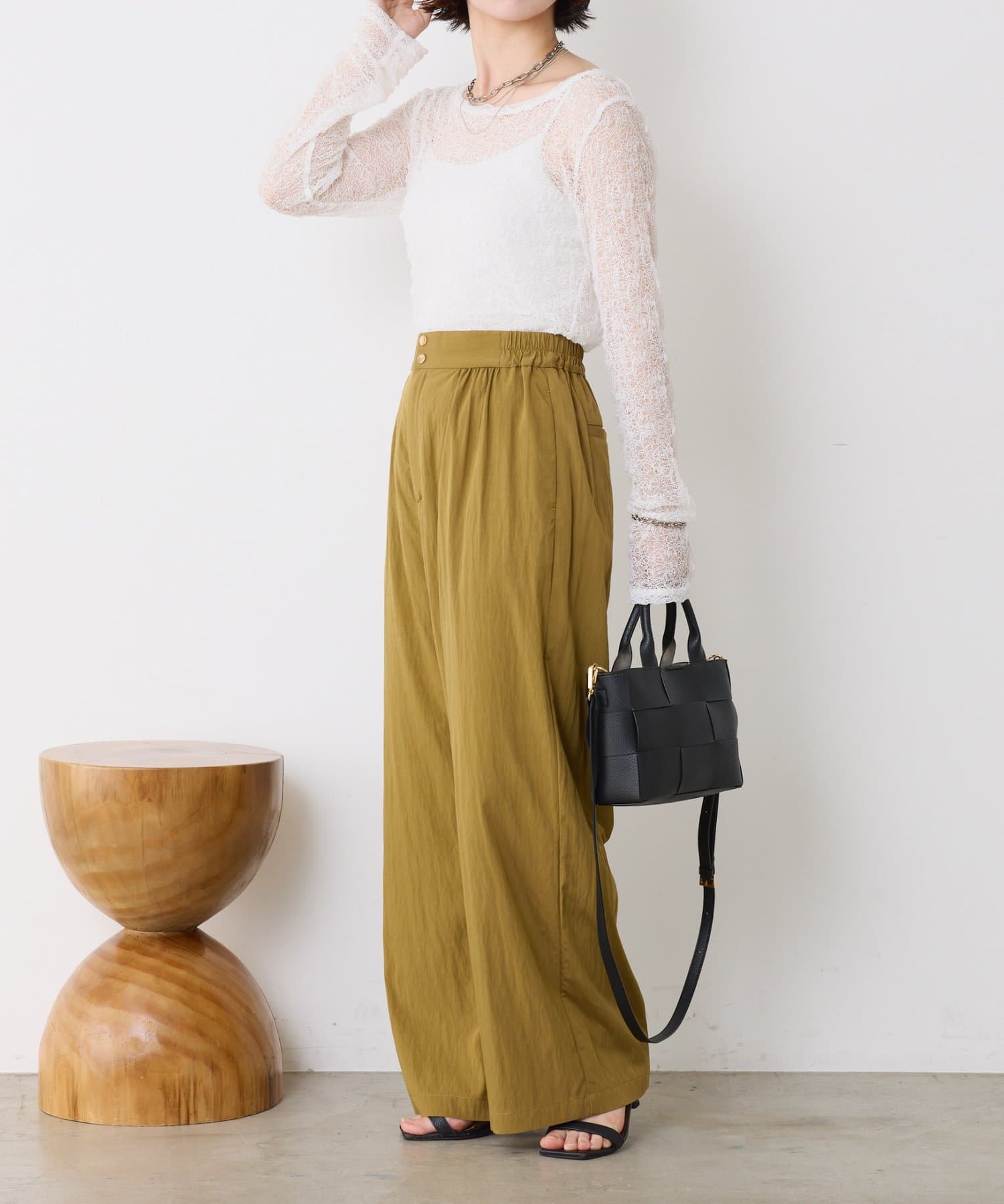 ・滑らかで落ち感のあるレーヨン素材のワイドパンツ。