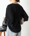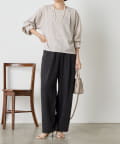 ・首元は詰まりすぎないクルーネックで、パールネックレスなどのアクセサリーも映えるデザイン。
