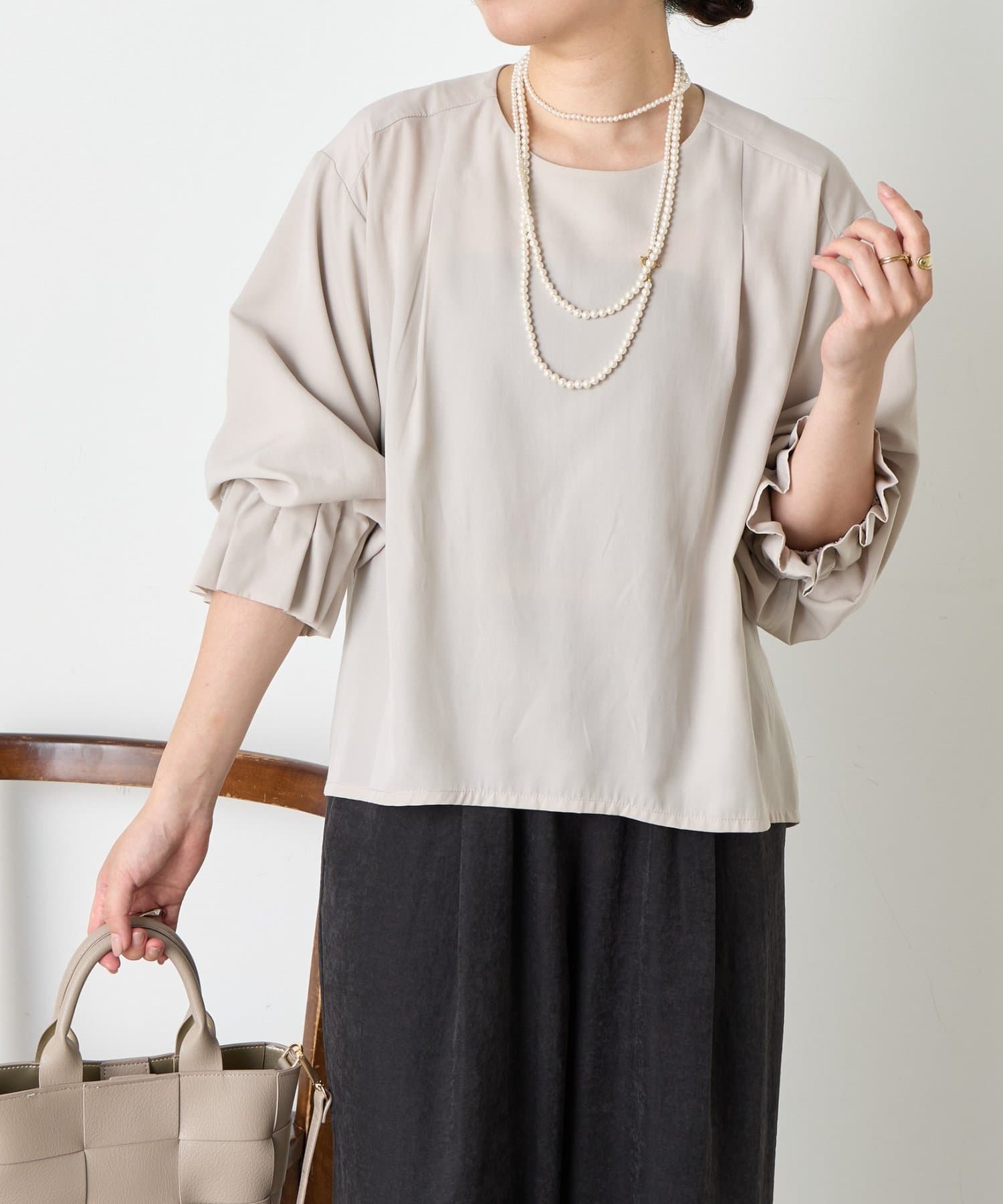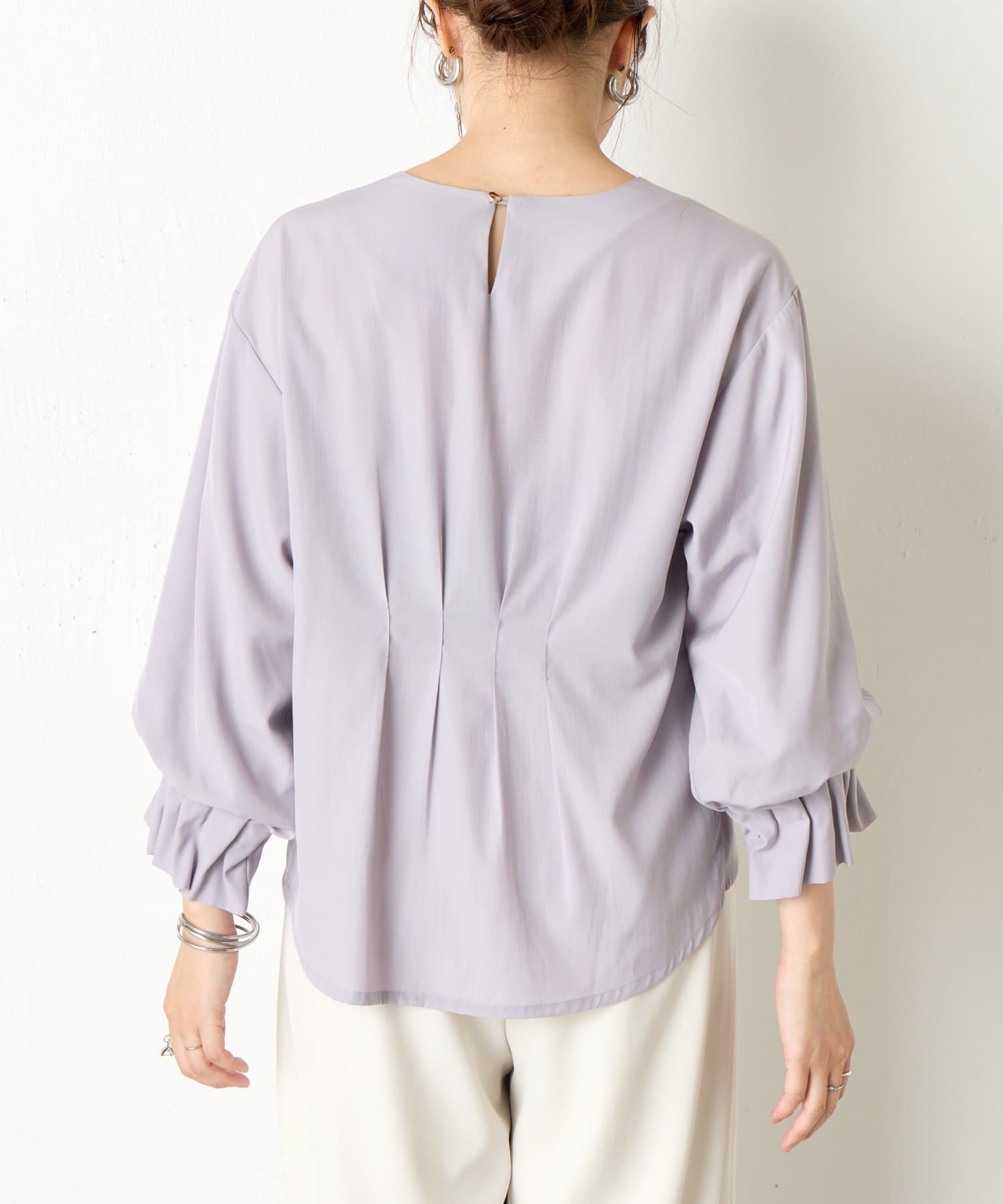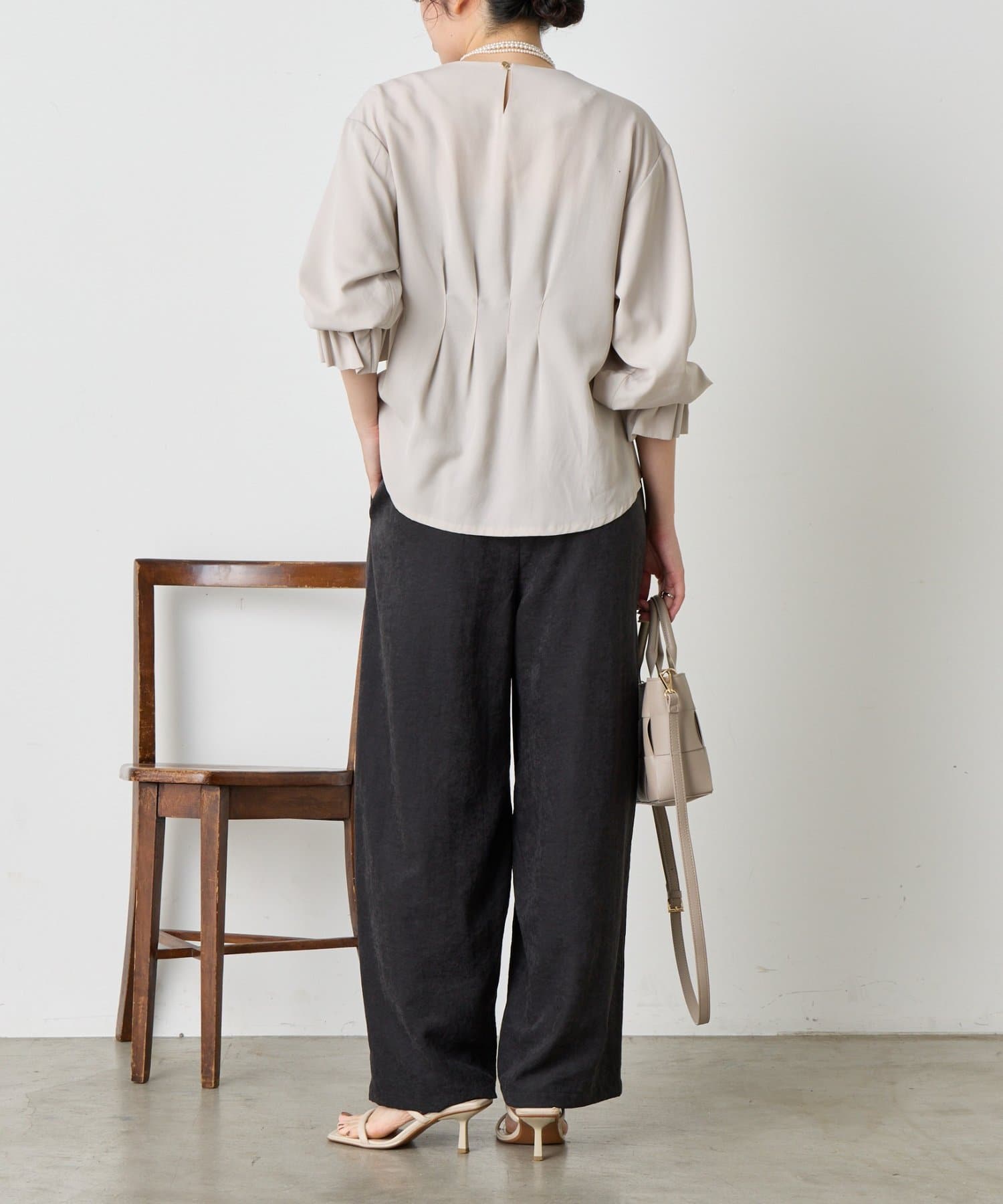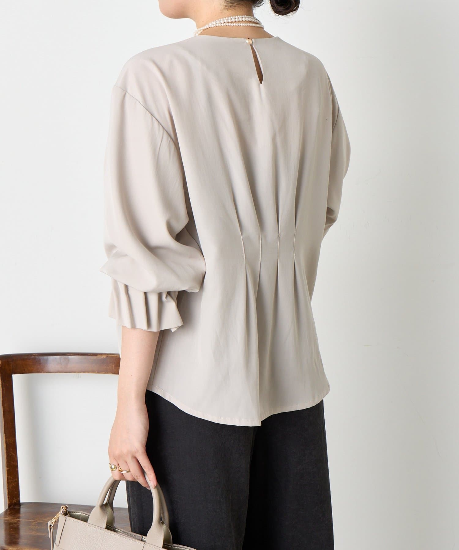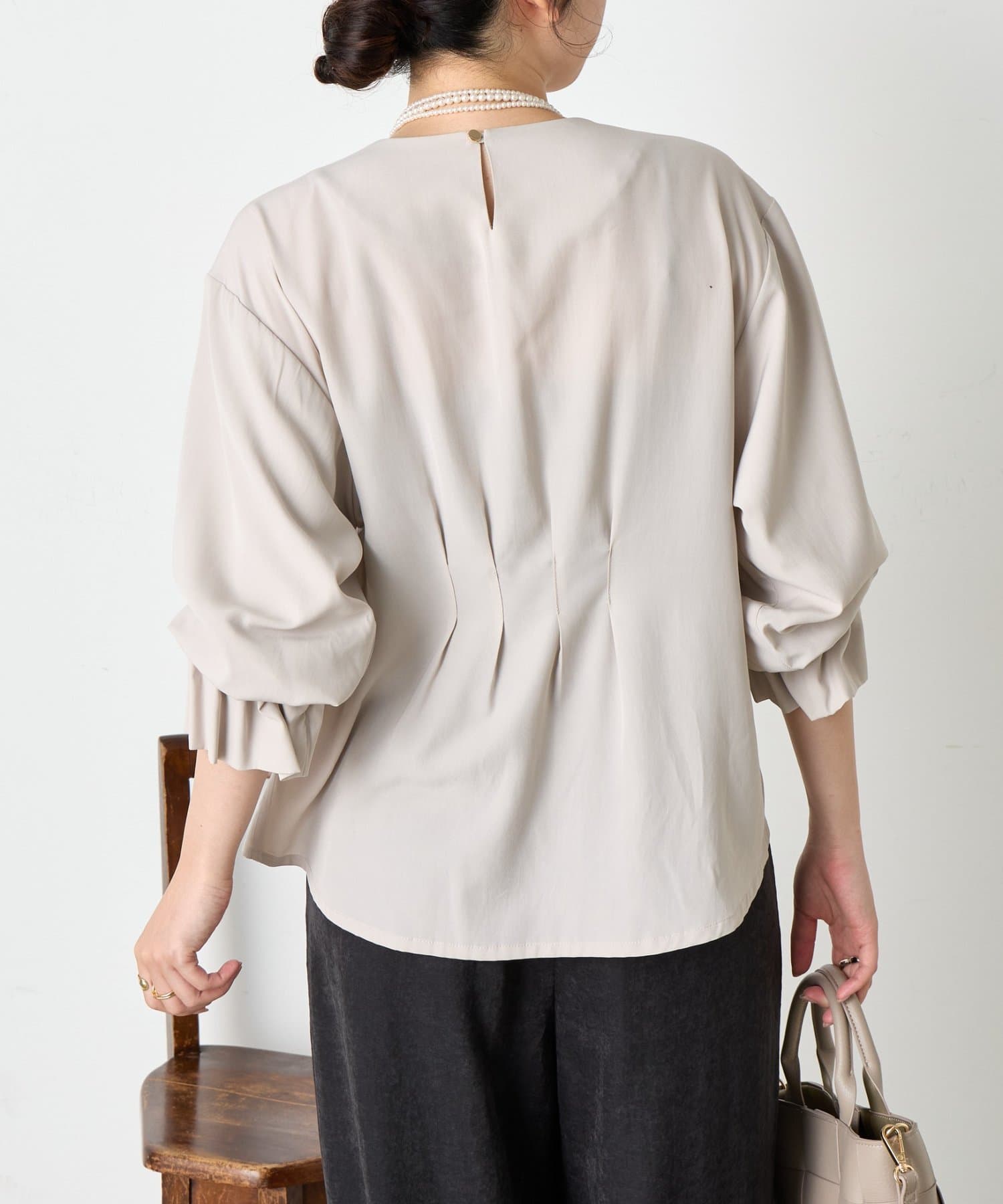 ・袖口にボリュームのあるギャザーとバックデザインにはタックが施された大人ブラウス。